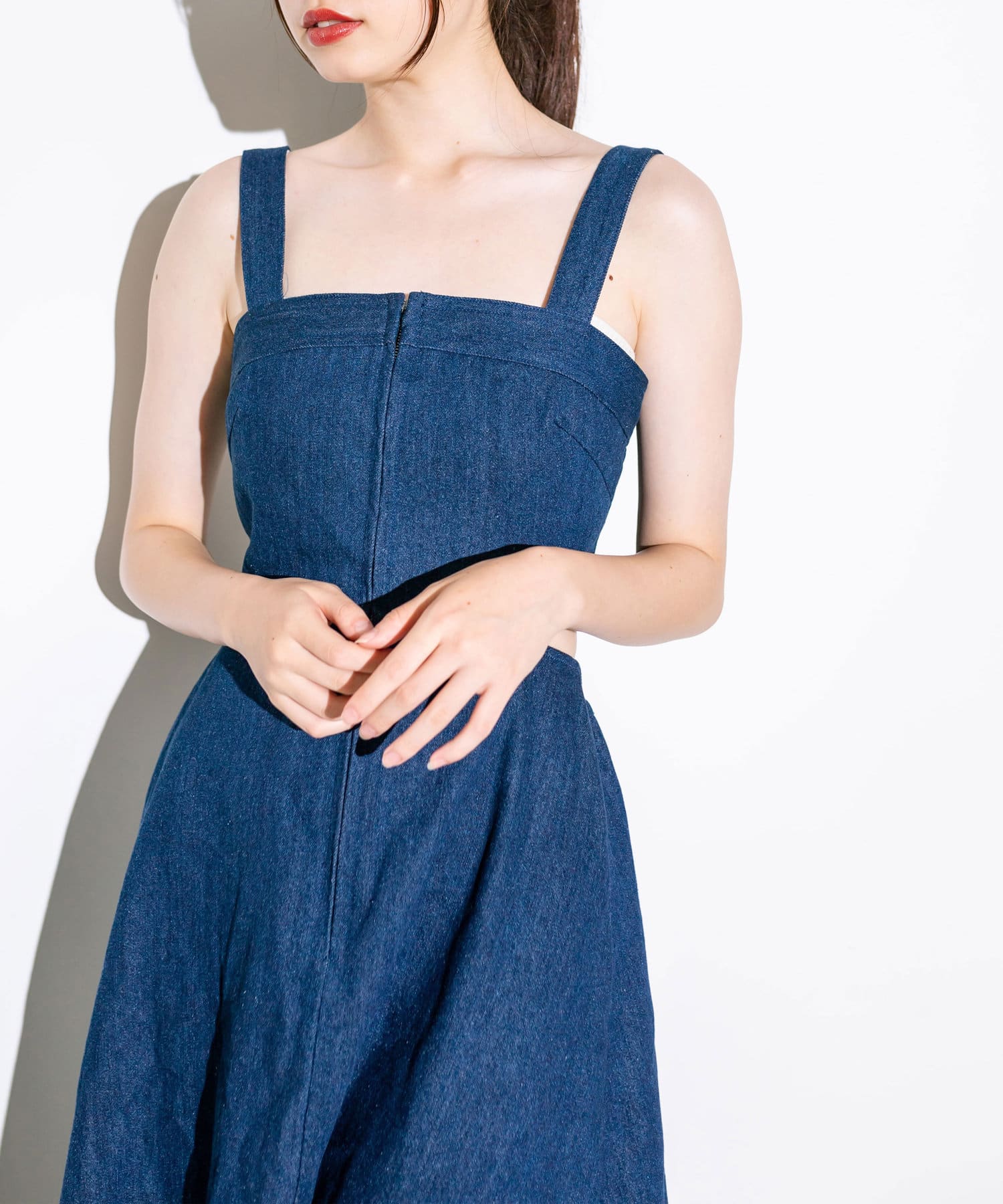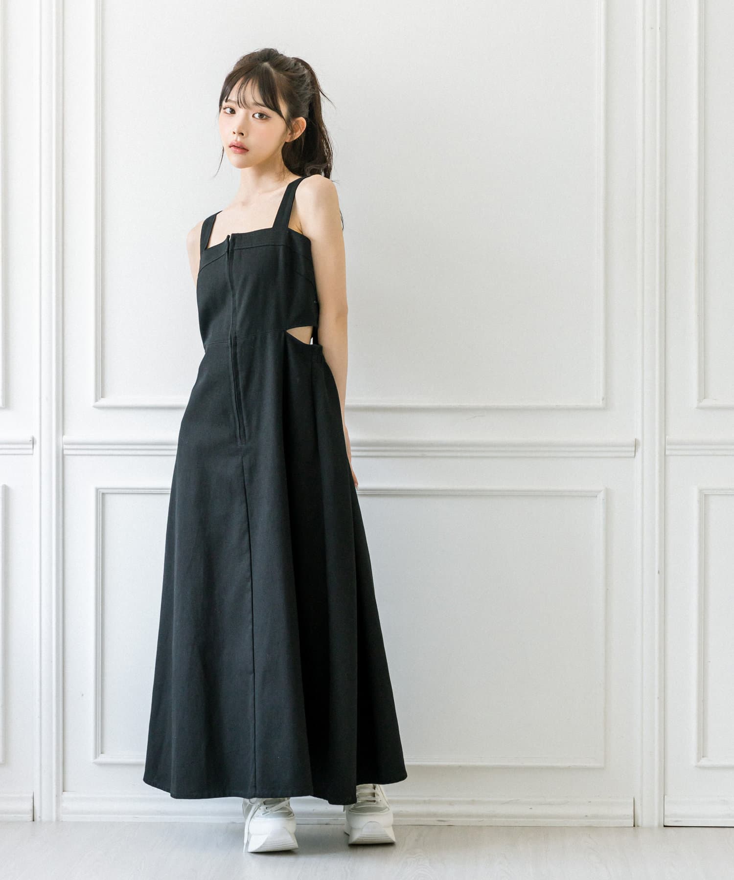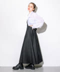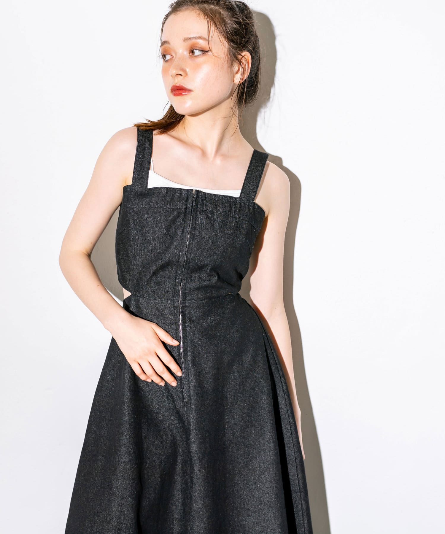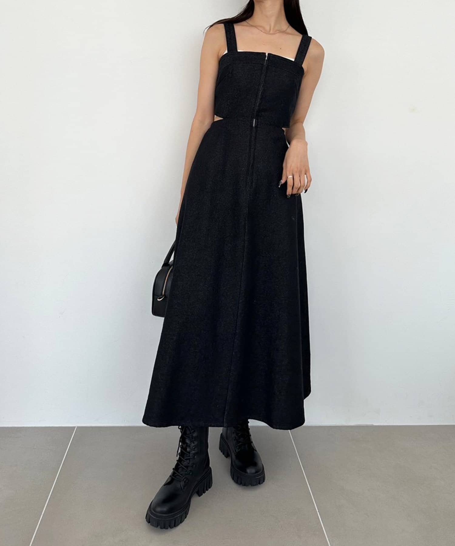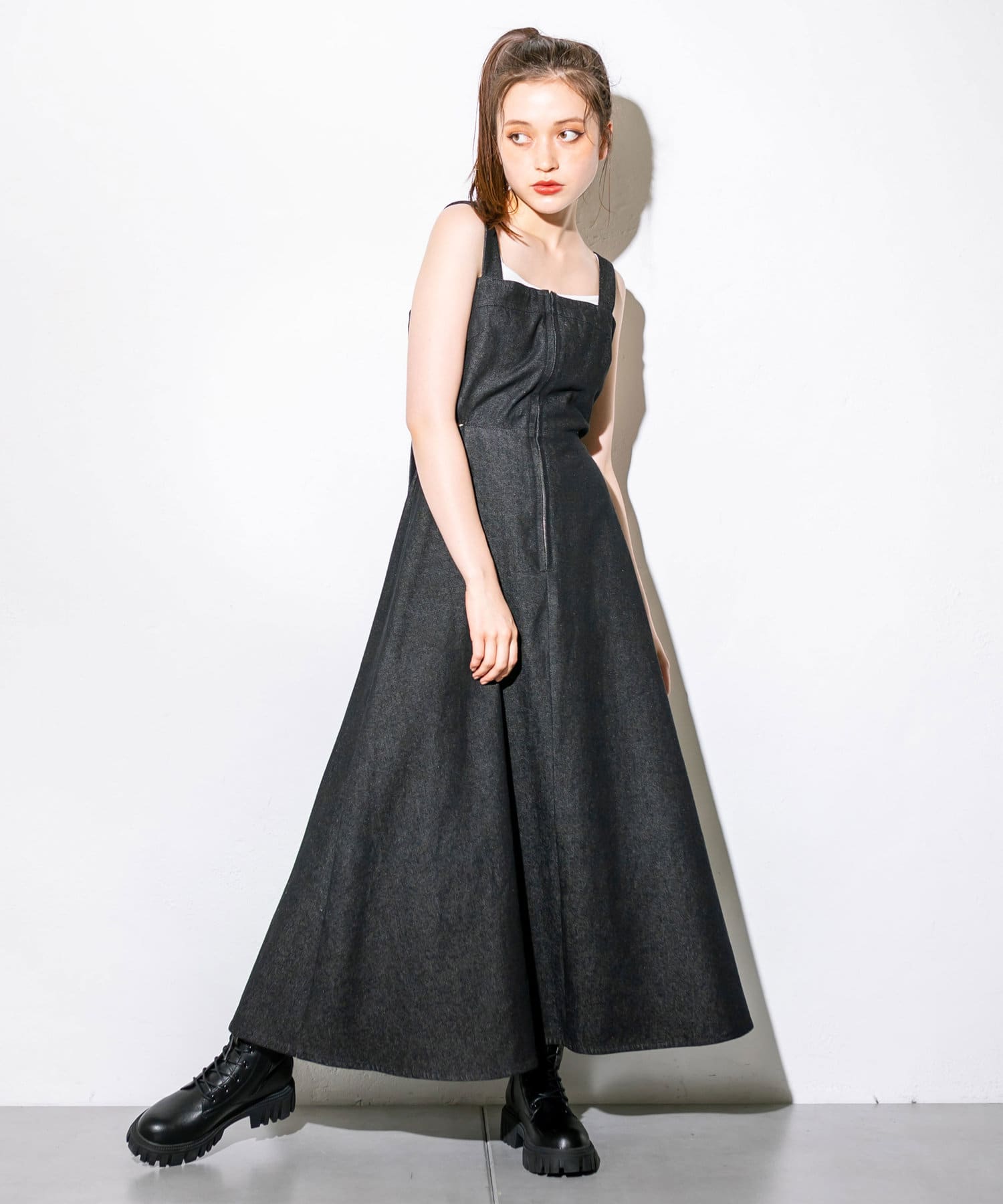 ・フロントジップですがフレアシルエットなので、辛口すぎず女性らしい印象に。