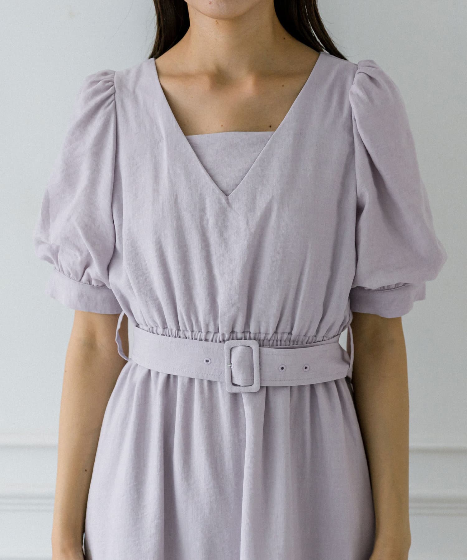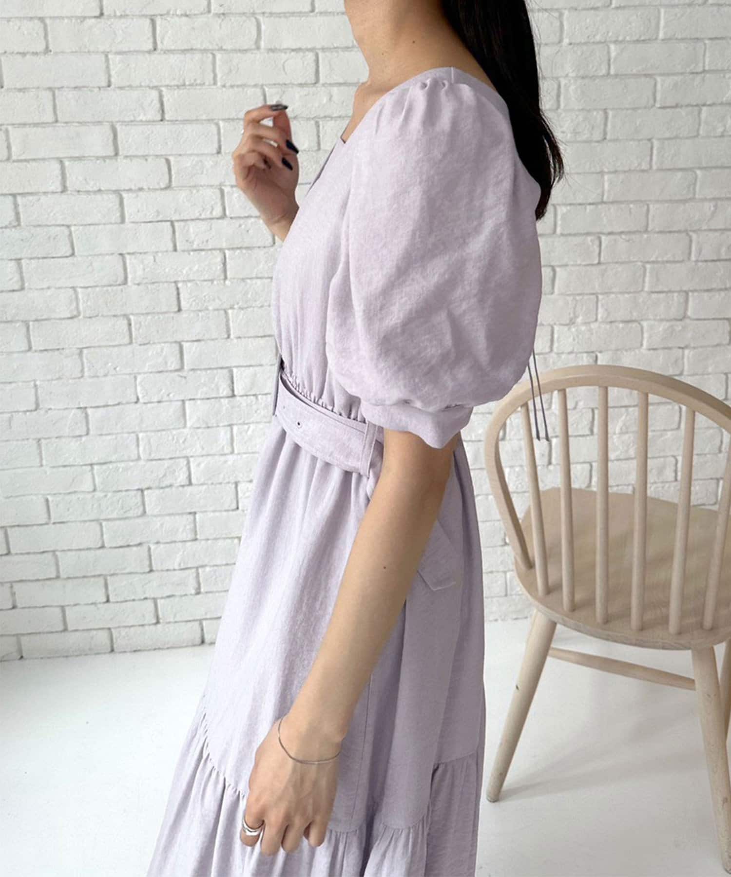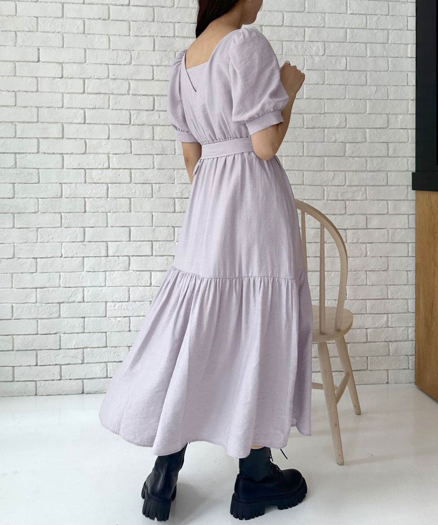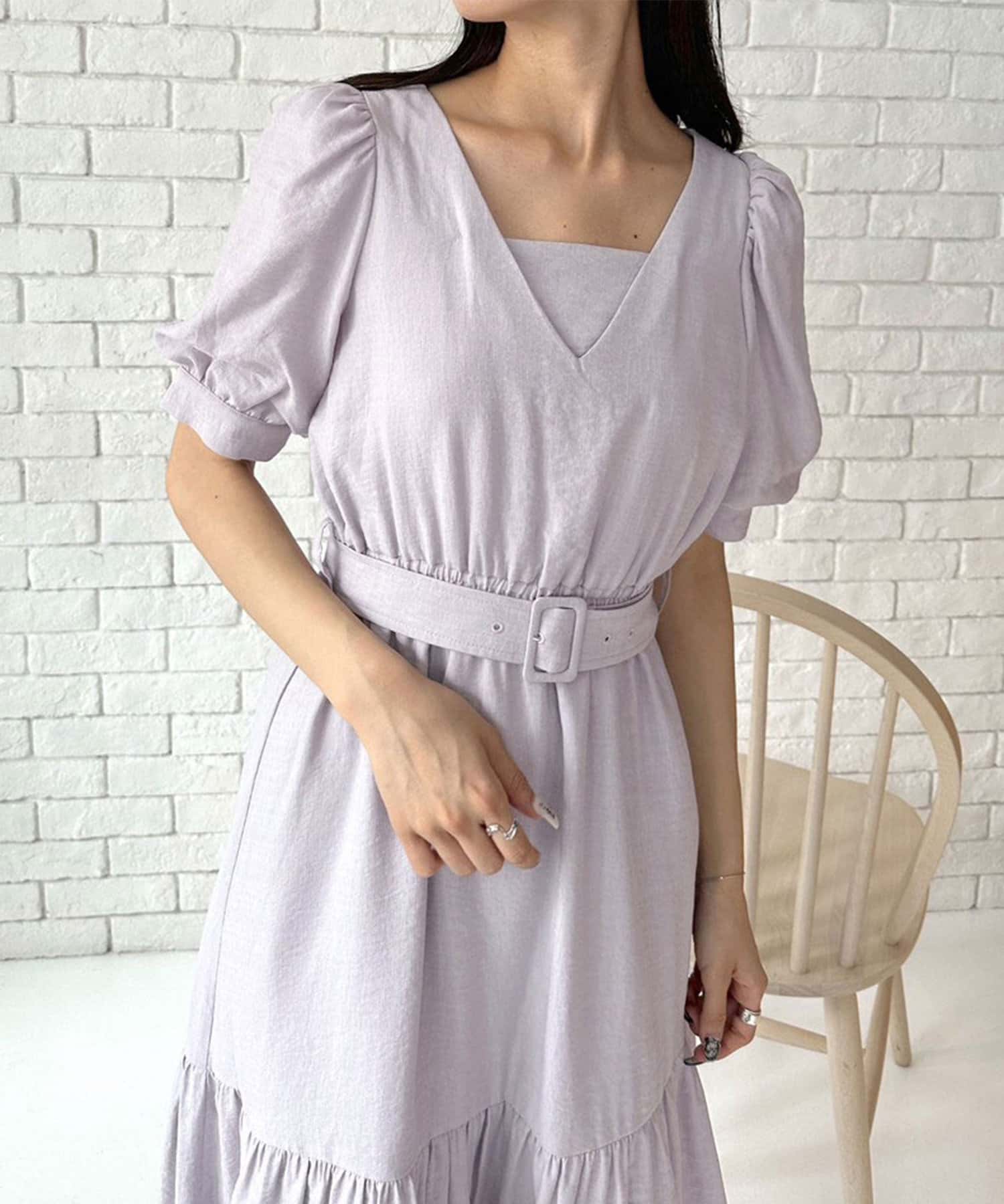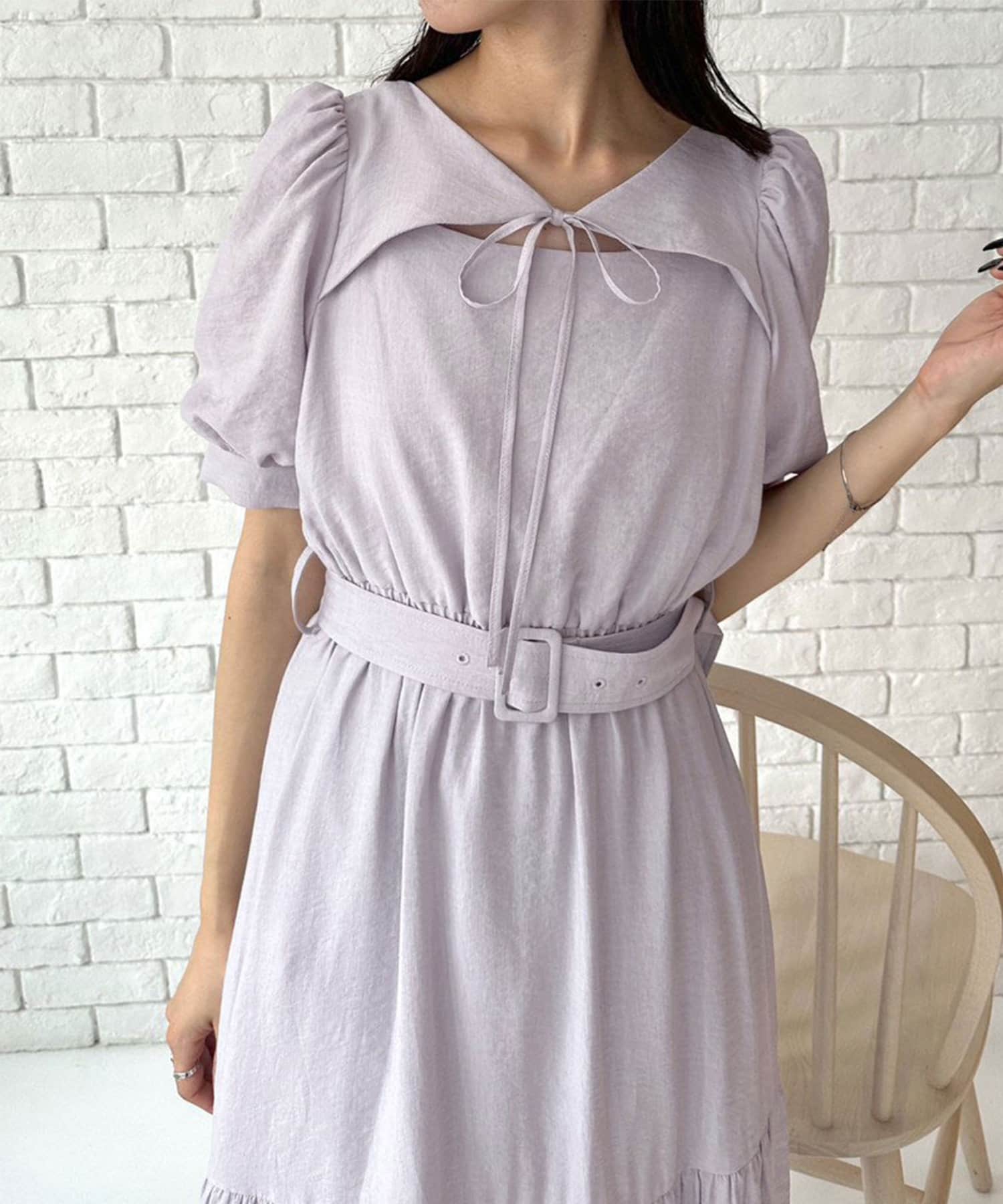 ダブルフロントベルト付きワンピース
