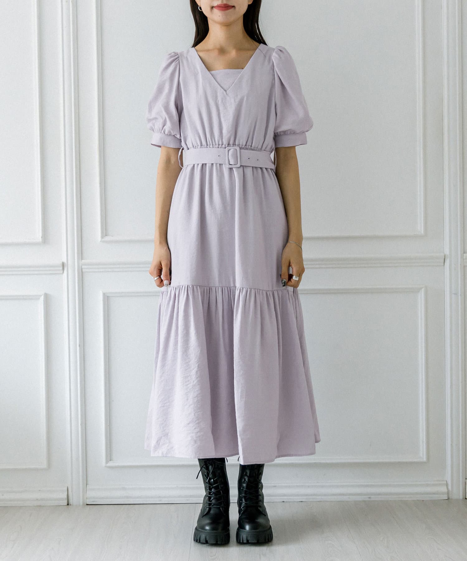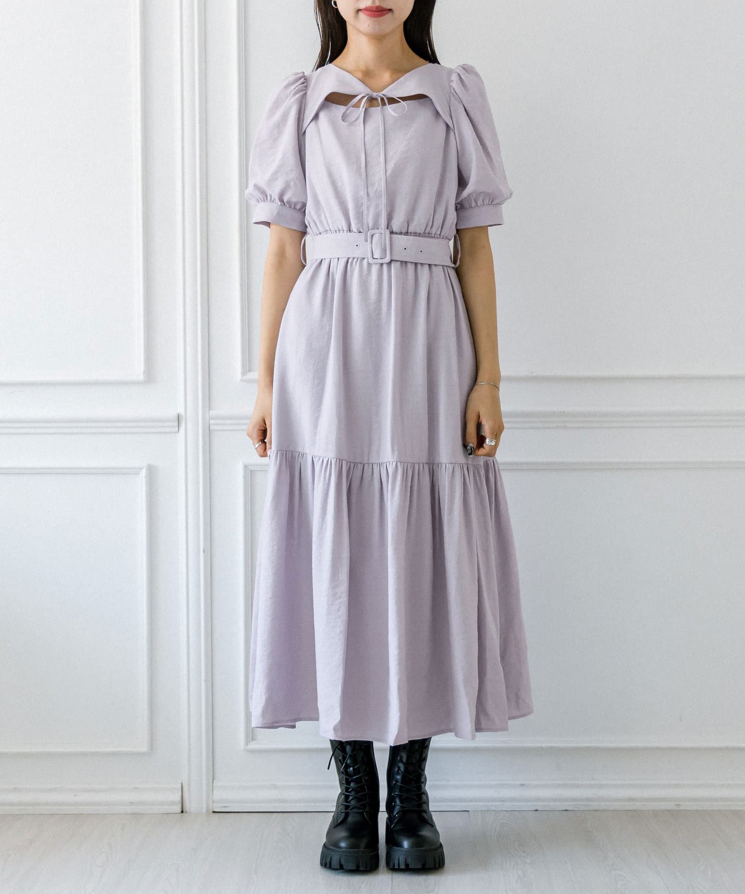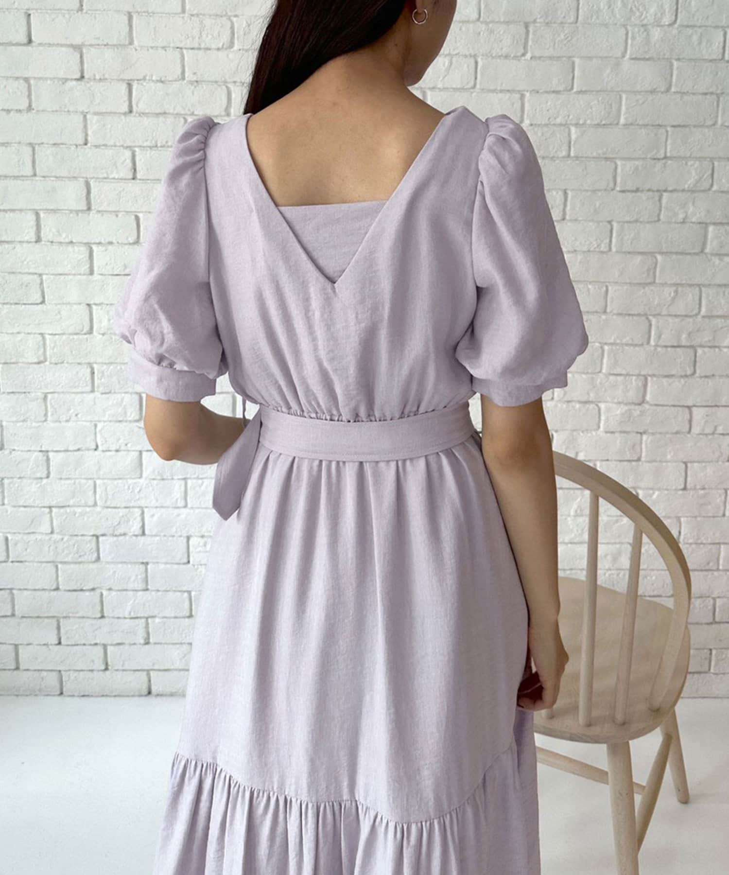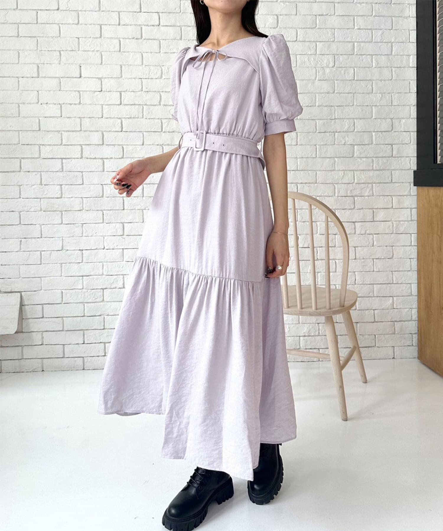 ダブルフロントベルト付きワンピース