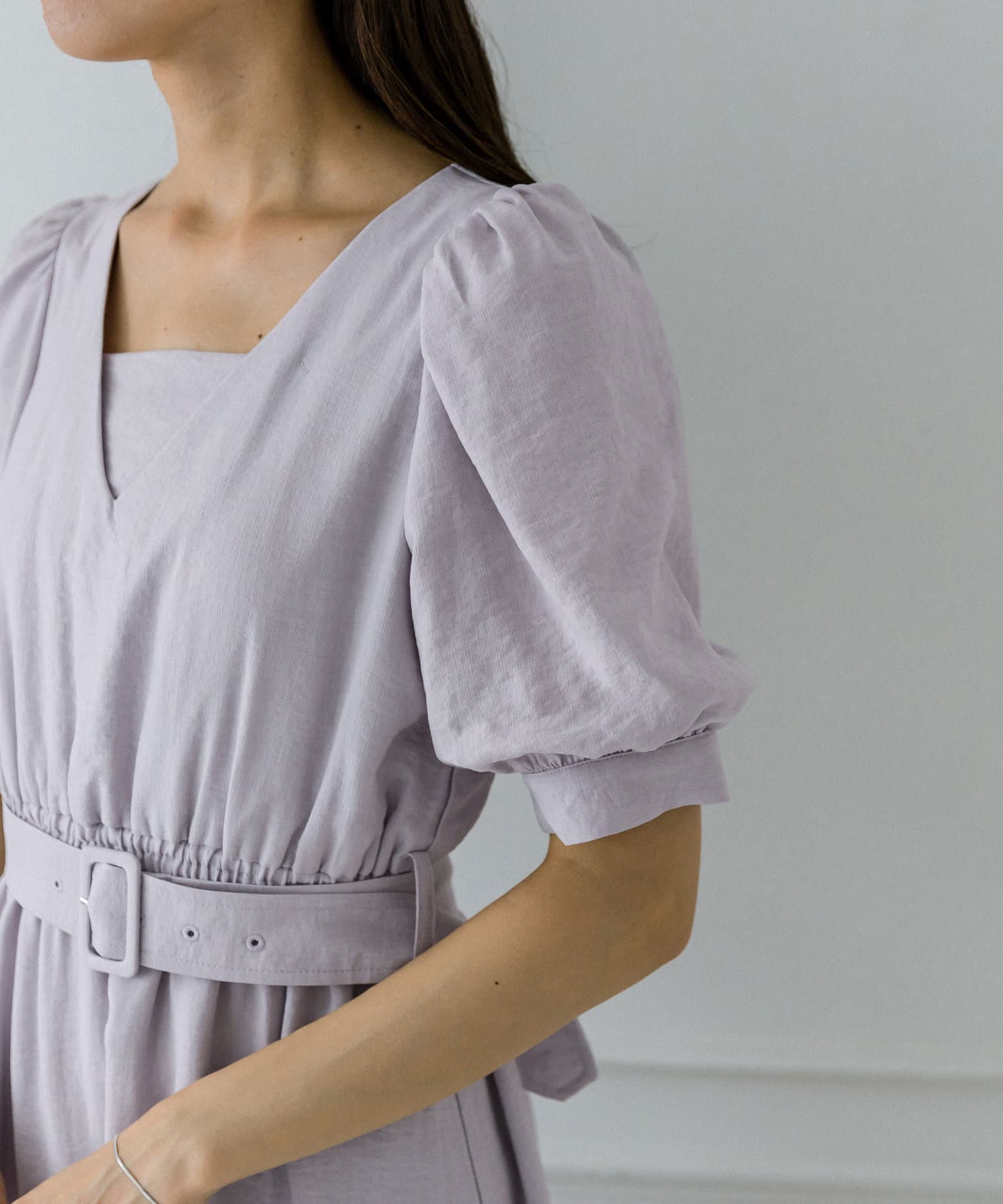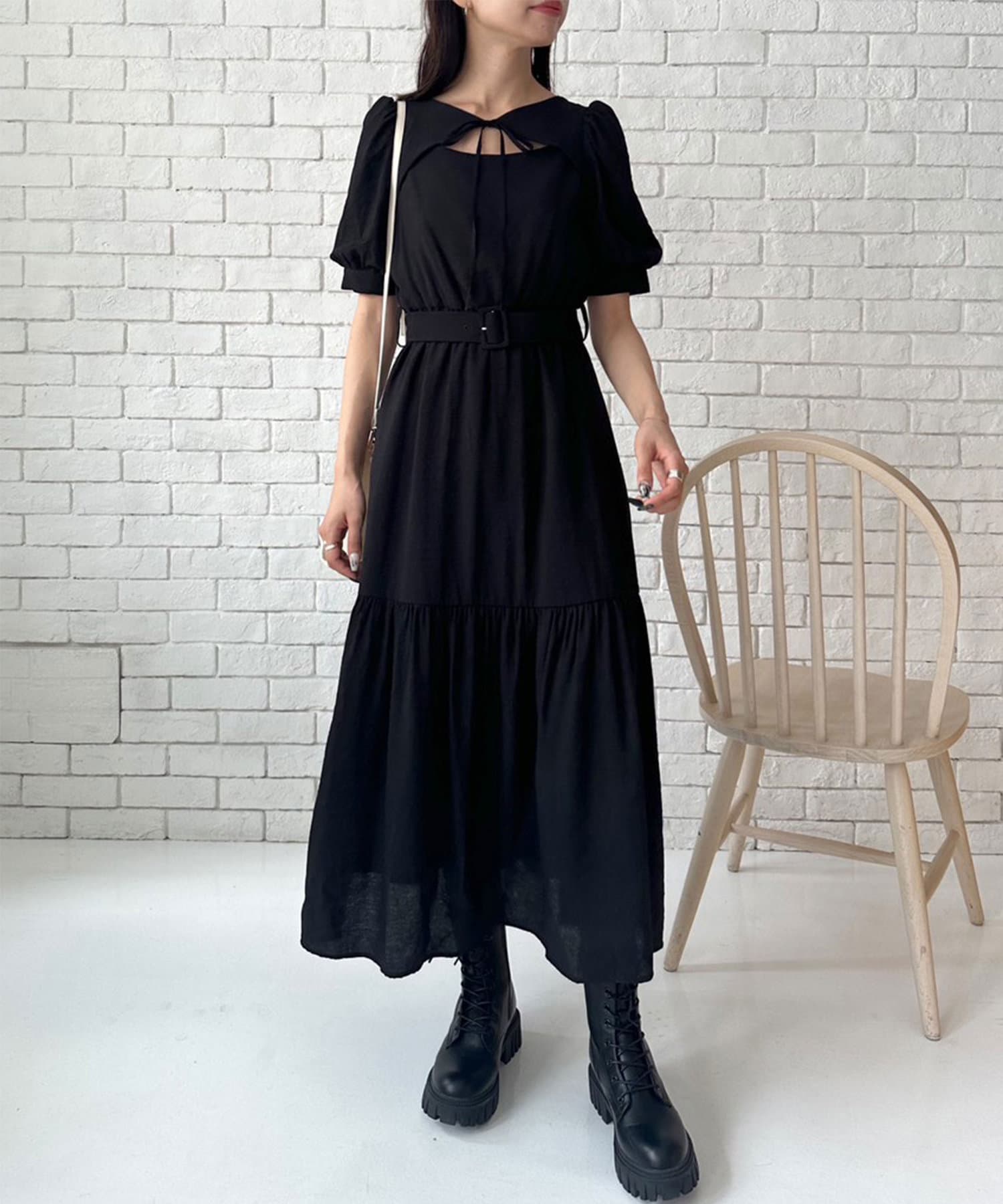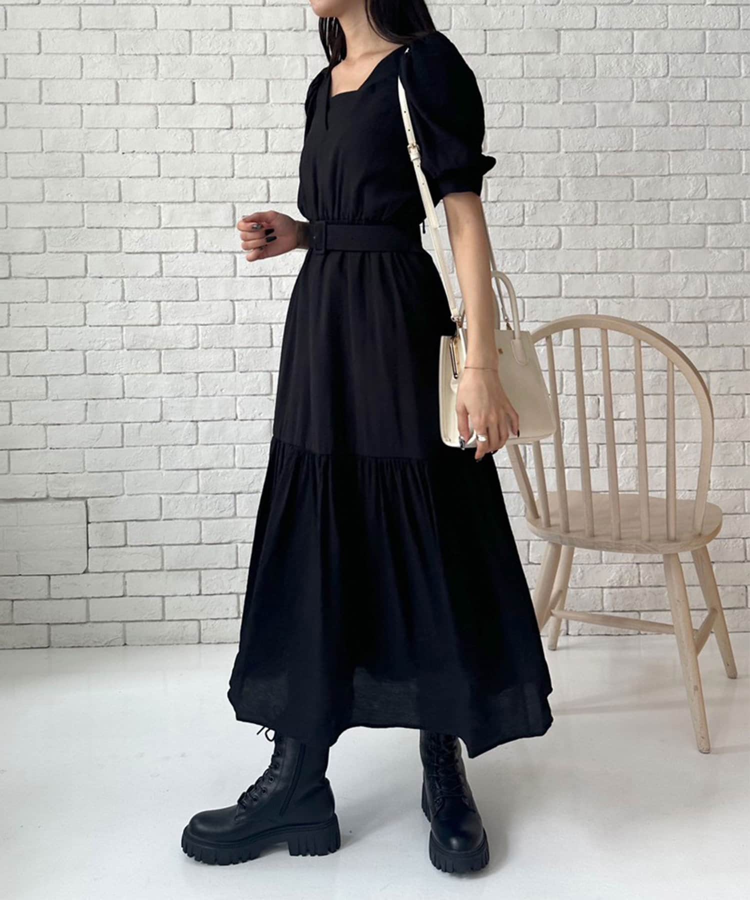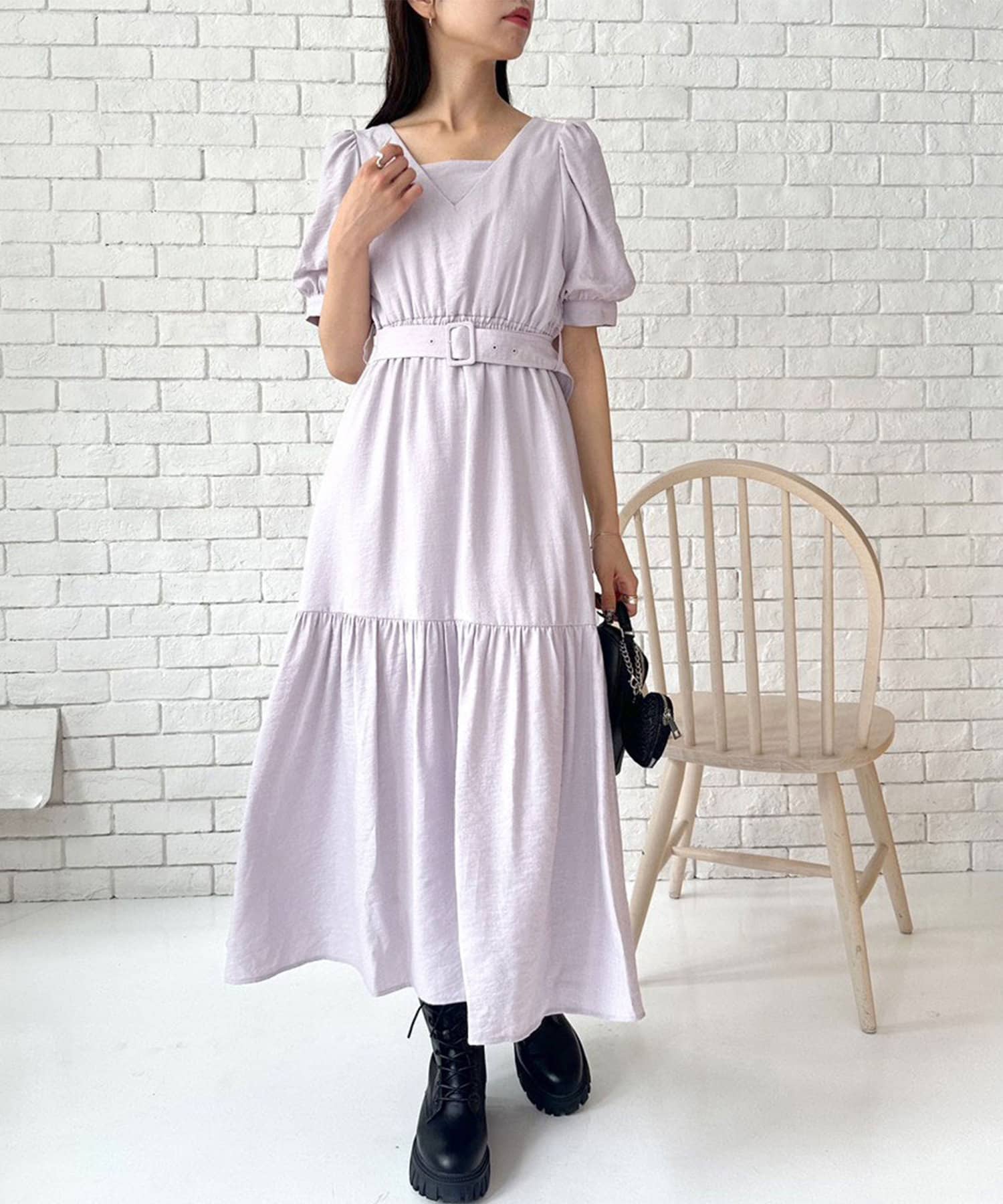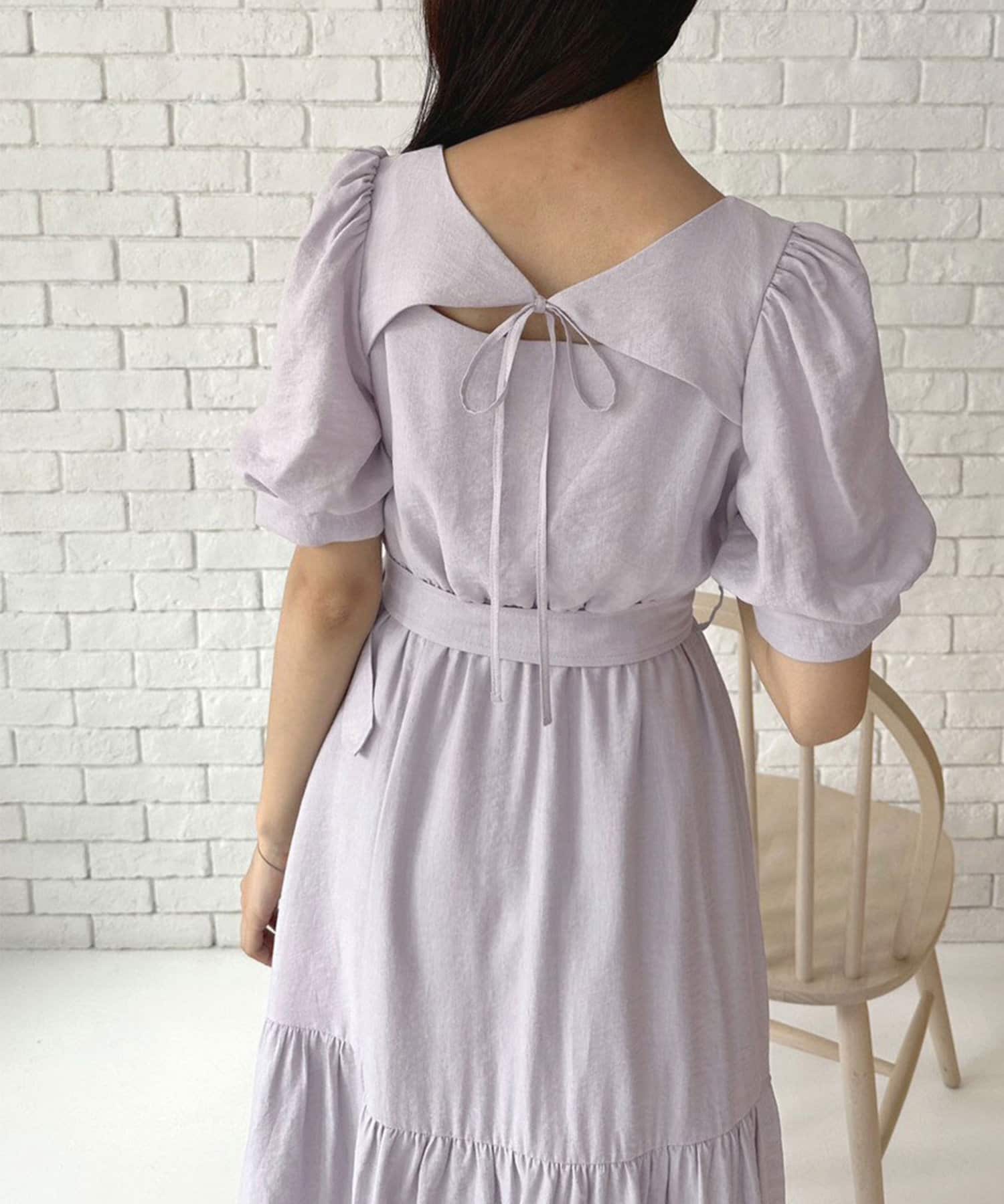 ダブルフロントベルト付きワンピース
