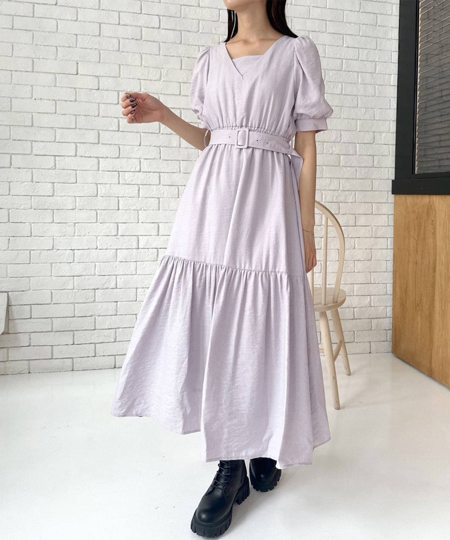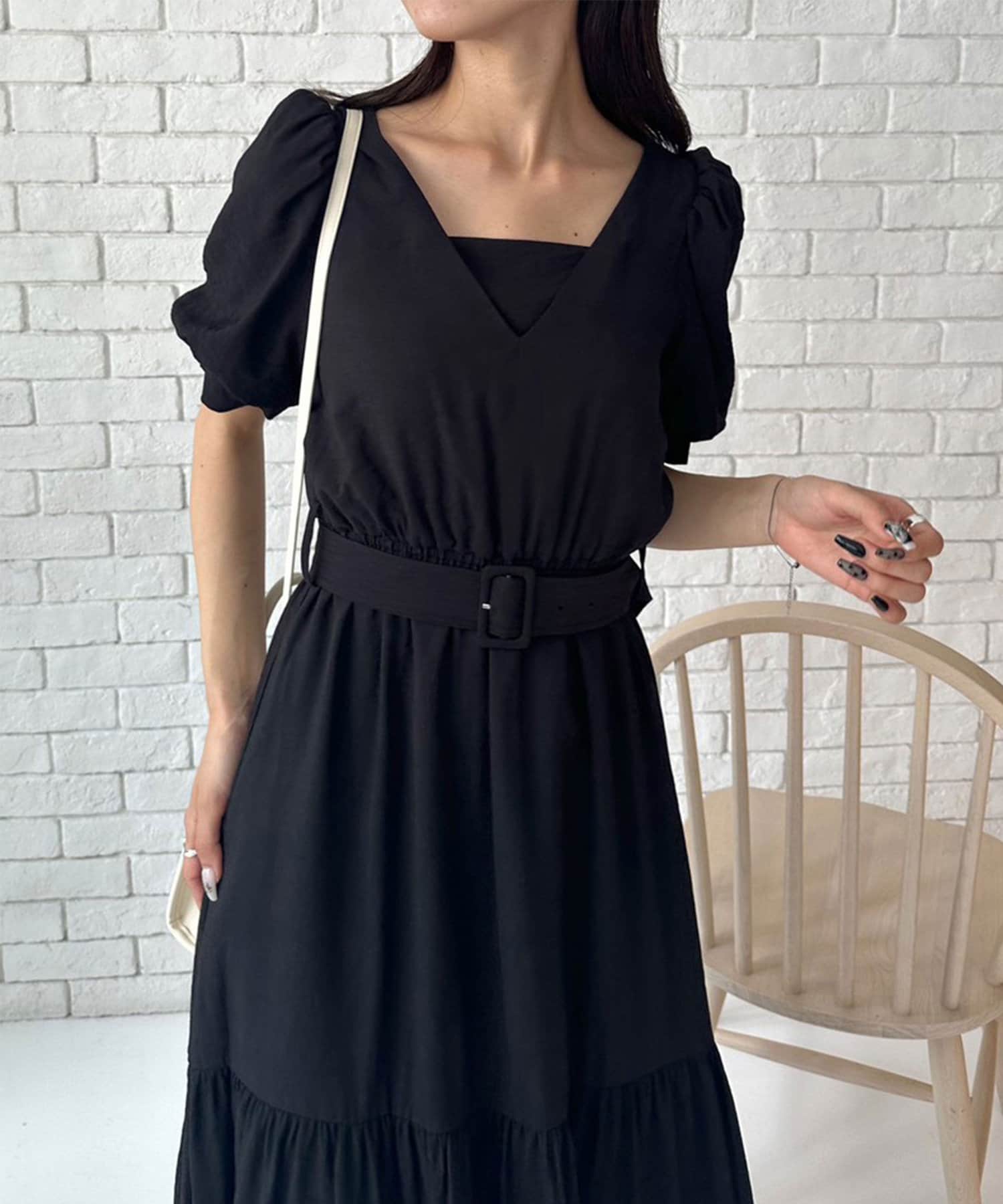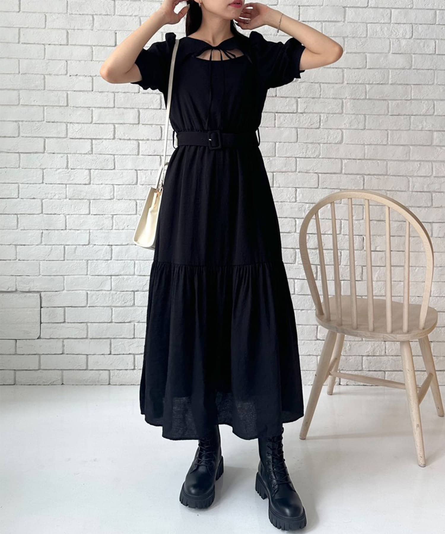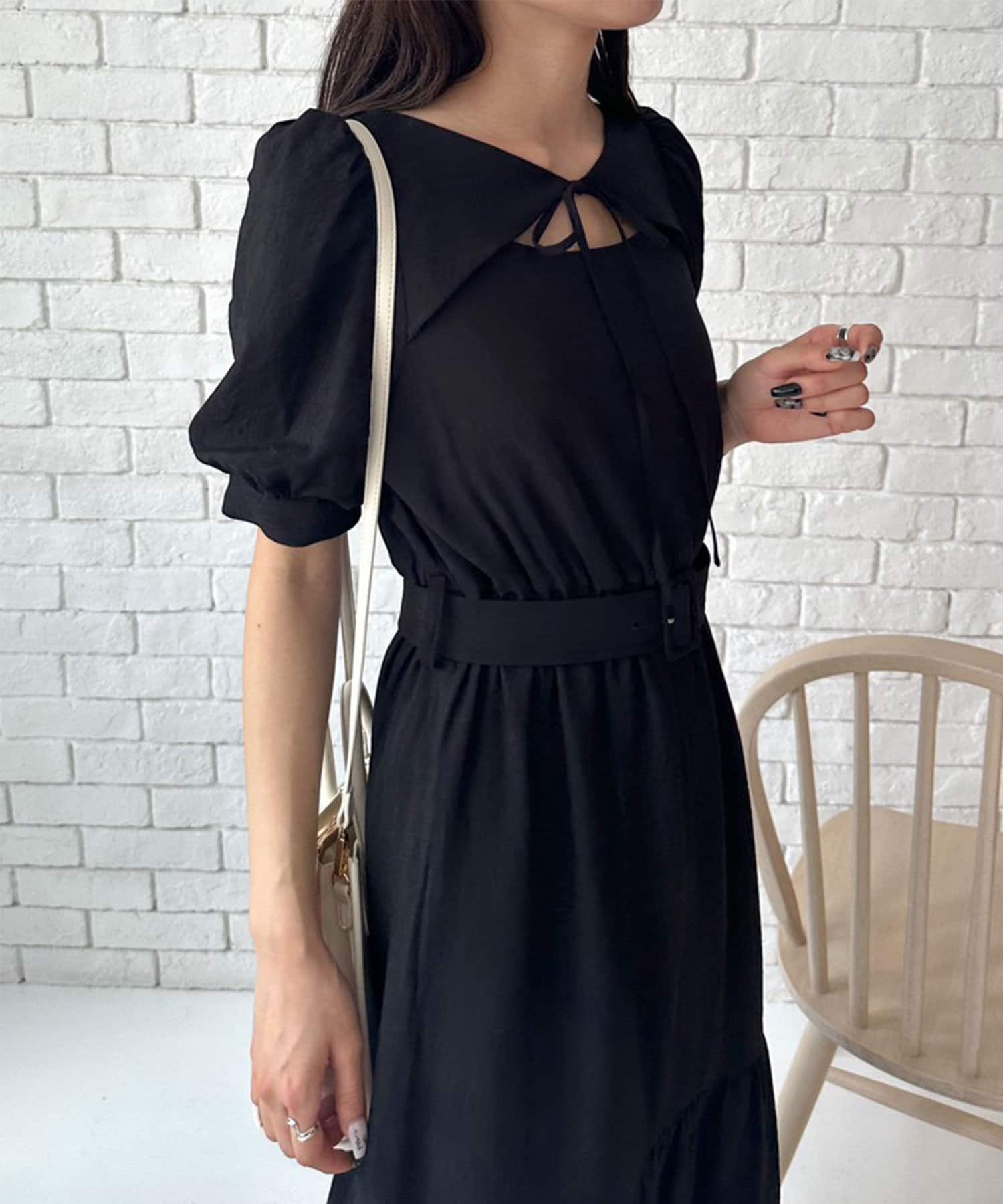 ダブルフロントベルト付きワンピース