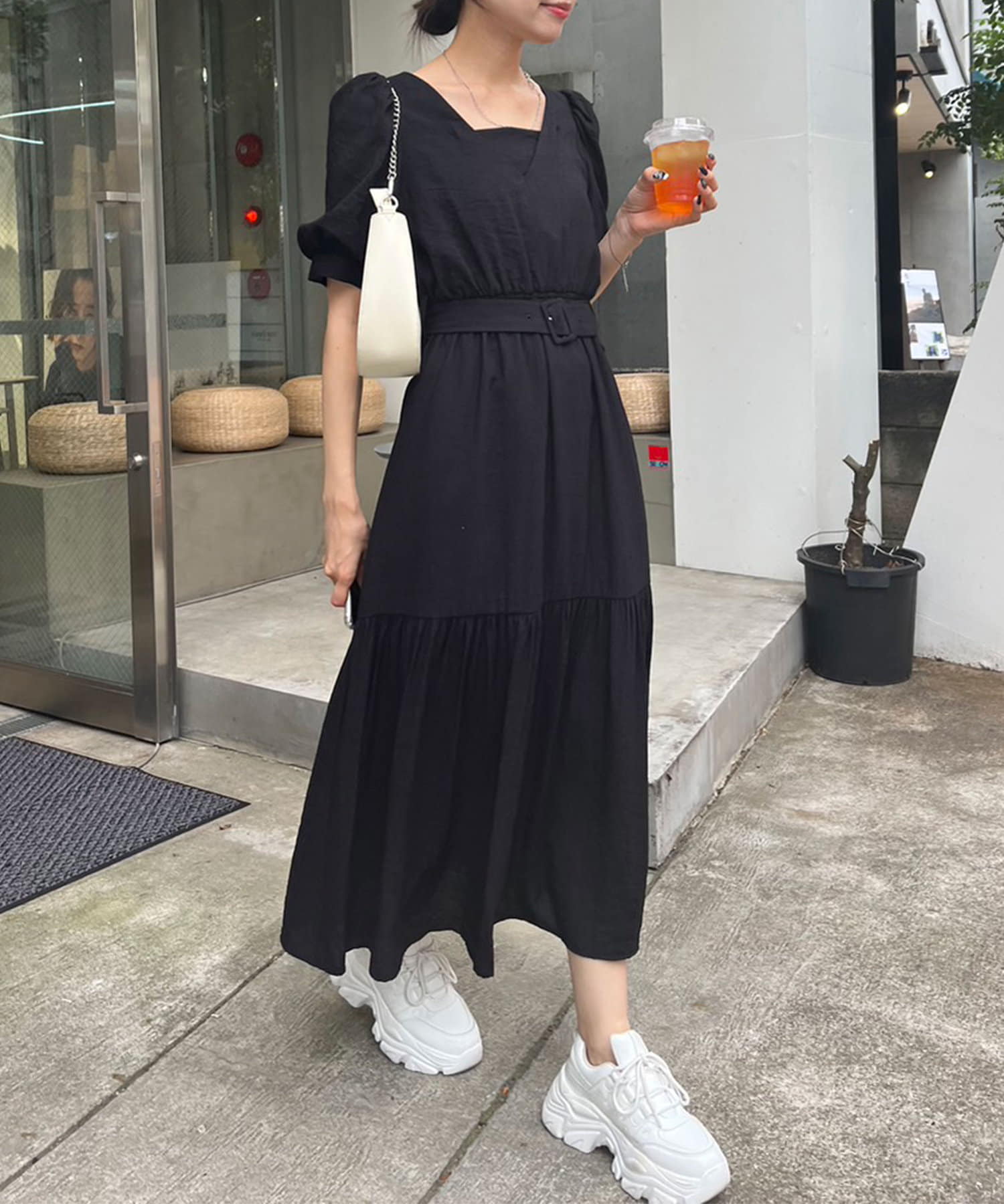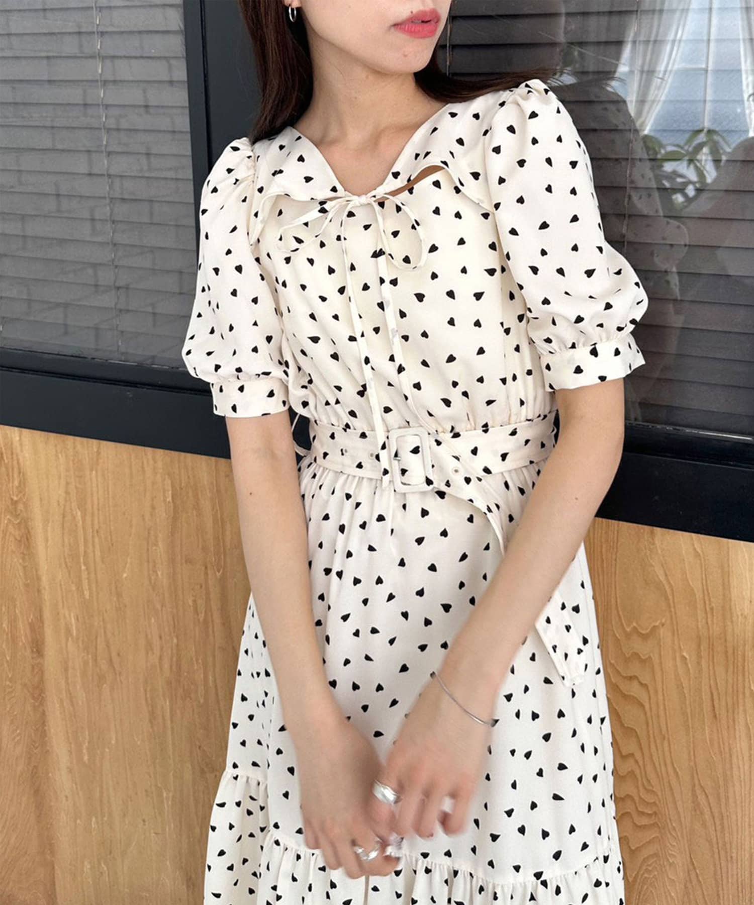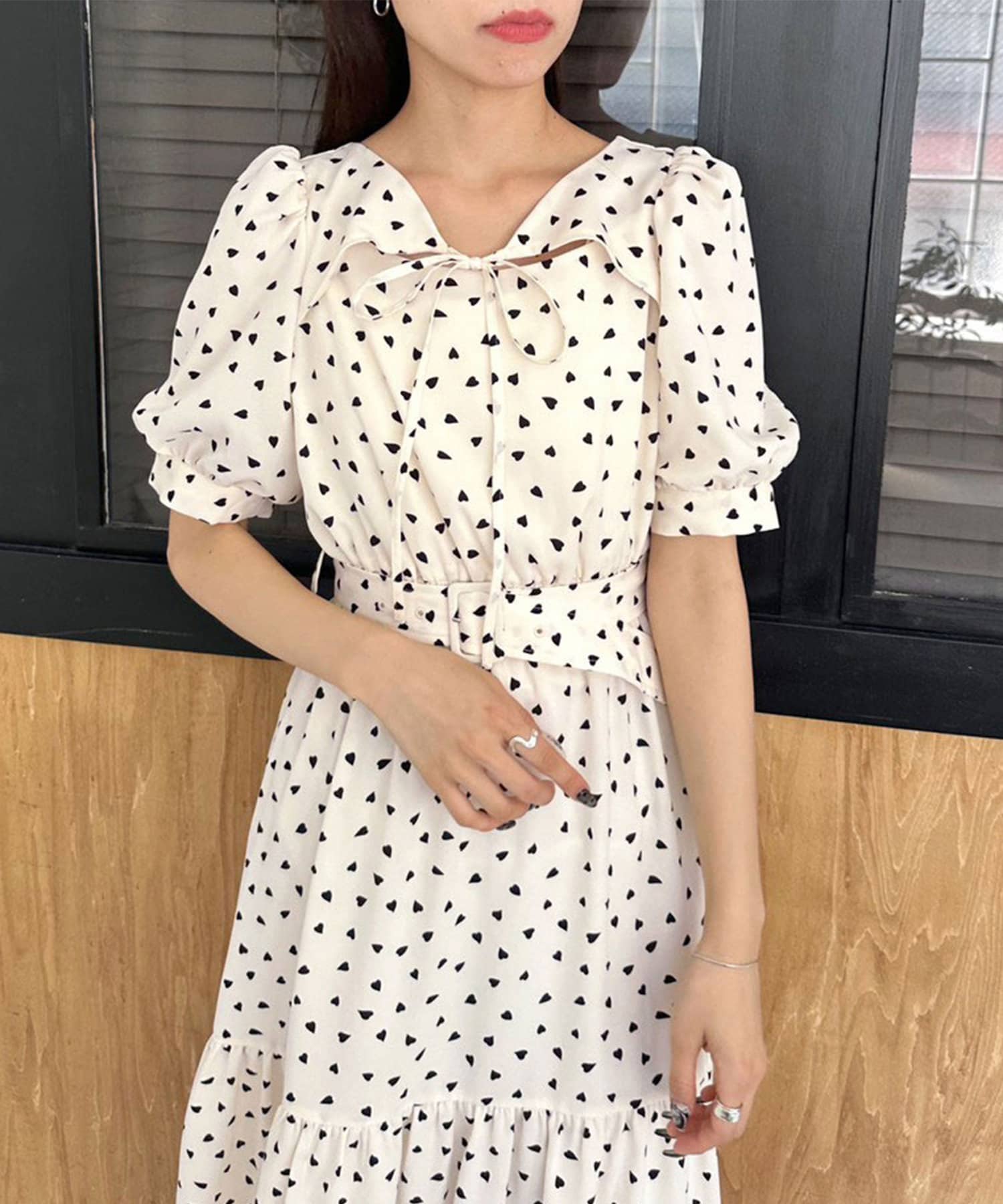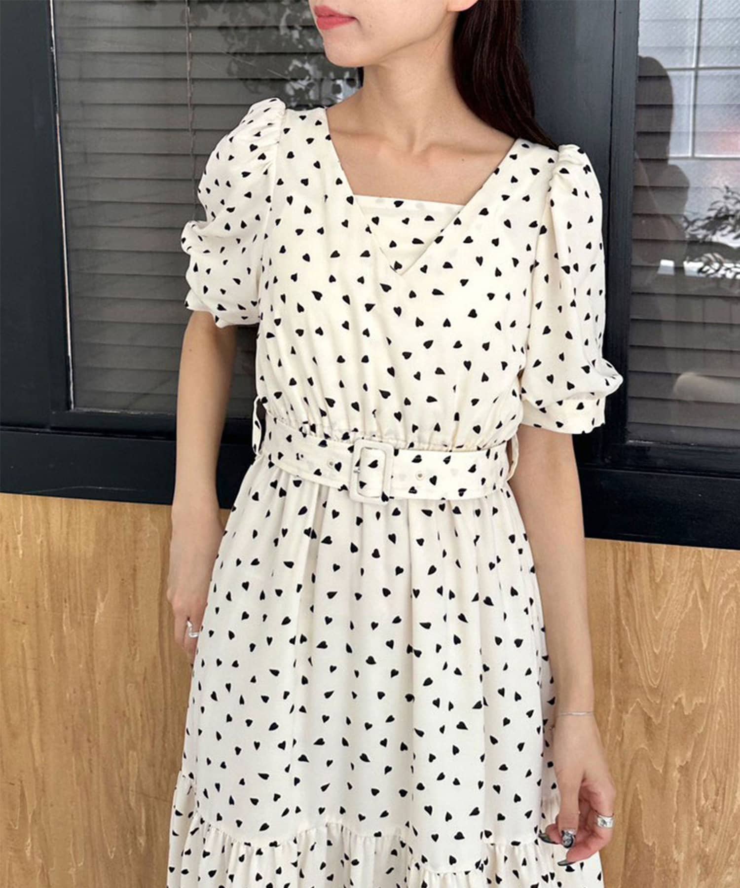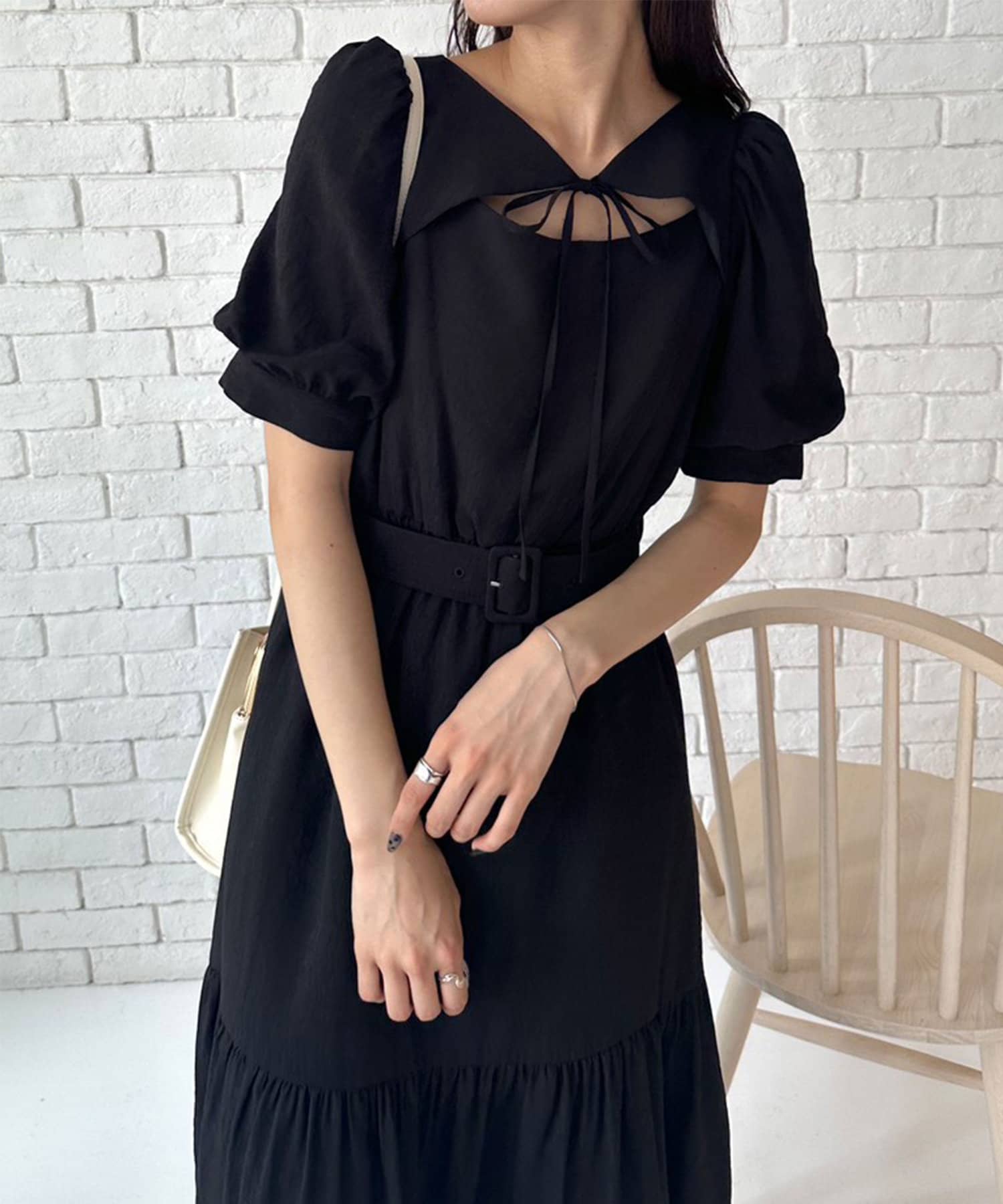 ダブルフロントベルト付きワンピース