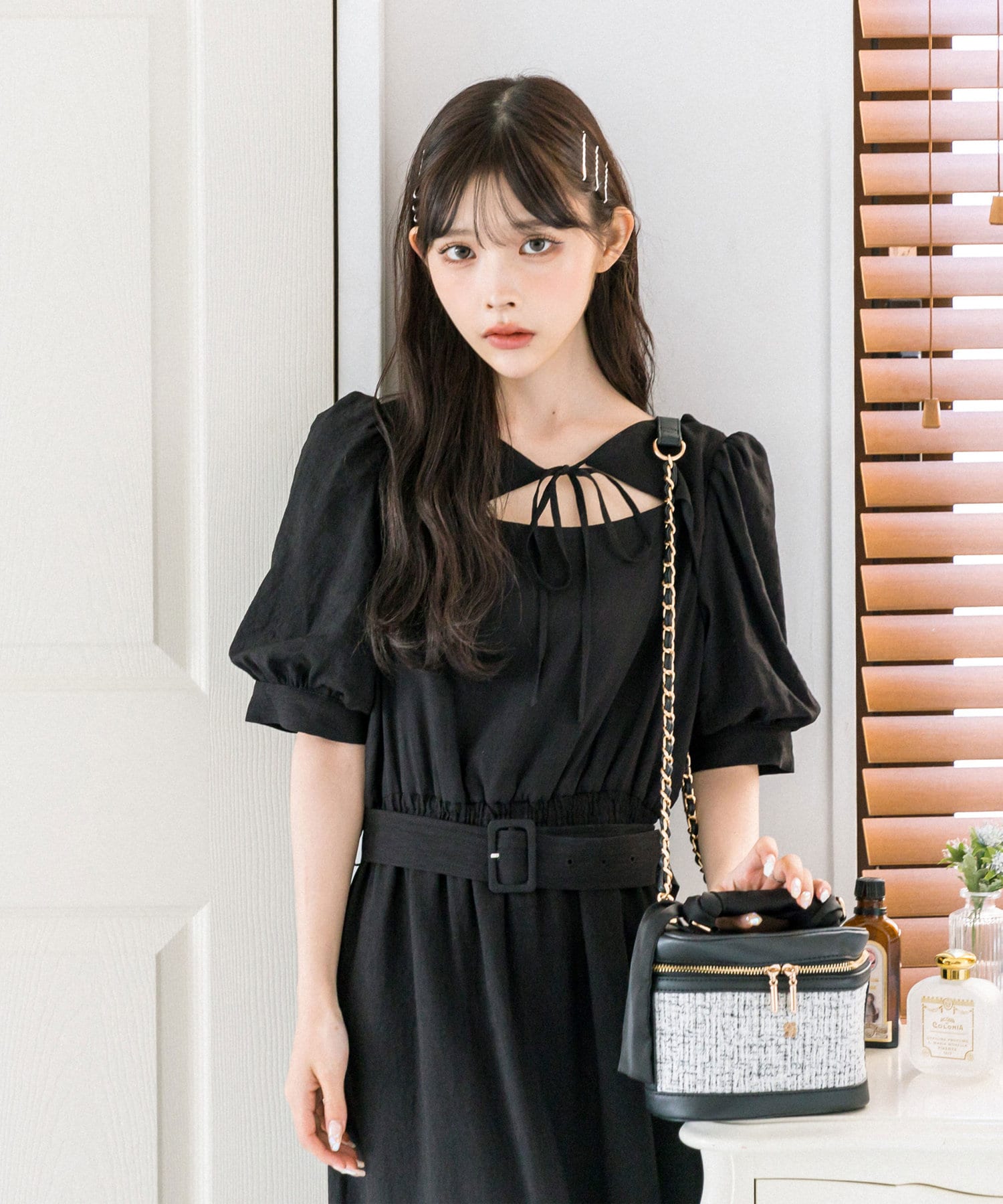 ・取り外し可能なベルト付き。ウエストマークでスタイルアップが叶います。