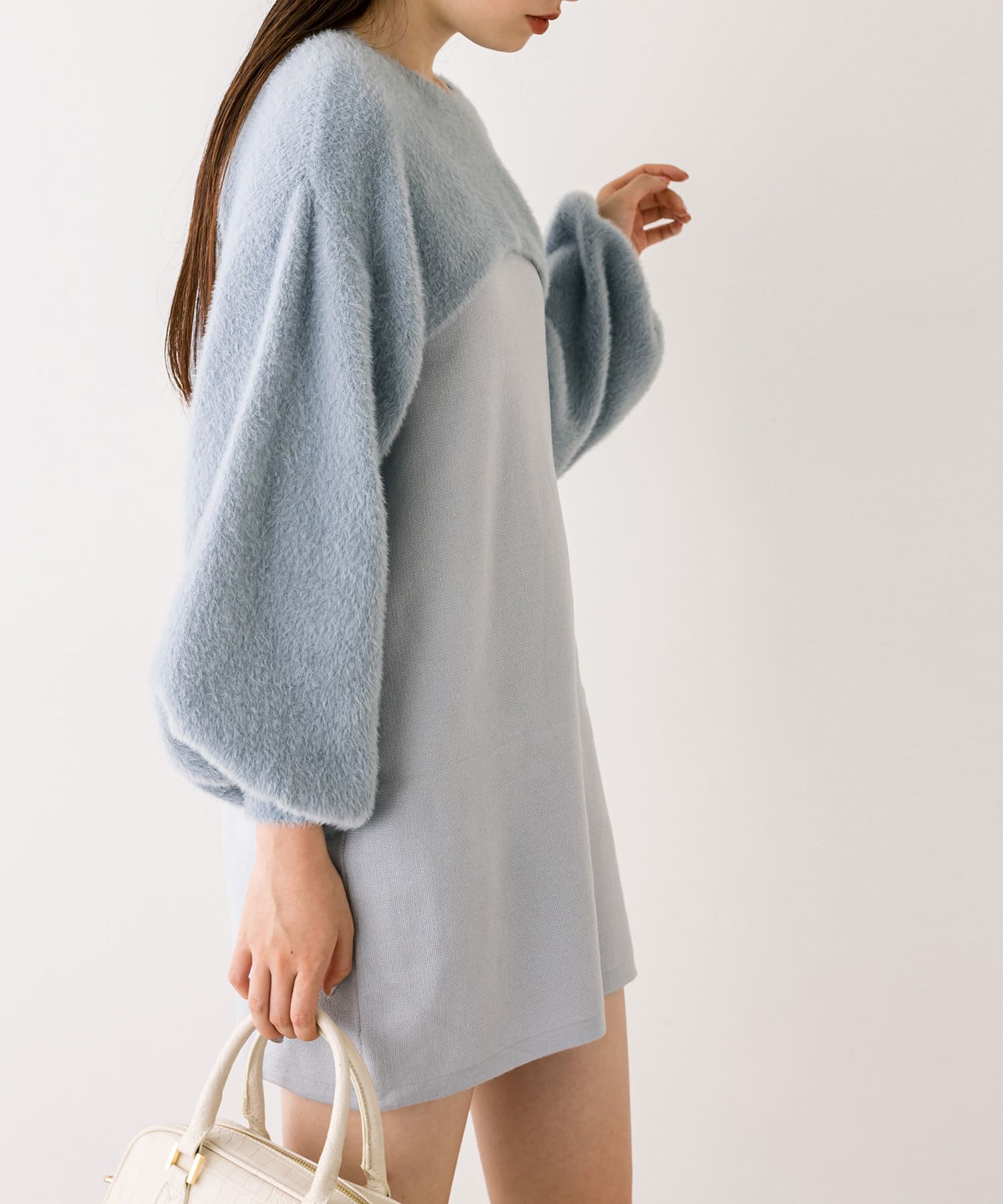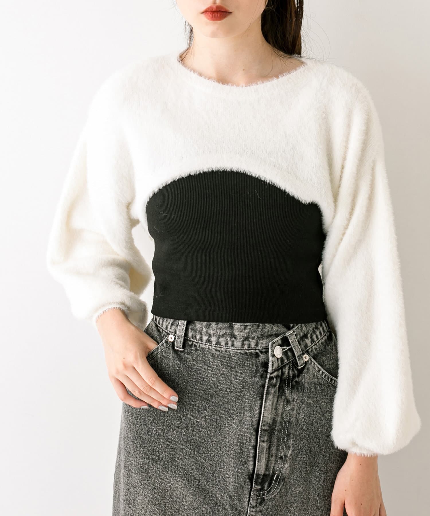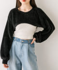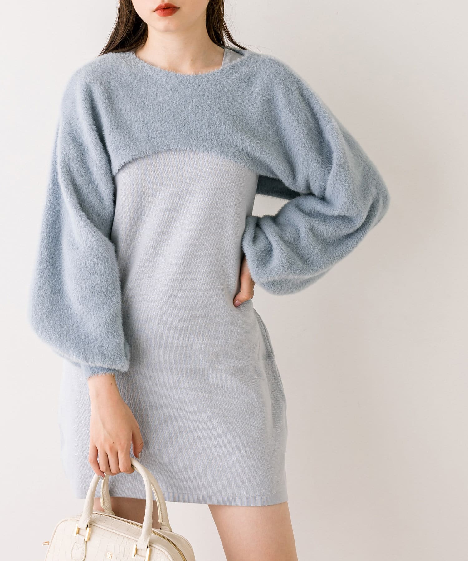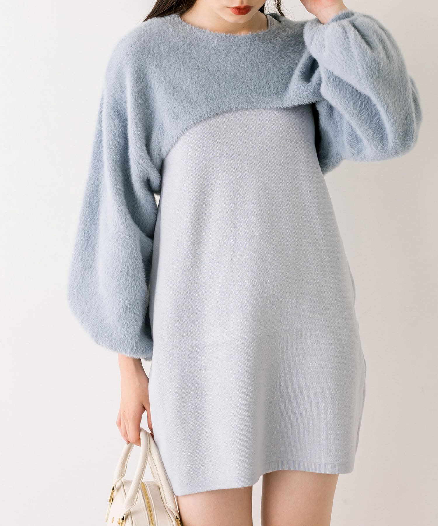 ・ふわふわのショート丈ニットと、ノースリーブニットワンピがセットに。