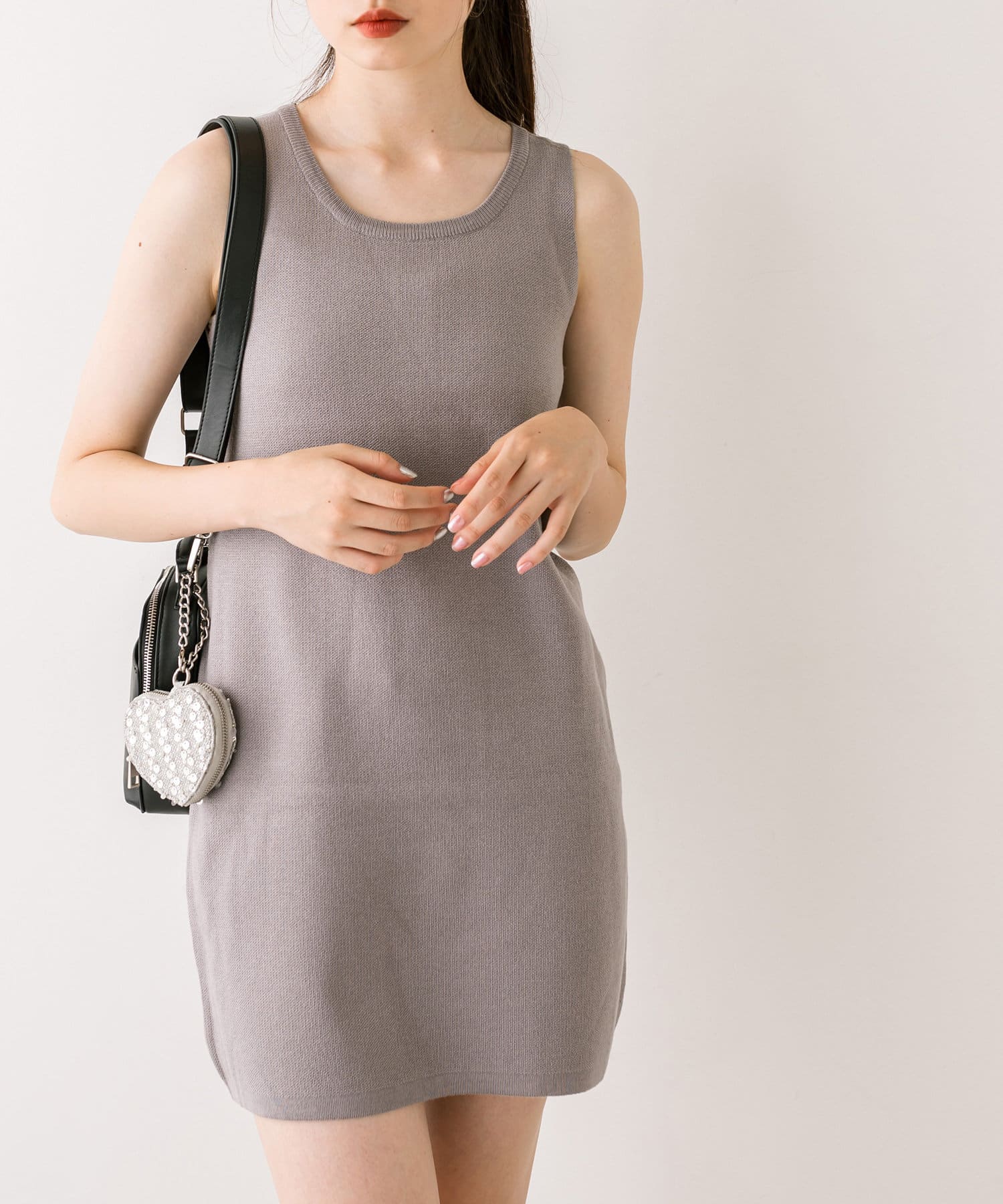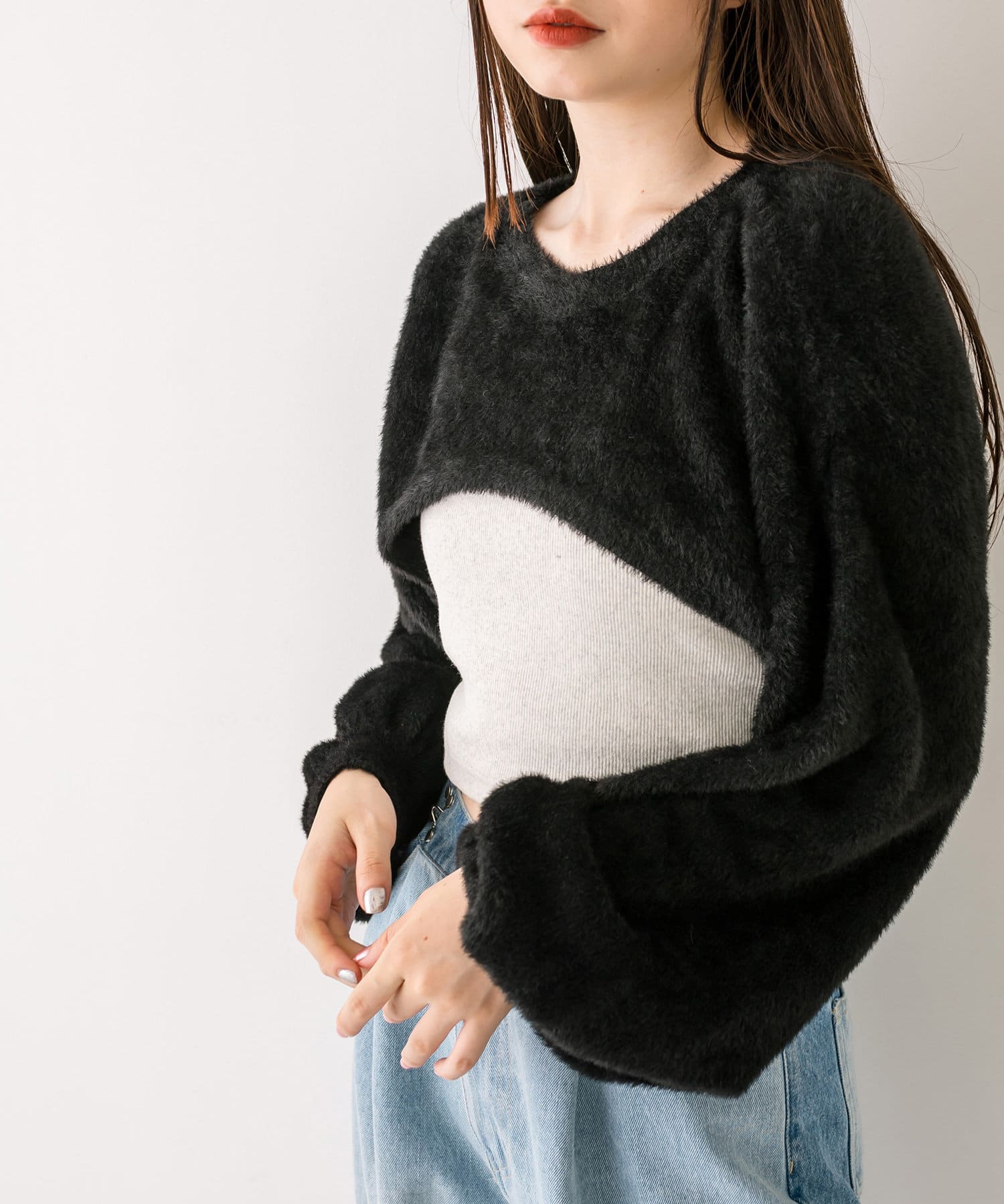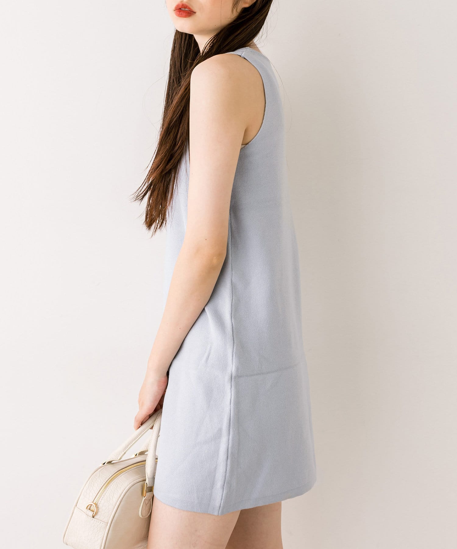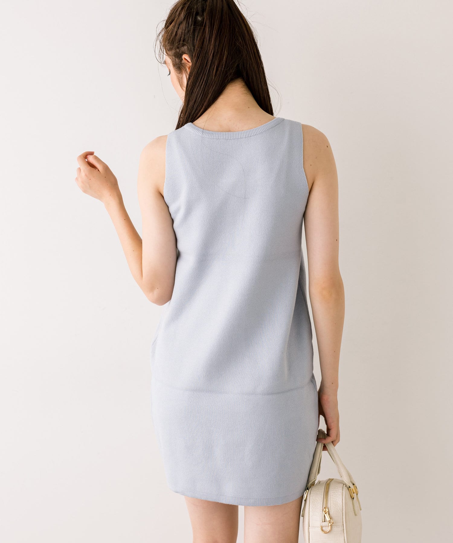 ・ふわふわのショート丈ニットと、ノースリーブニットワンピがセットに。