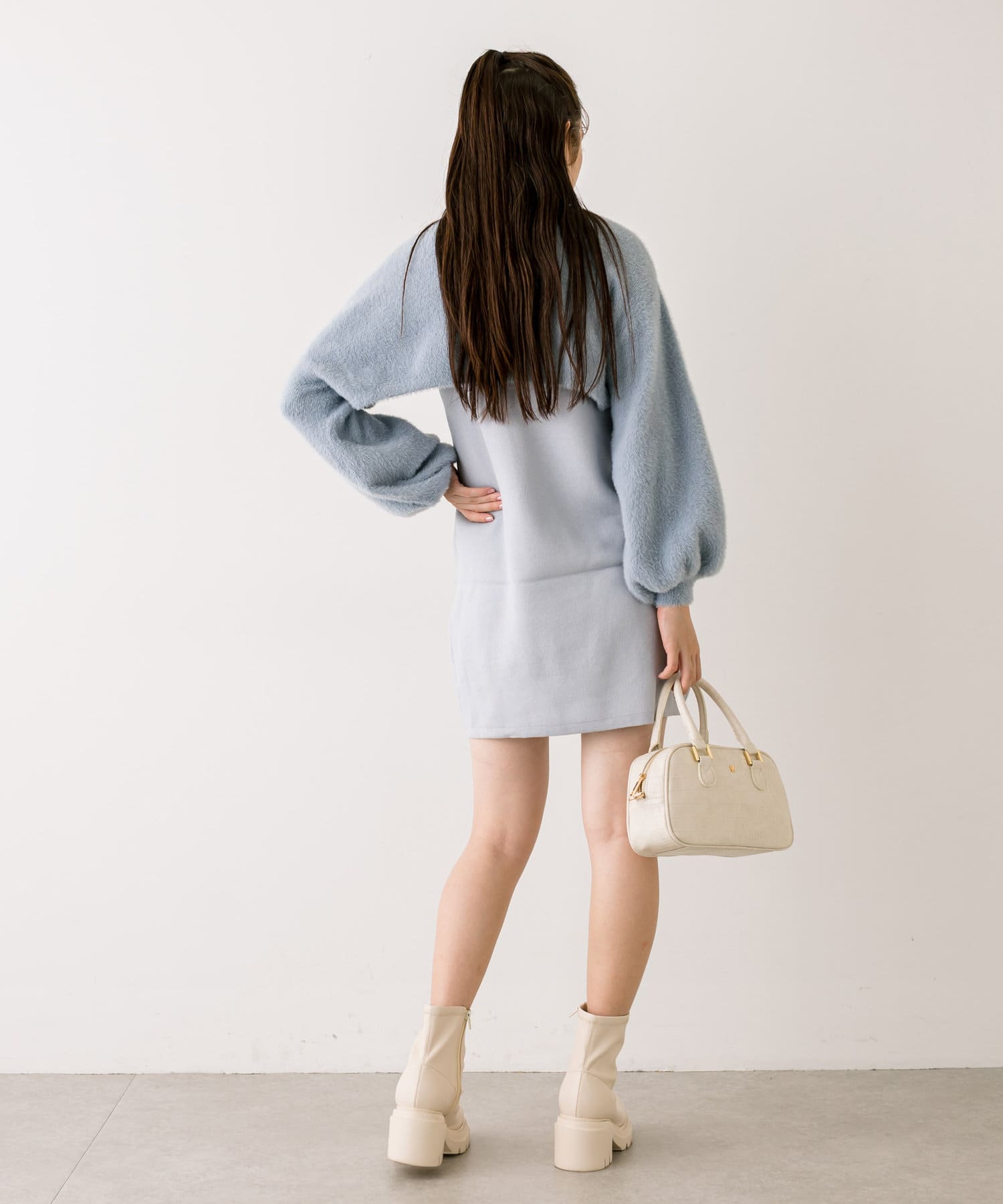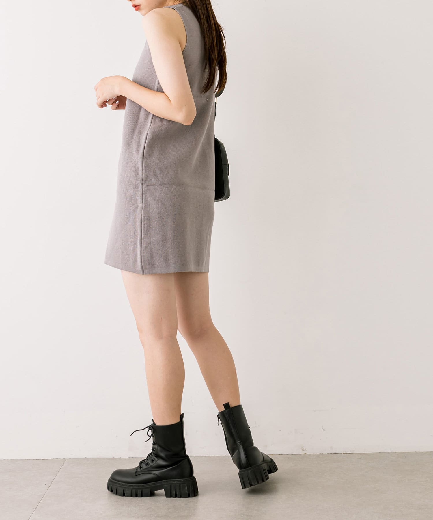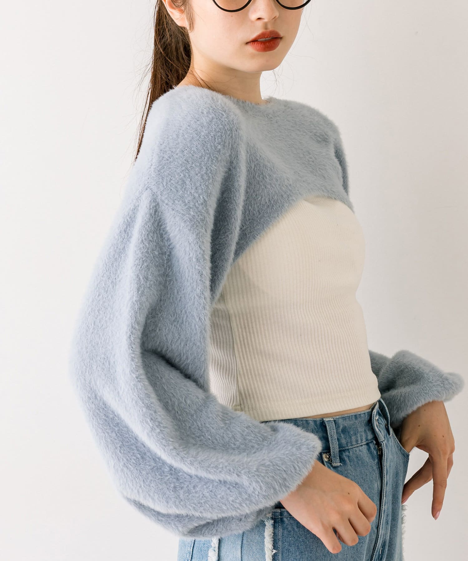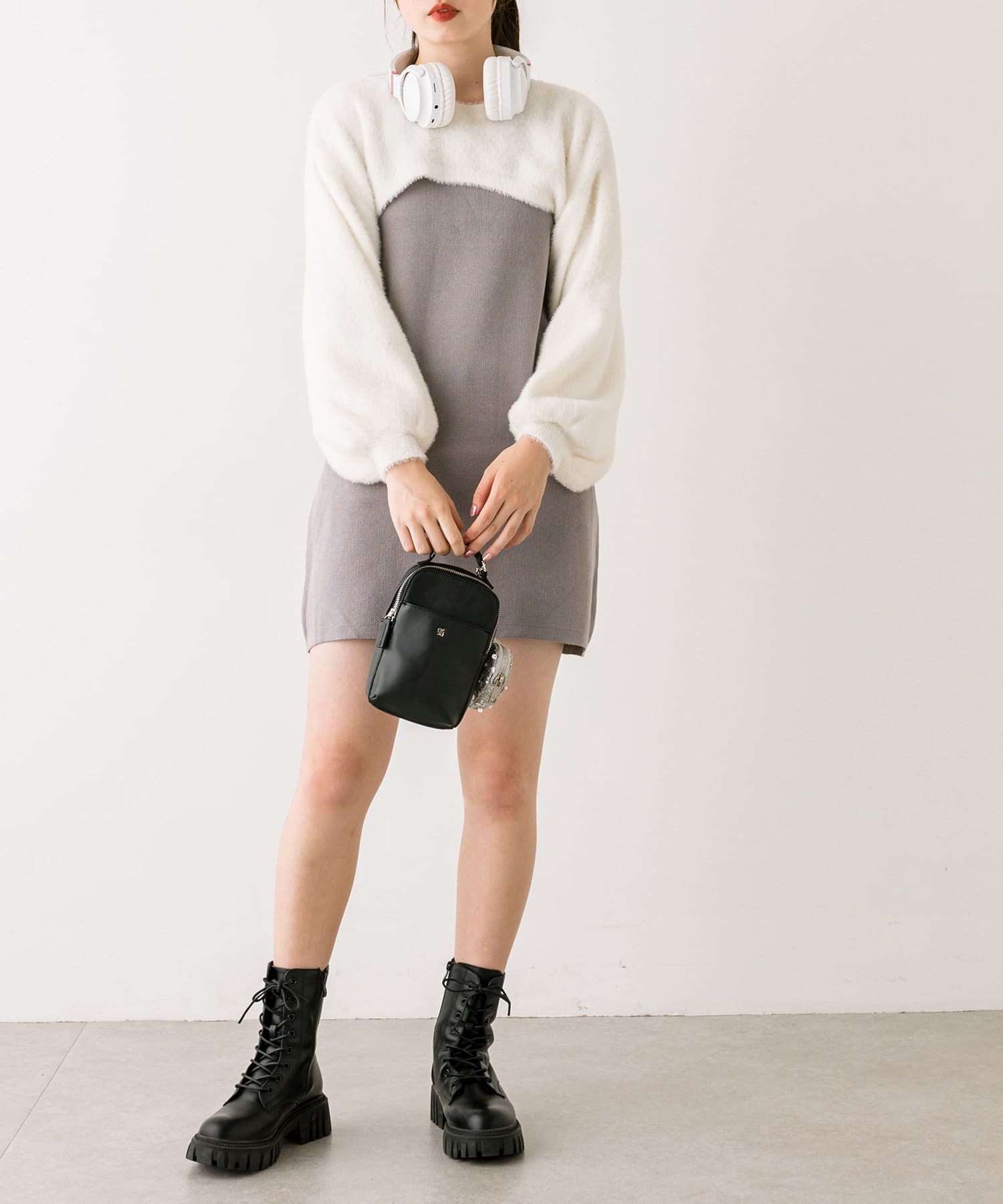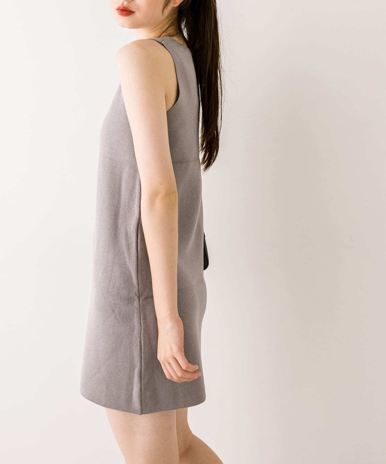 ・ふわふわのショート丈ニットと、ノースリーブニットワンピがセットに。