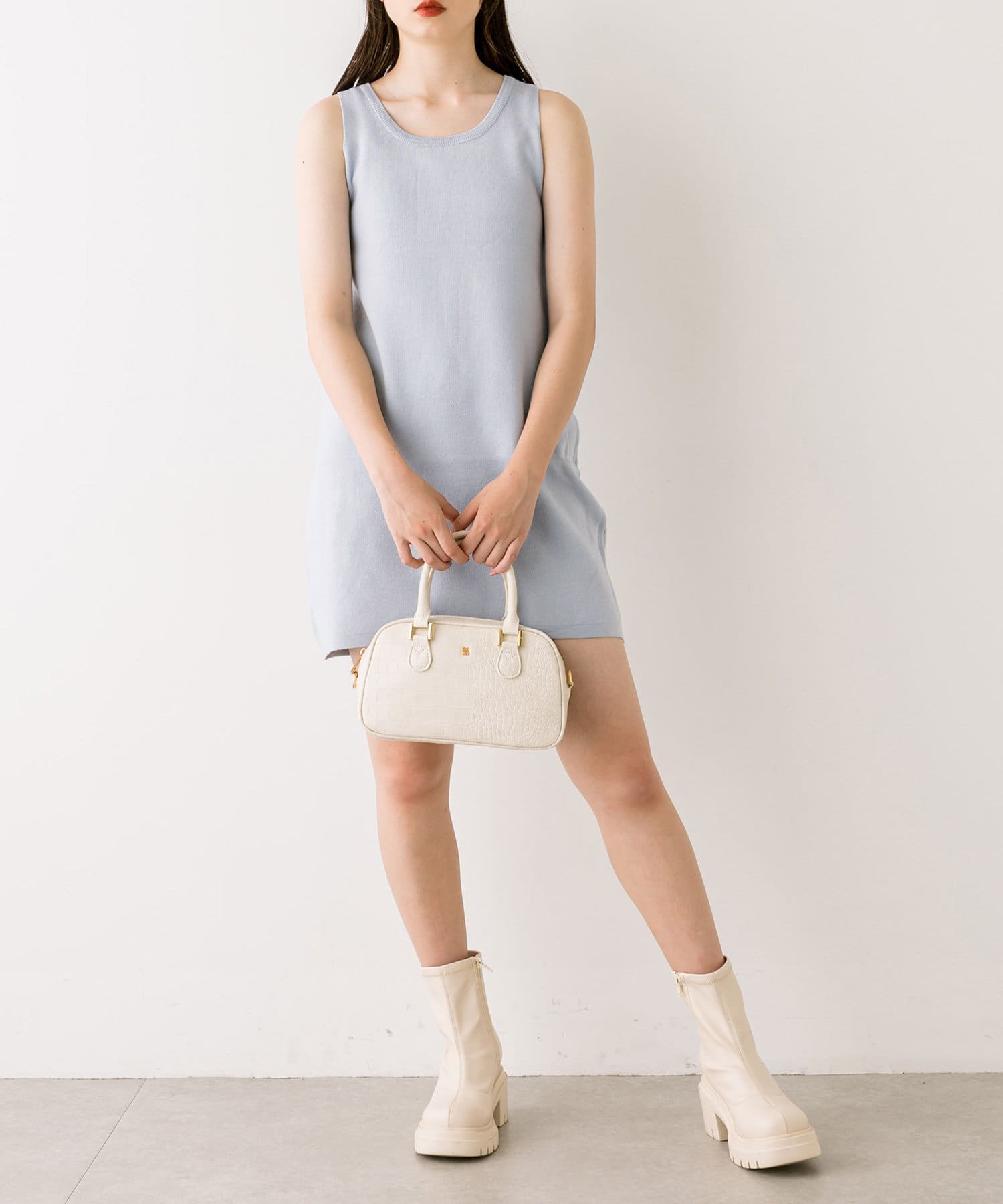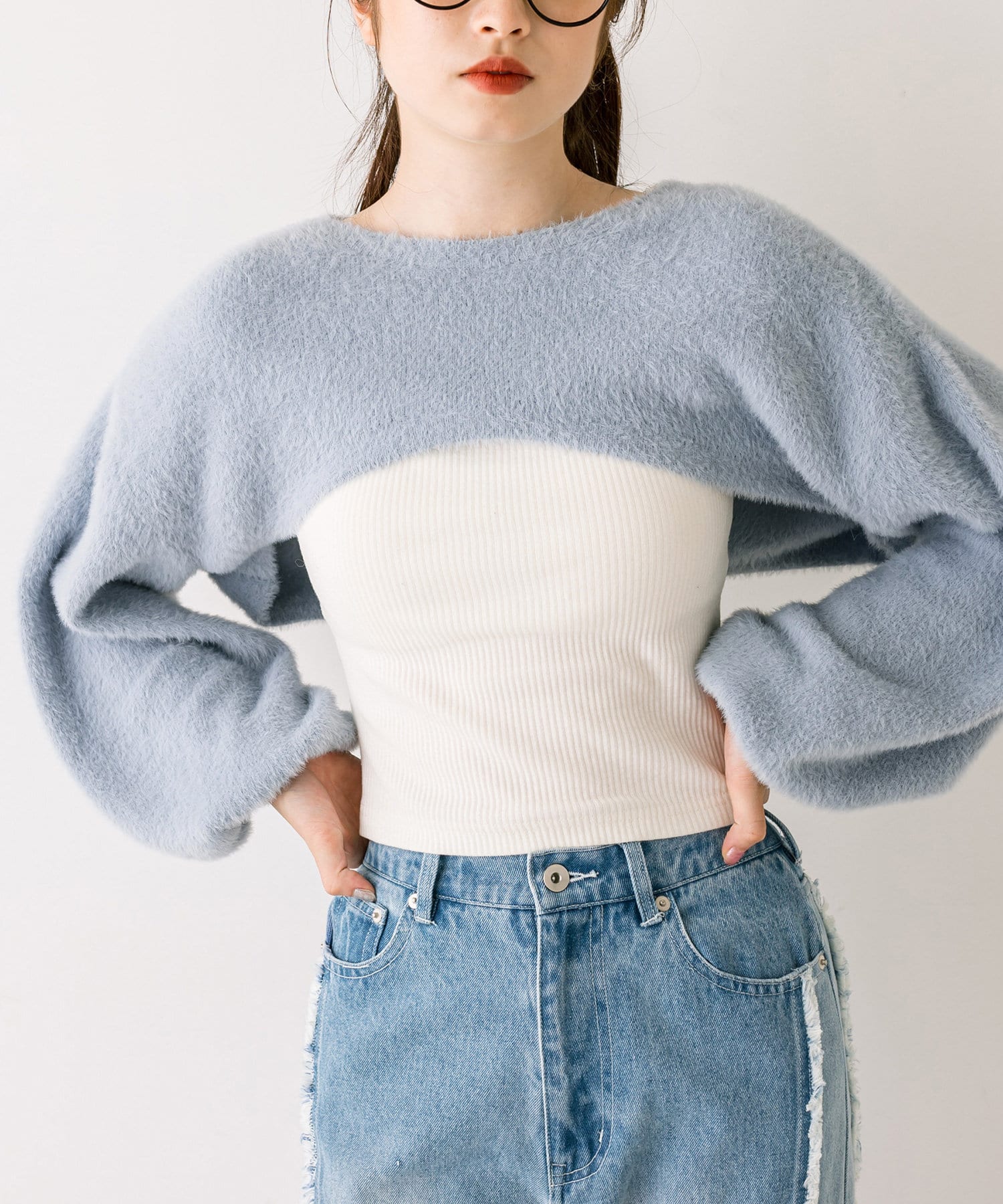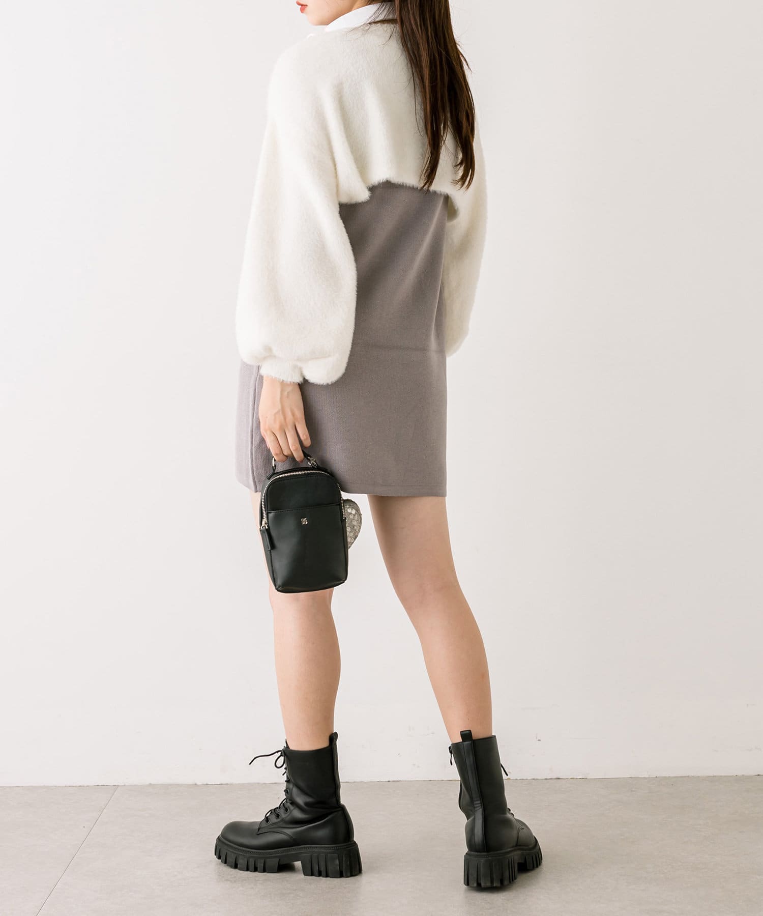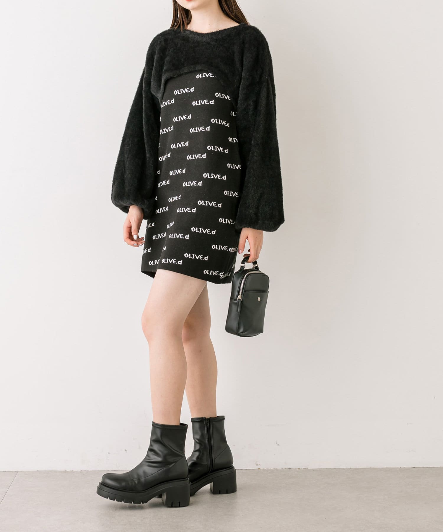 ・ふわふわのショート丈ニットと、ノースリーブニットワンピがセットに。