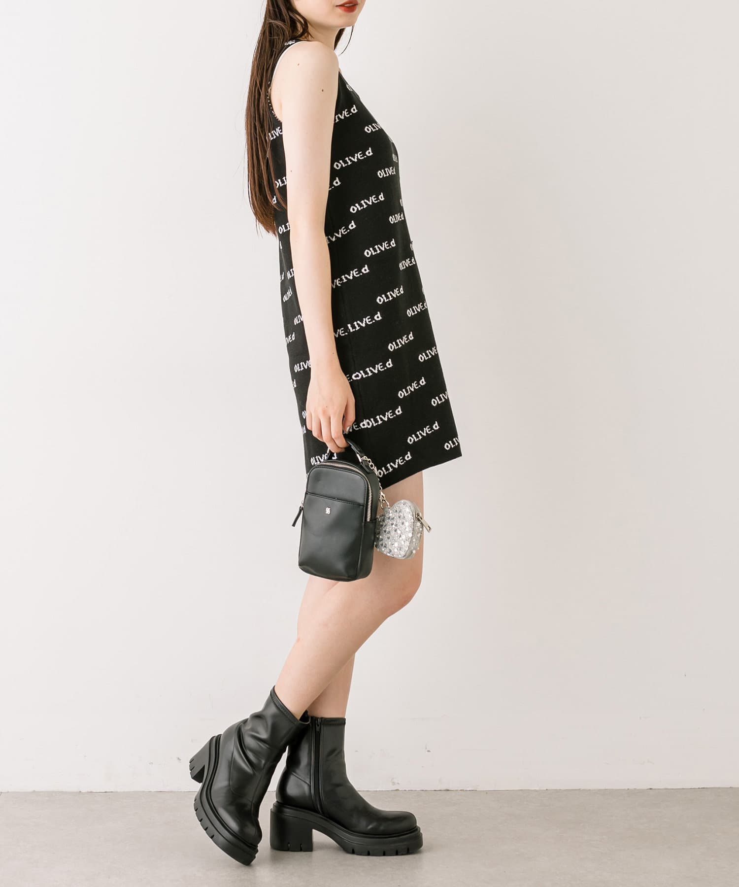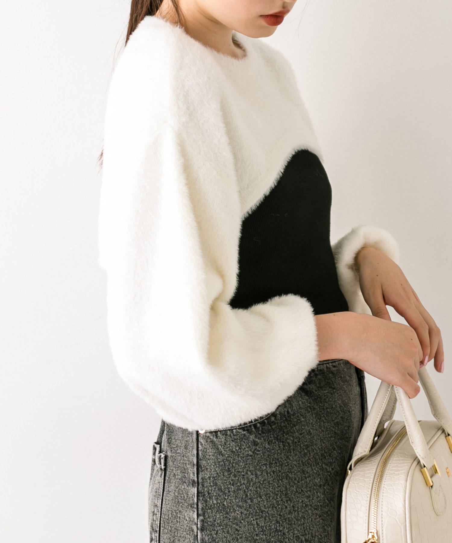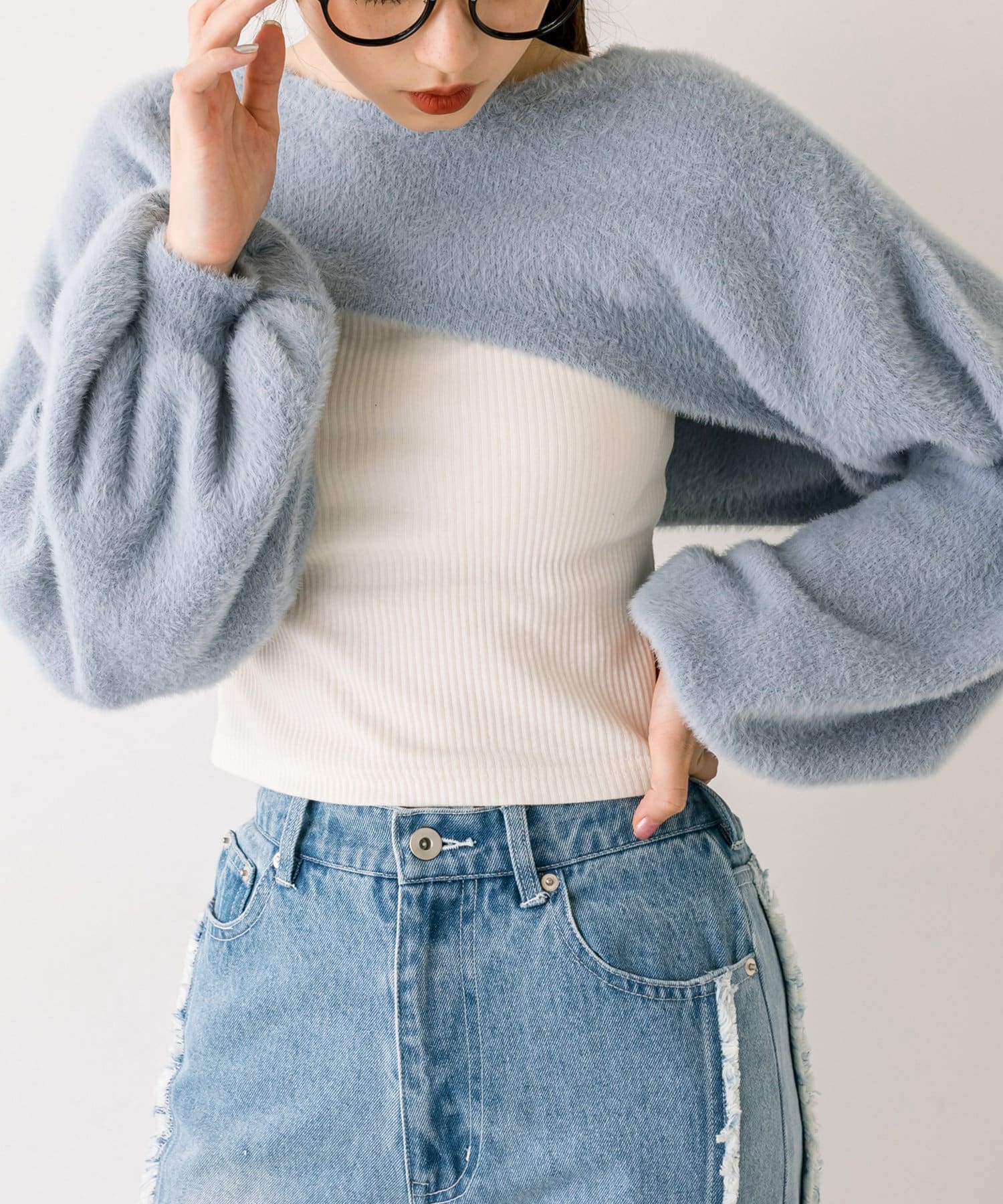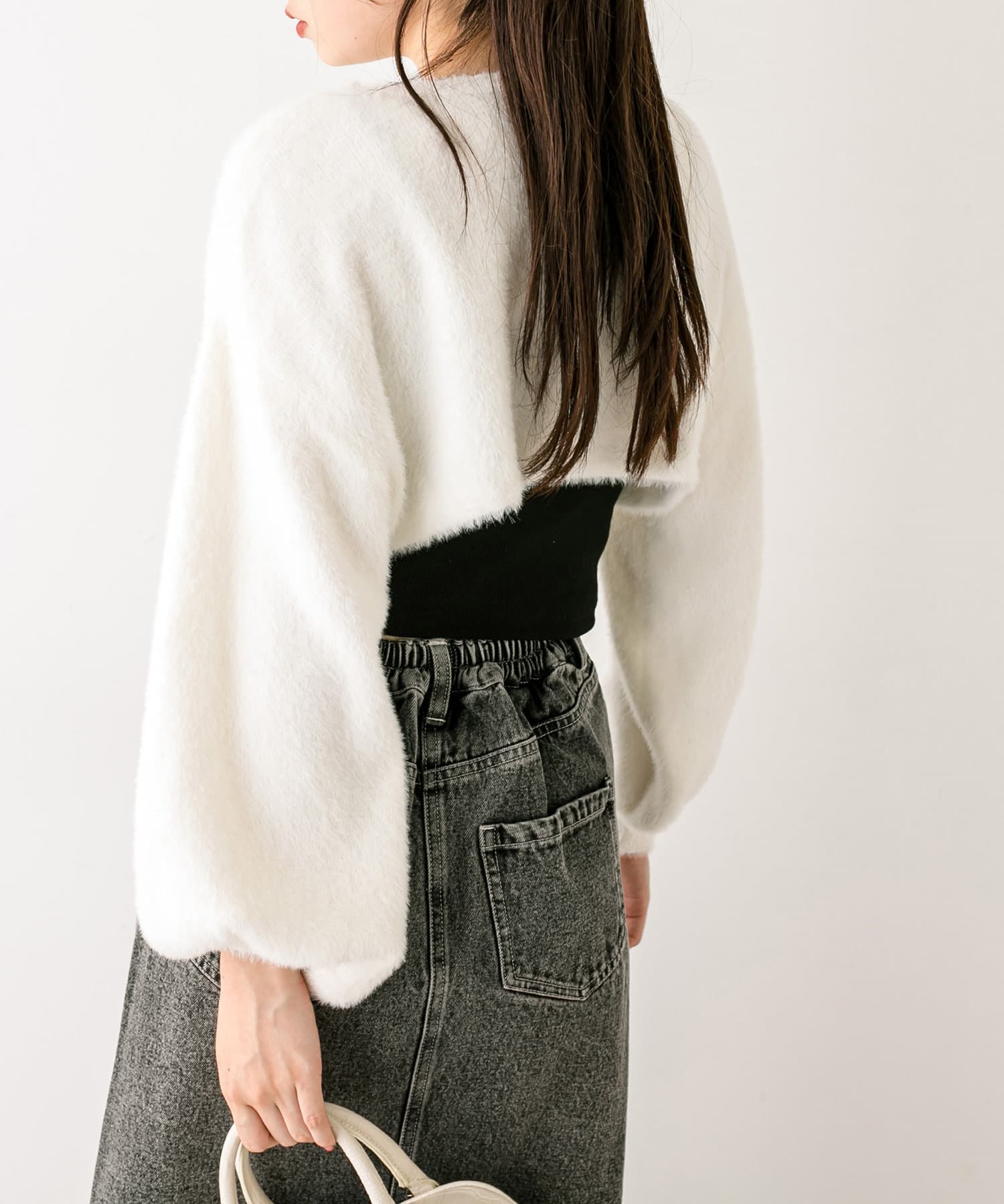 ・ふわふわのショート丈ニットと、ノースリーブニットワンピがセットに。