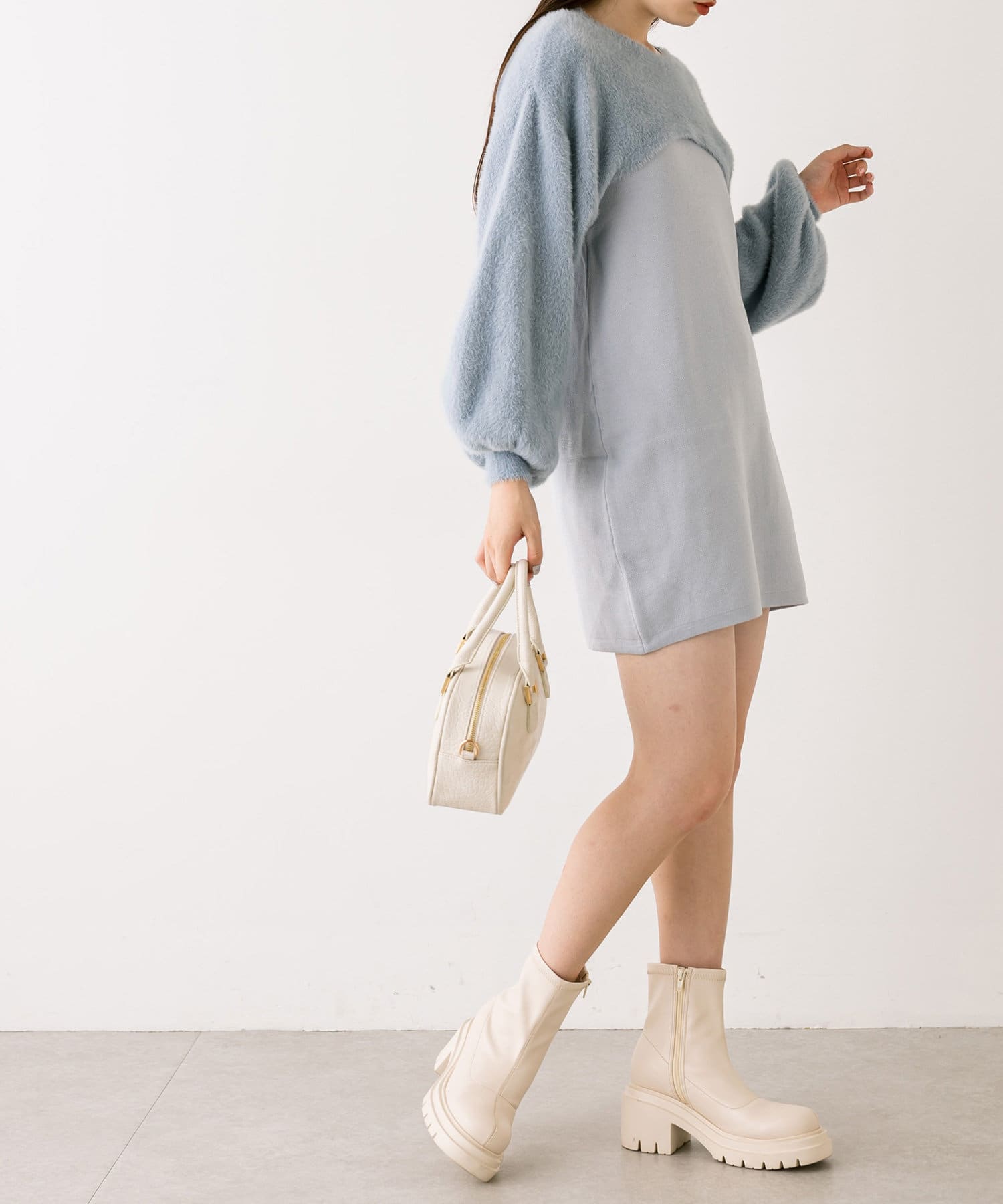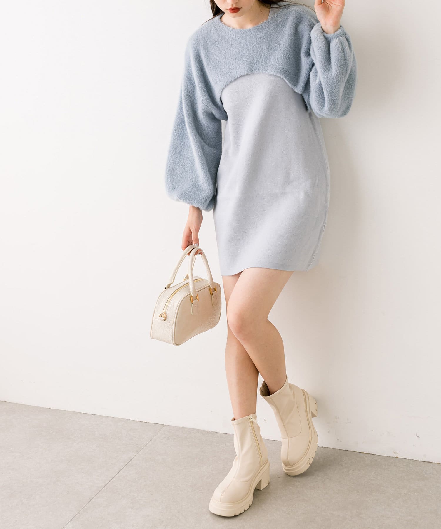 ふわふわ感たっぷりのトップスが可愛いニットセットワンピース