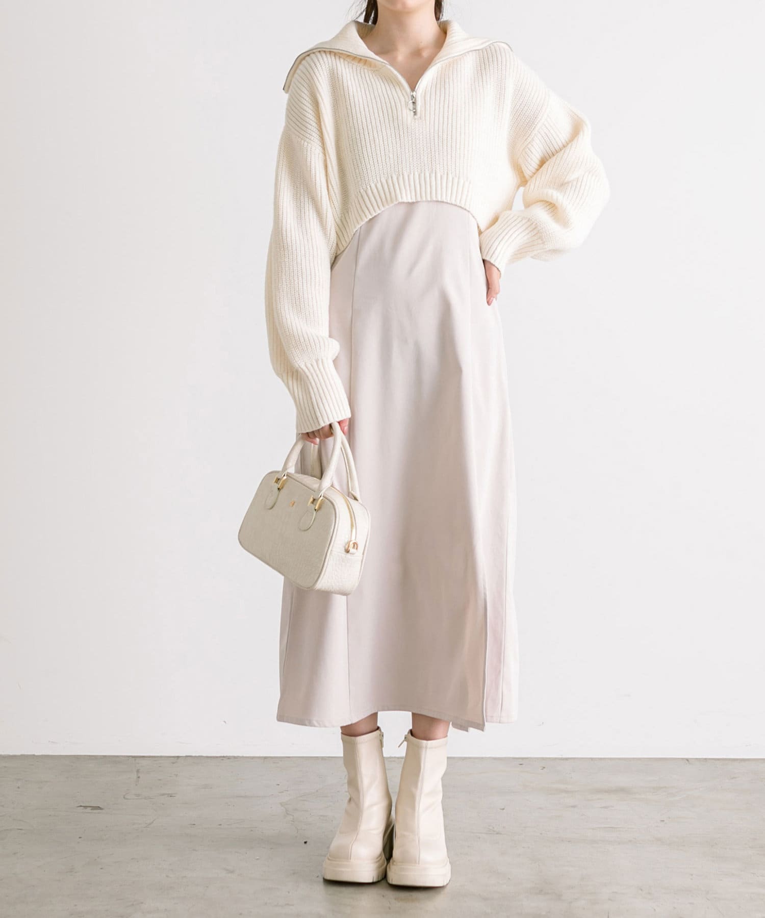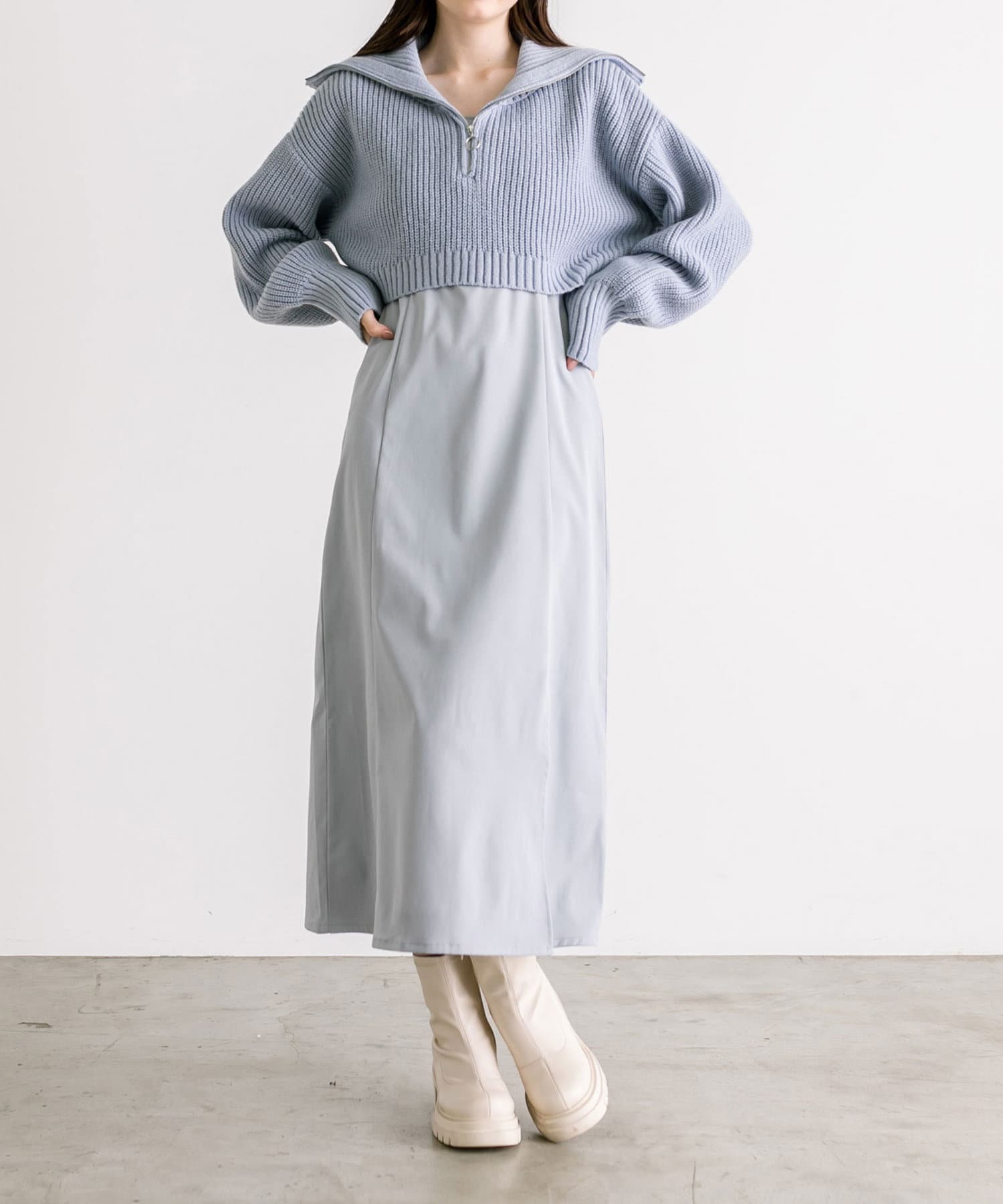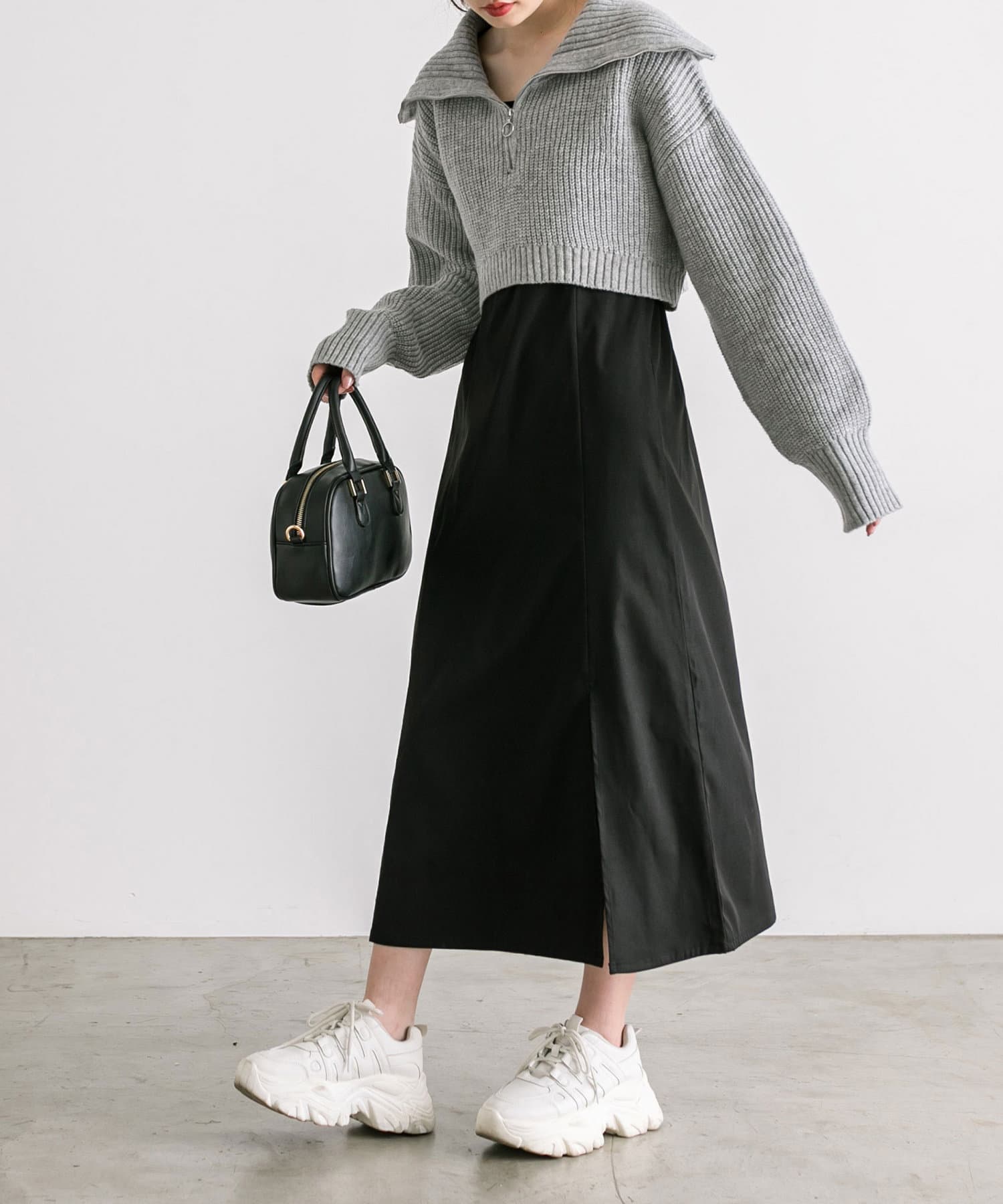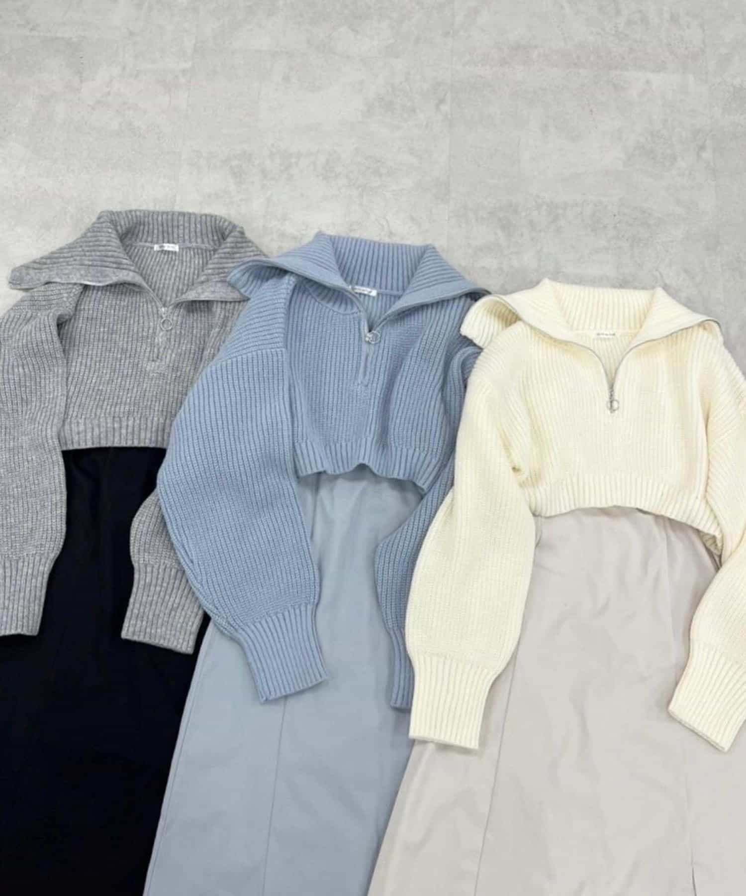 ・トレンドのハーフジップニットとキャミワンピースのセットアイテム。