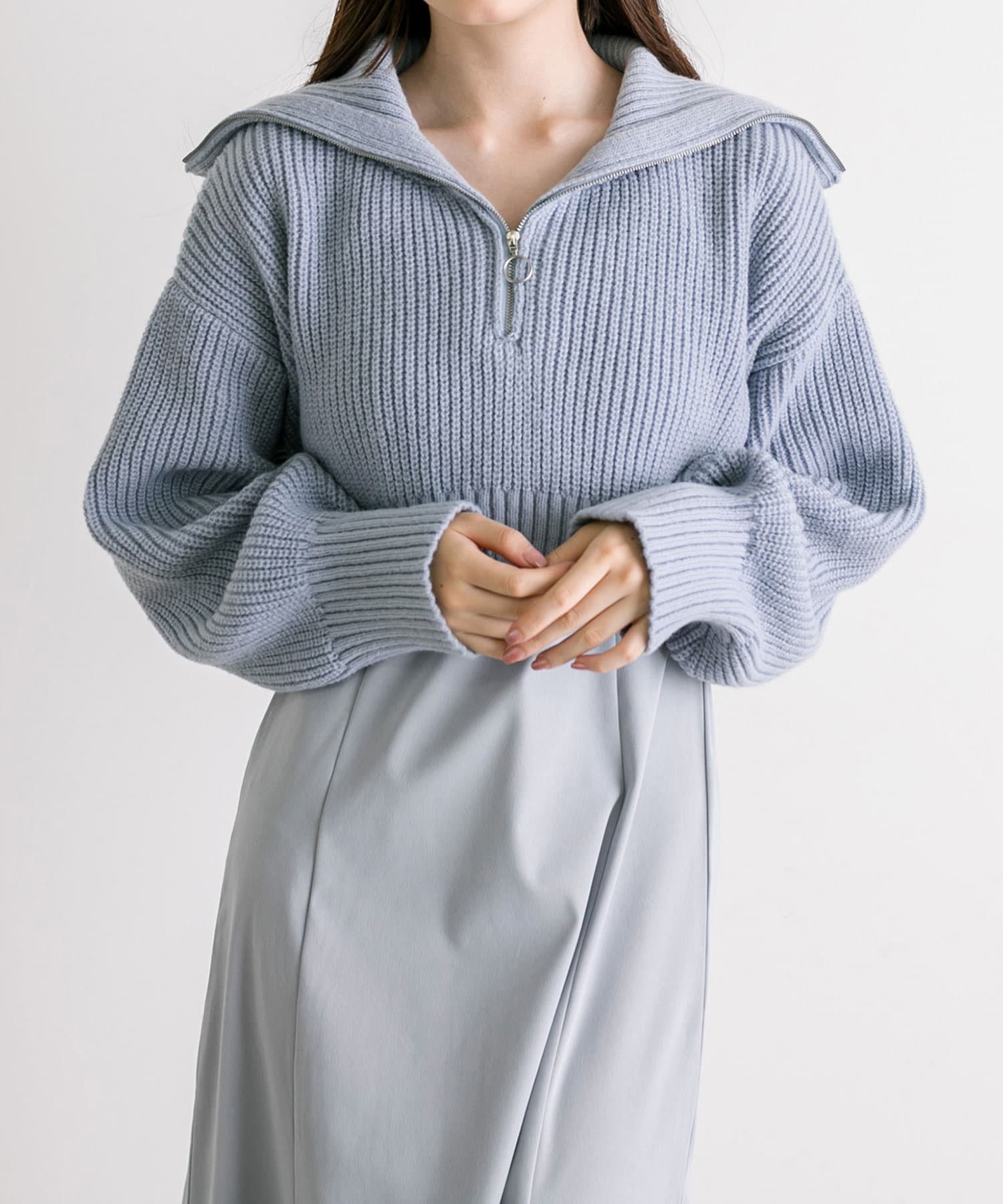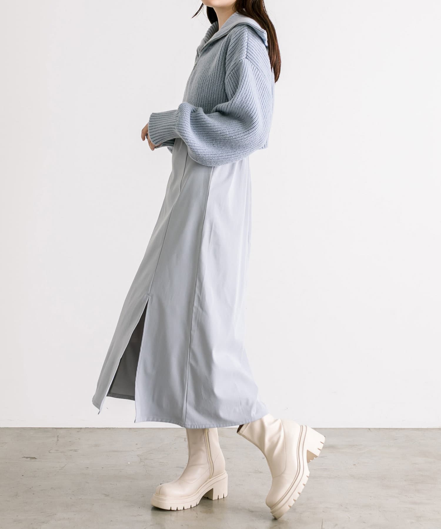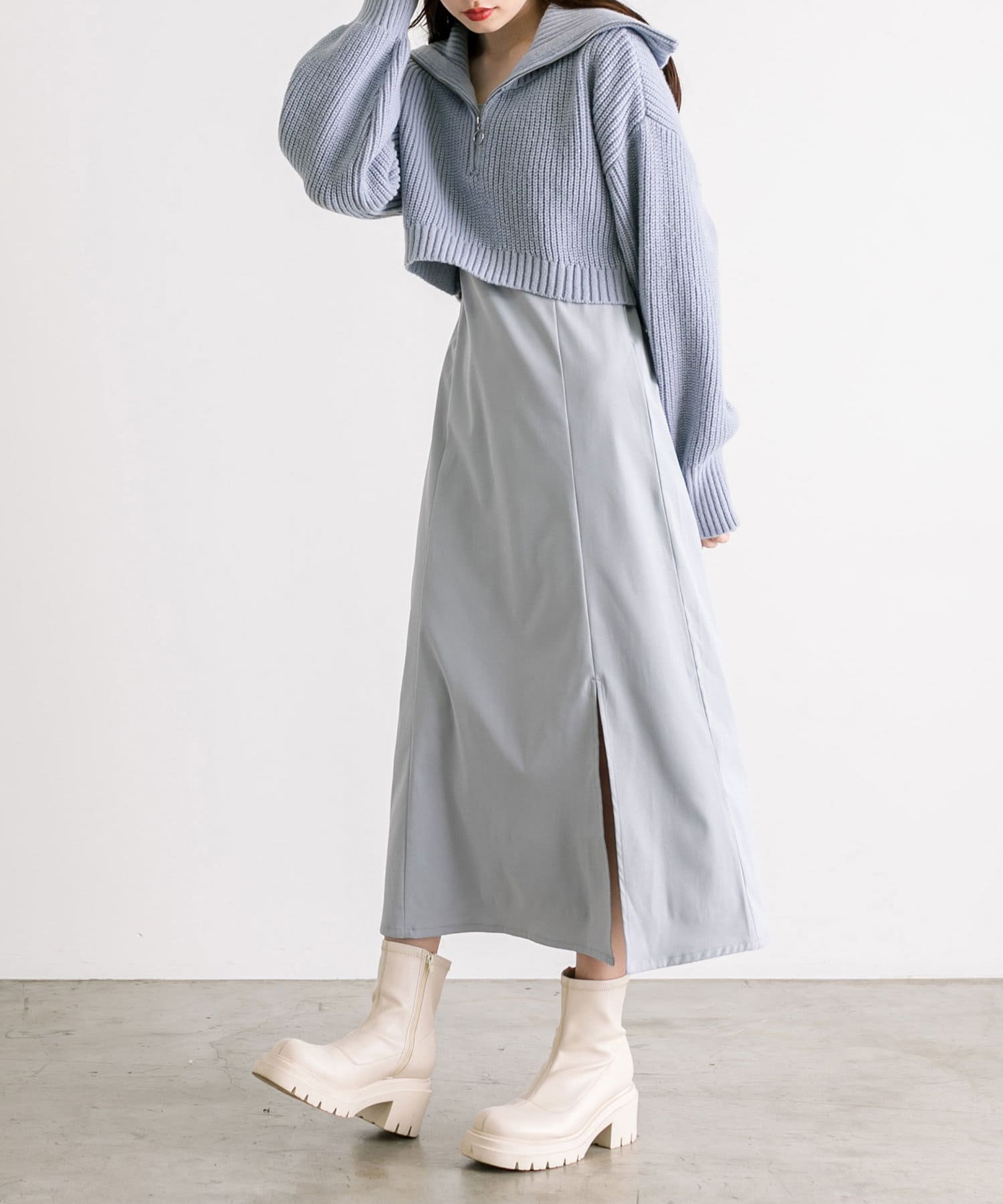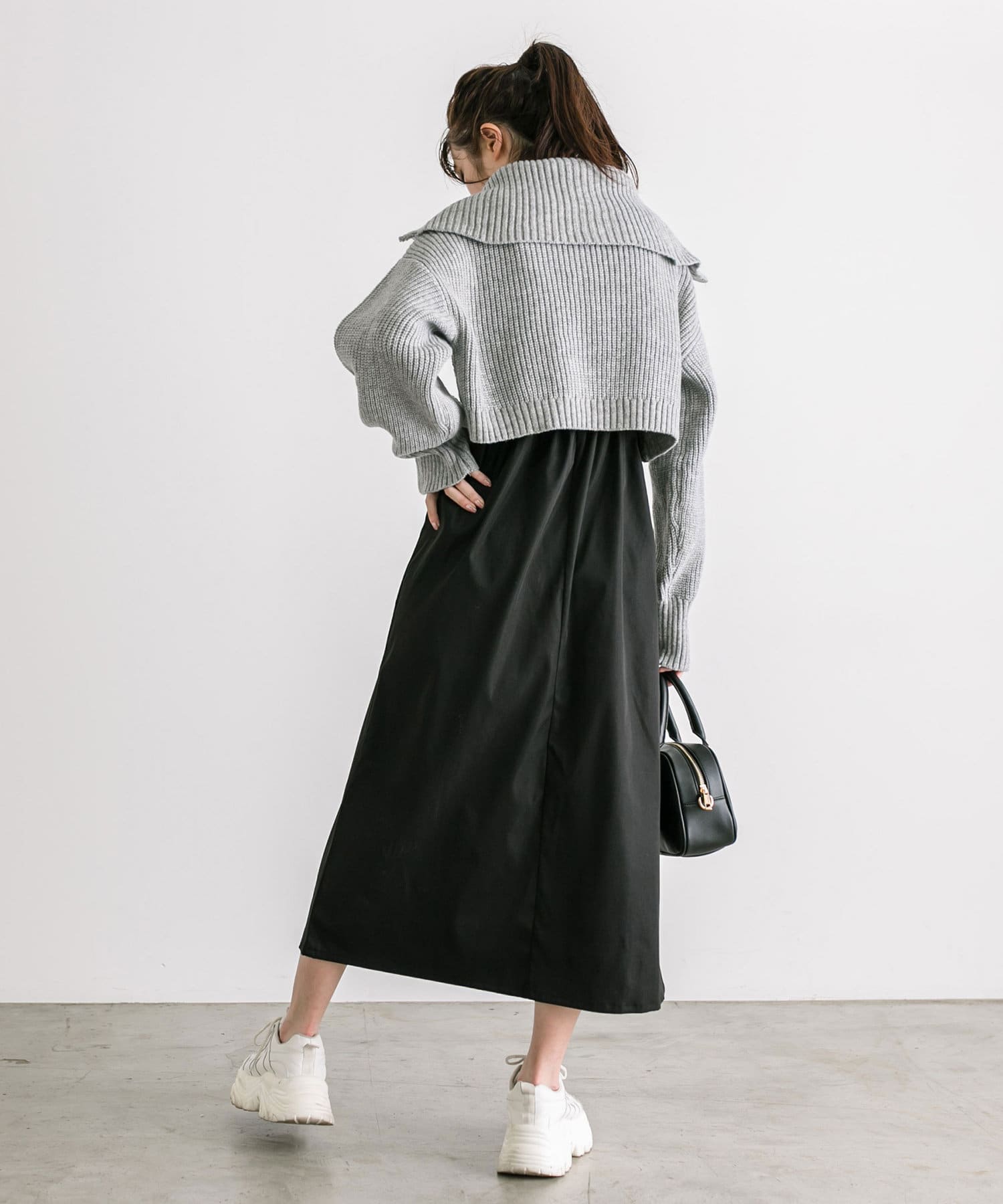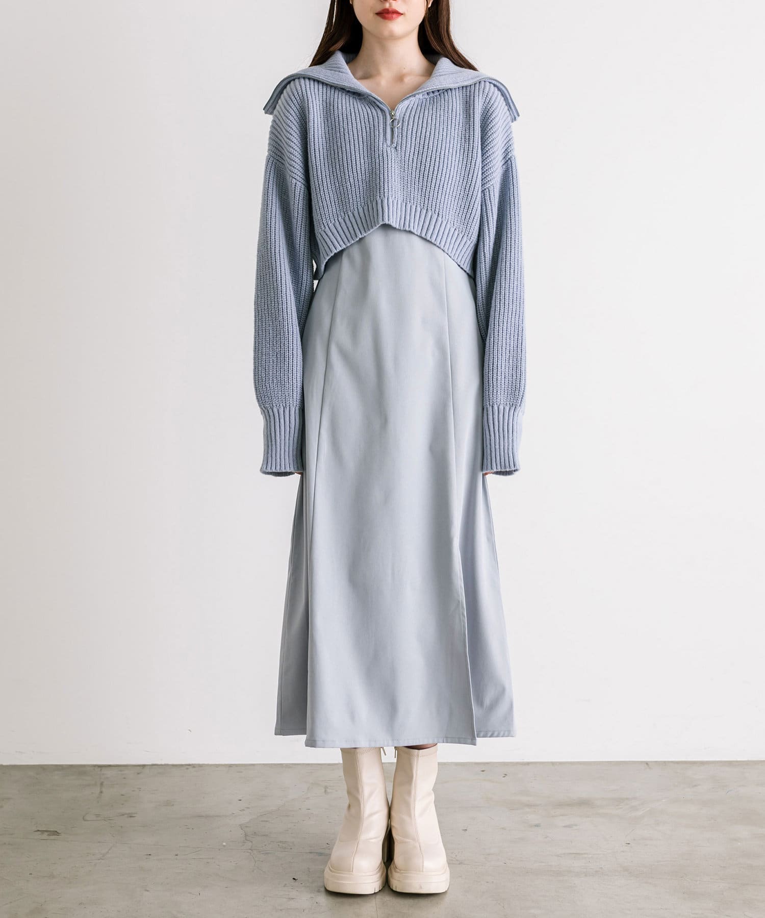・トレンドのハーフジップニットとキャミワンピースのセットアイテム。