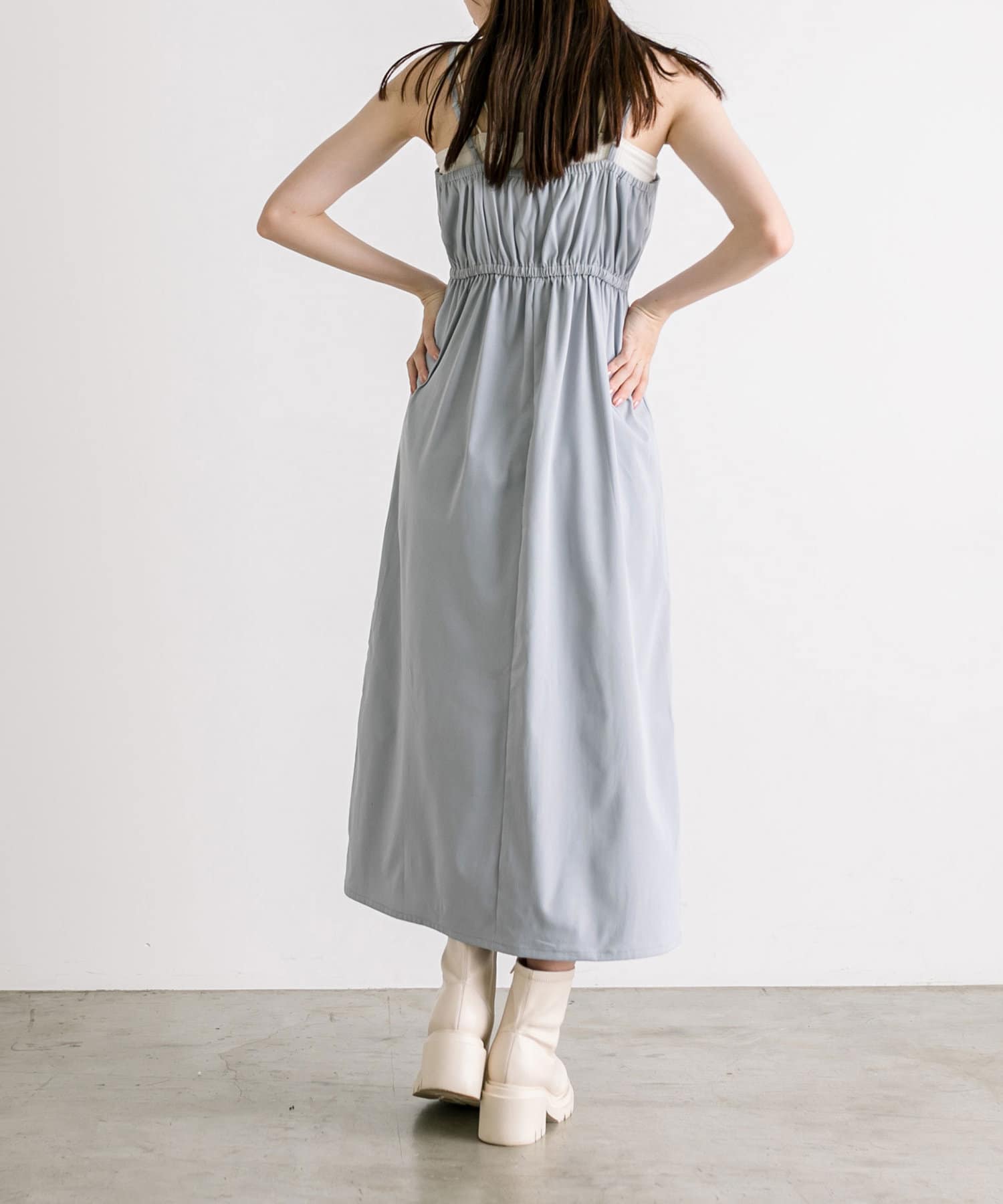 ・キャミワンピースは裏地無しですが、生地がしっかした素材なので1枚でも透ける心配はありません◎