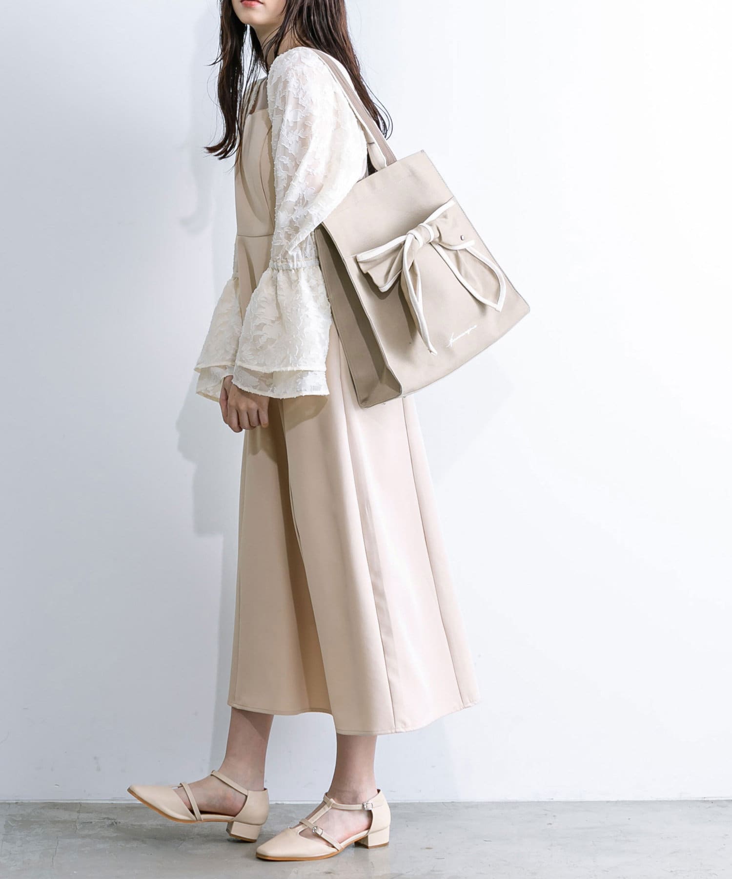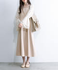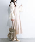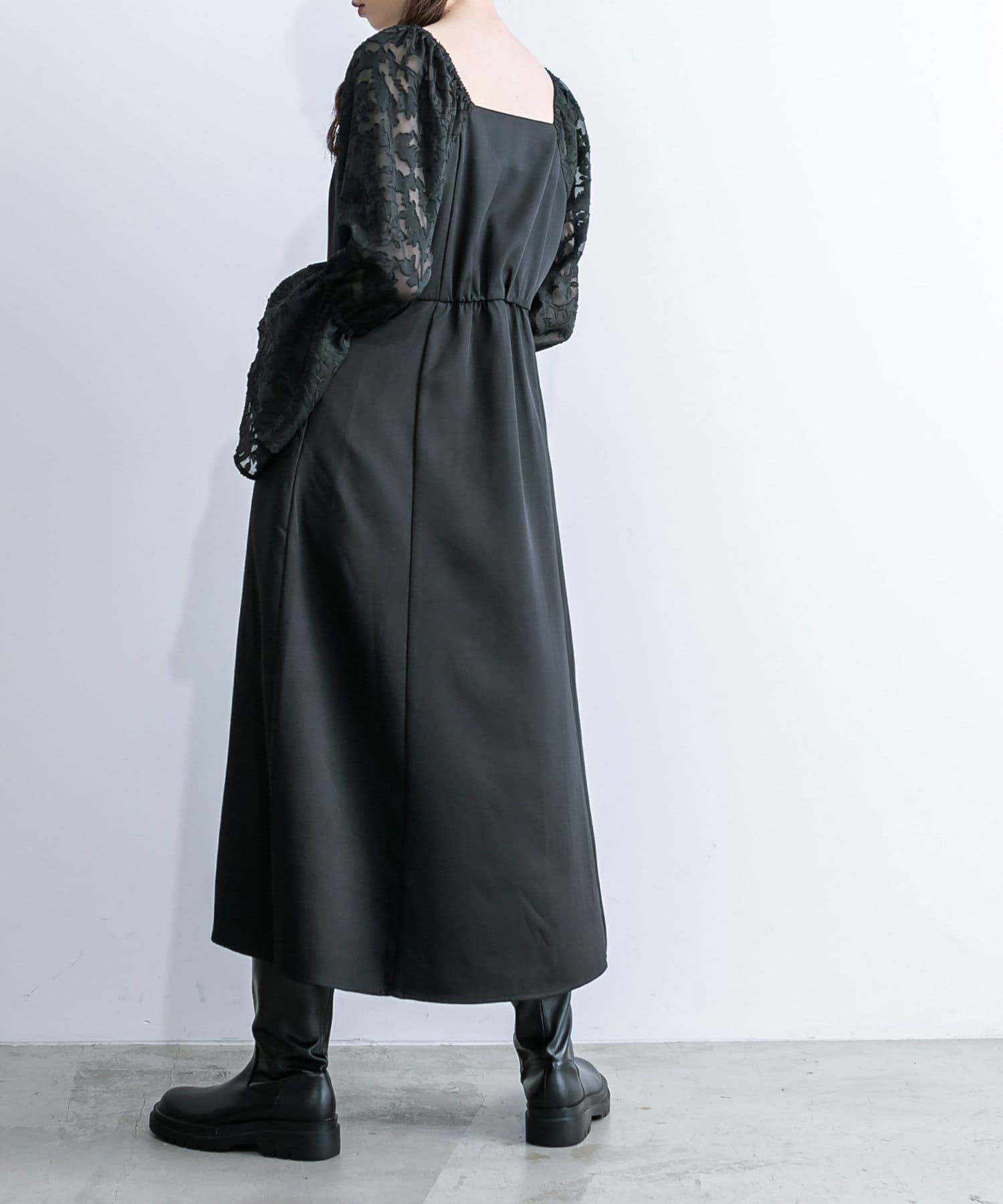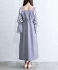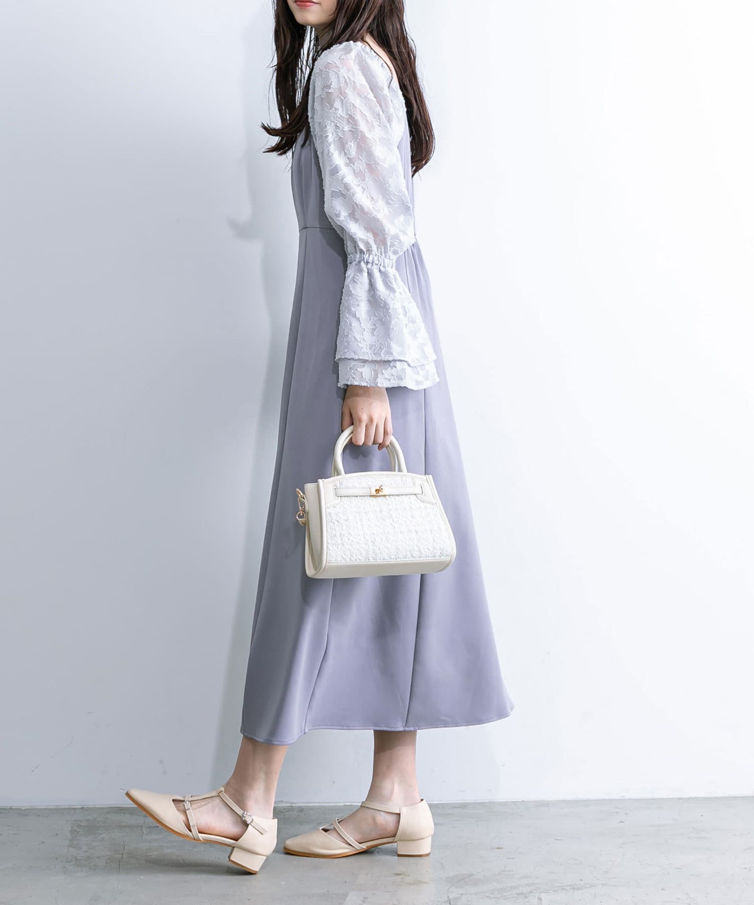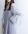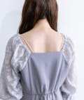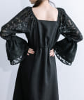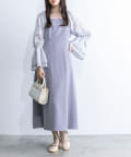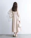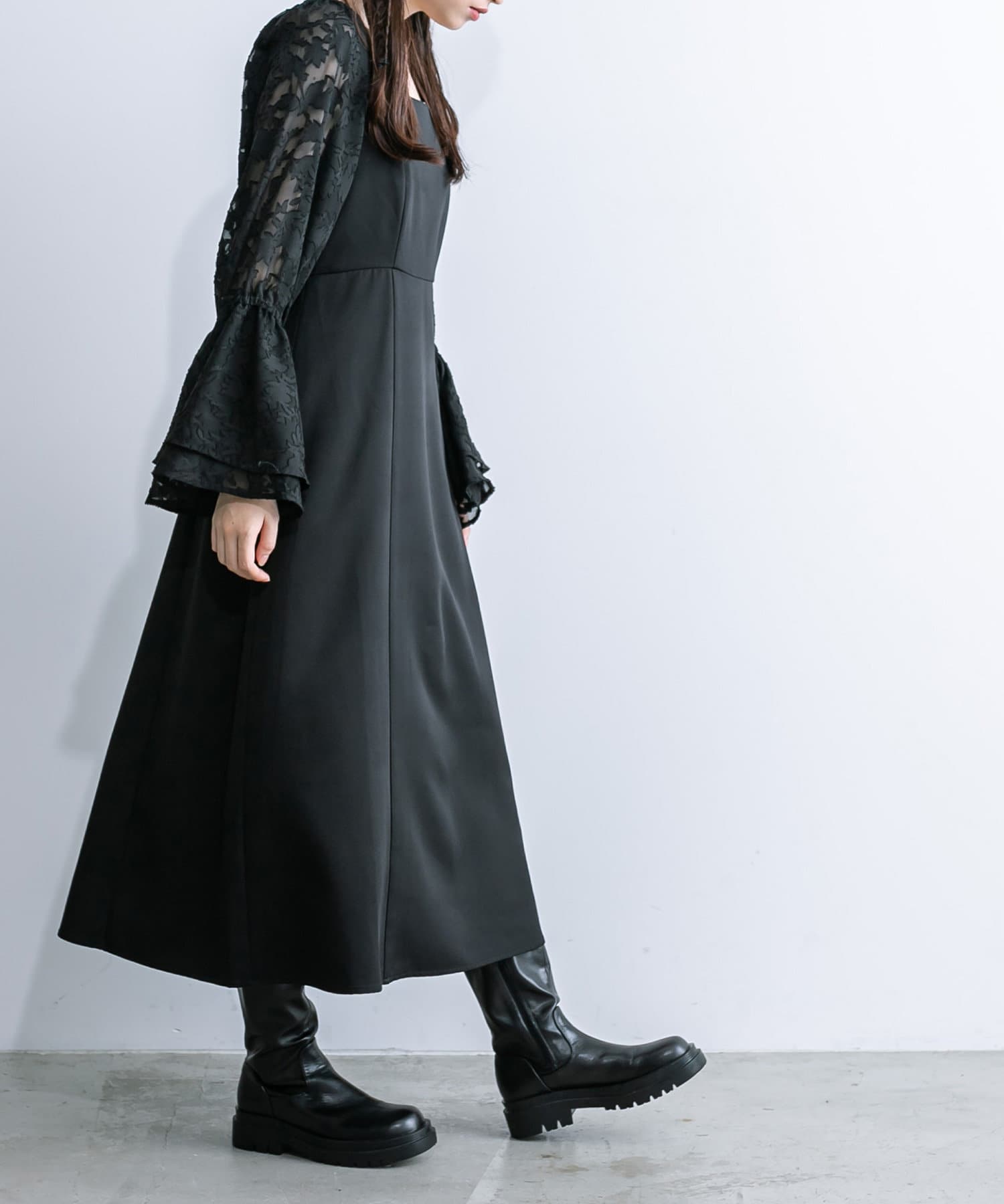 ・着やすいボリューム感のフレアスリーブとシンプルなワンピースをドッキングしたような、レイヤード感のあるデザインです。