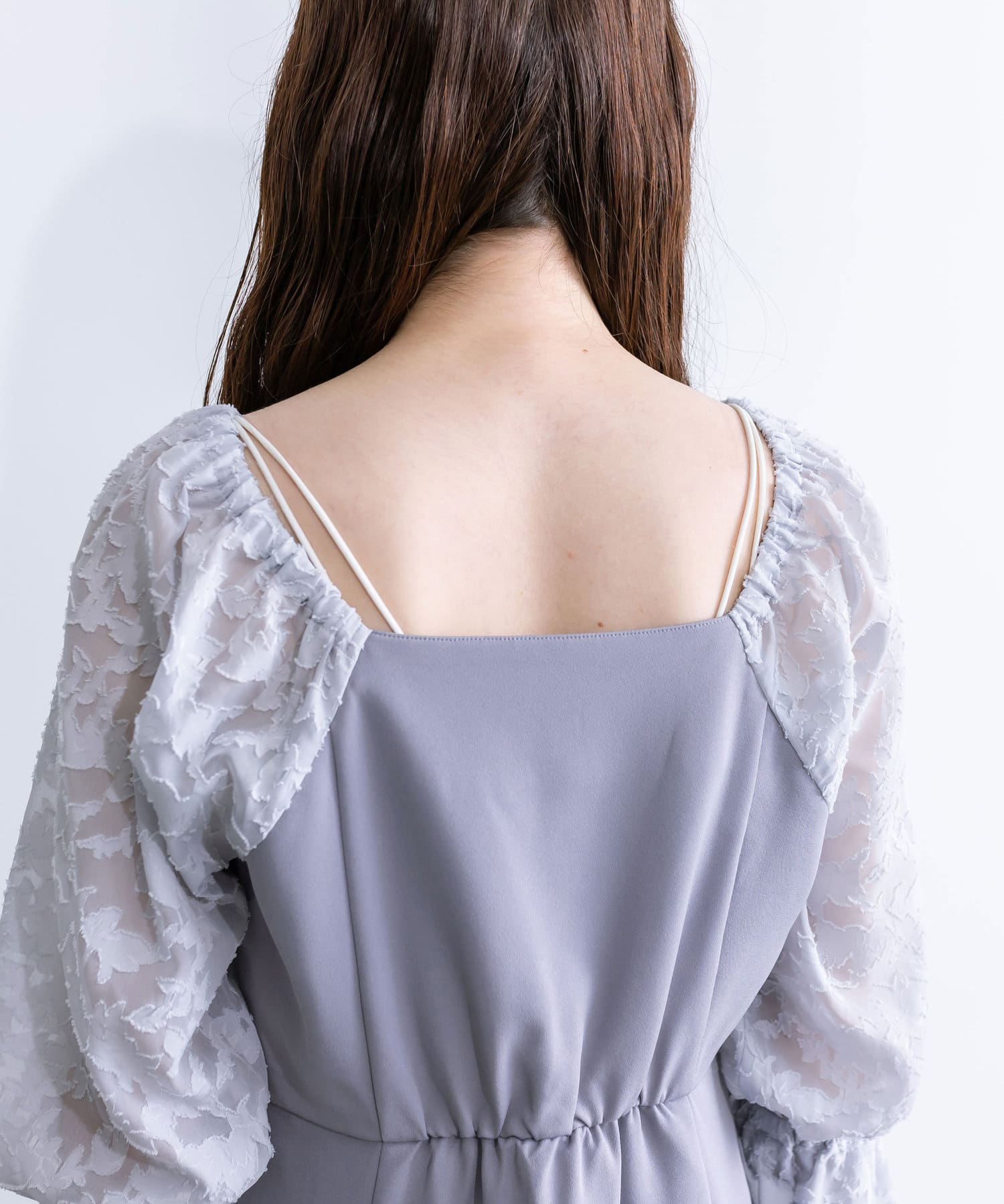 ・袖は程よい透け感があり女性らしい印象に。結婚式や二次会などお呼ばれシーンにも活躍します。