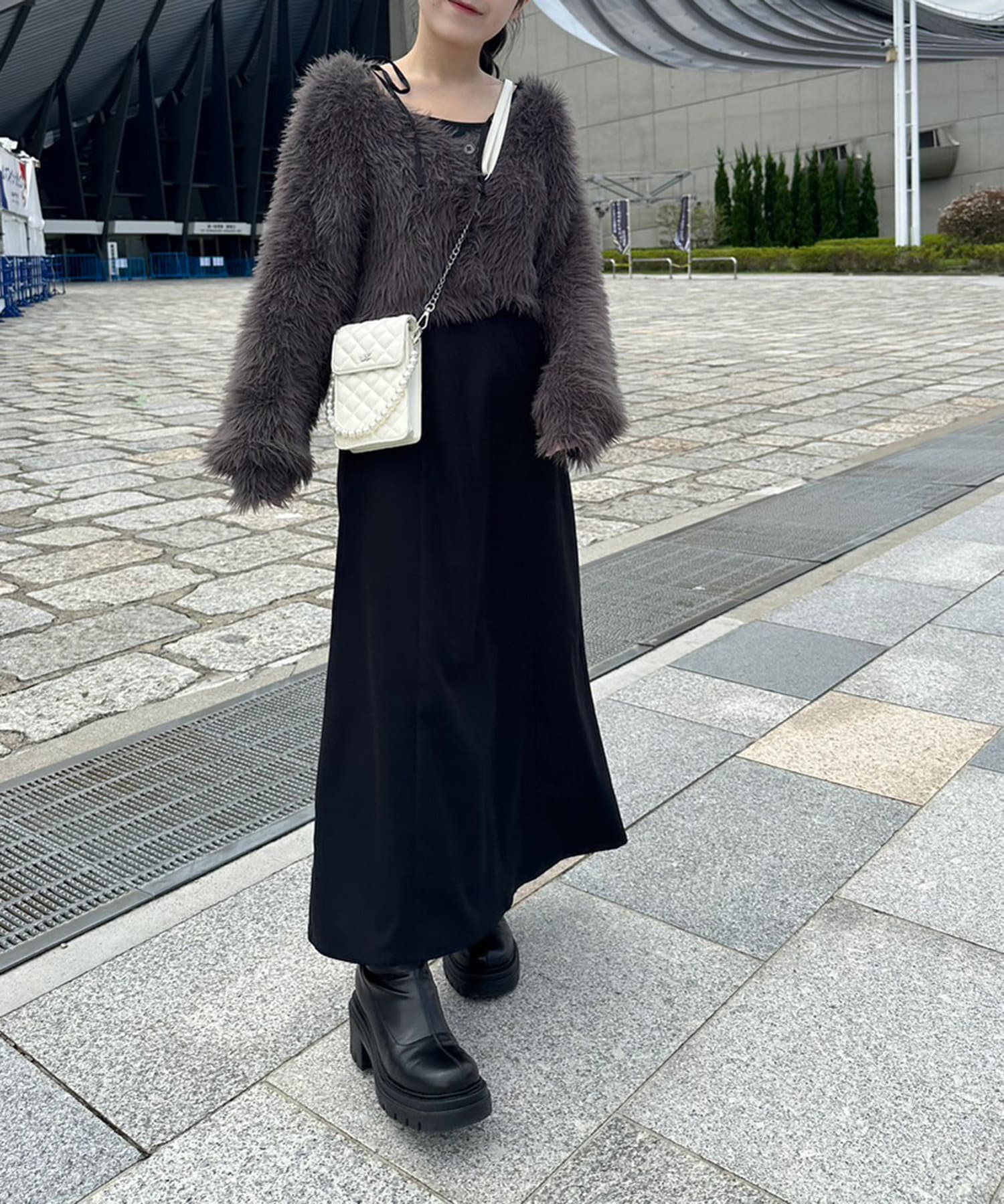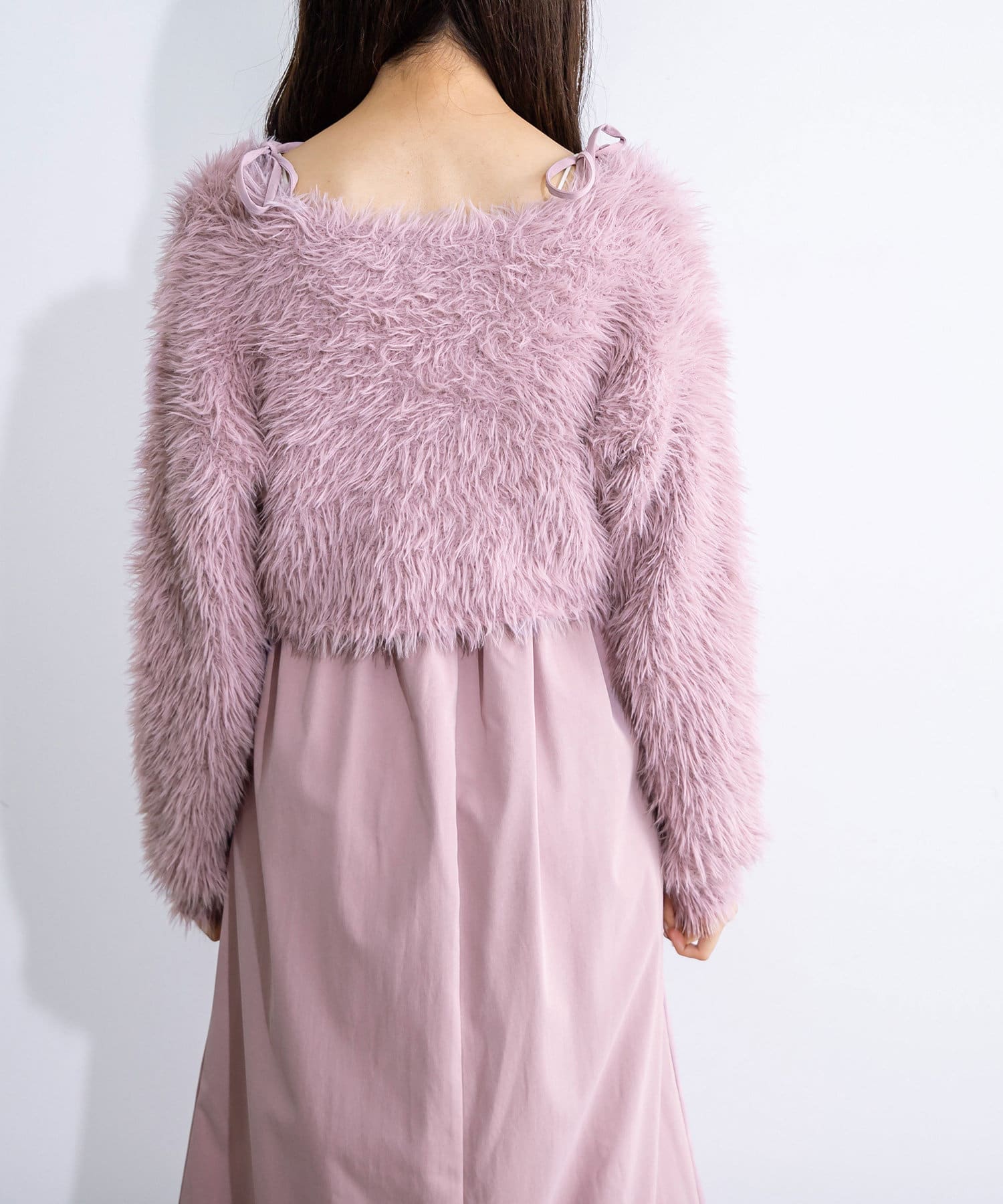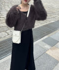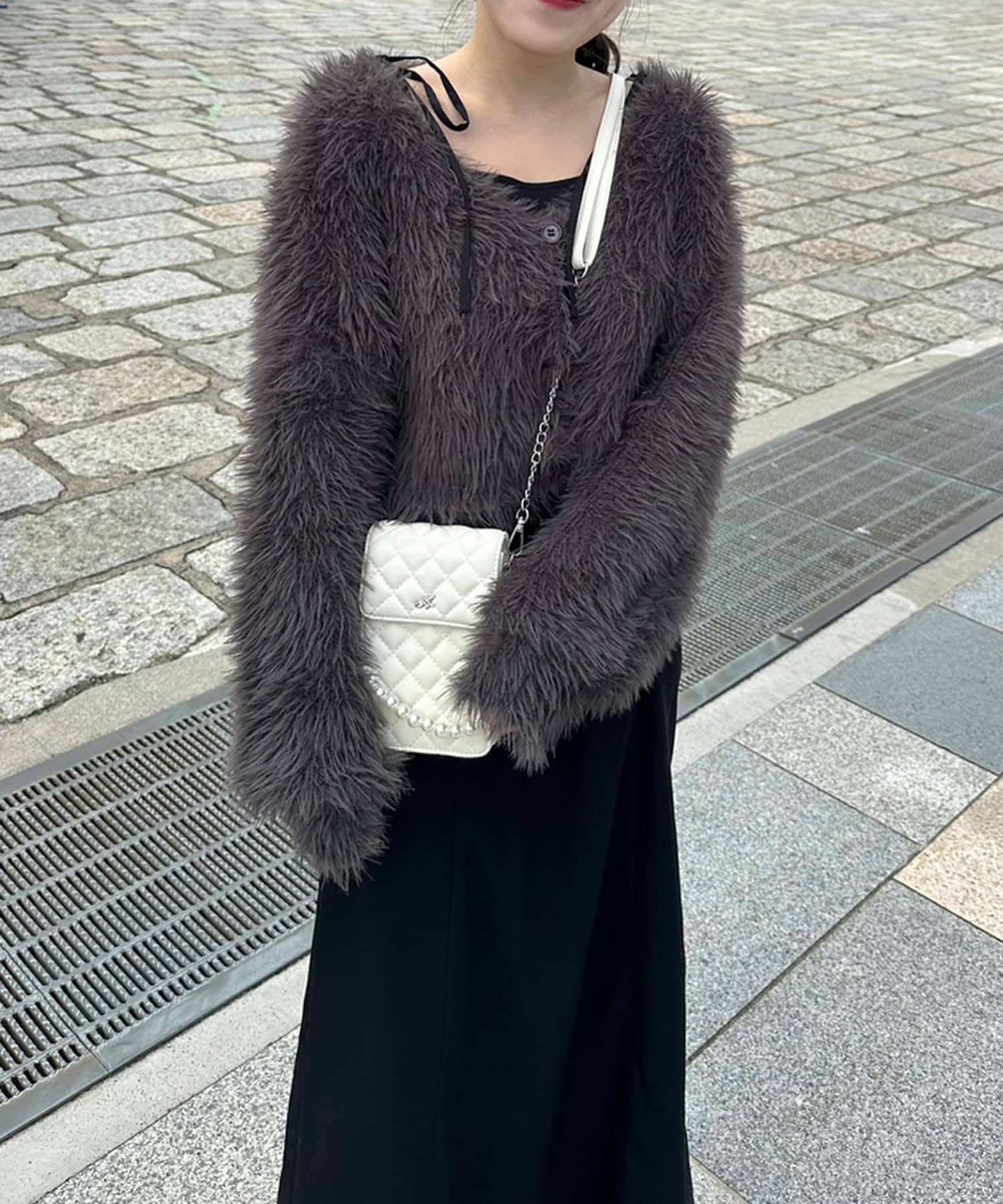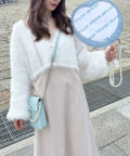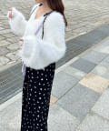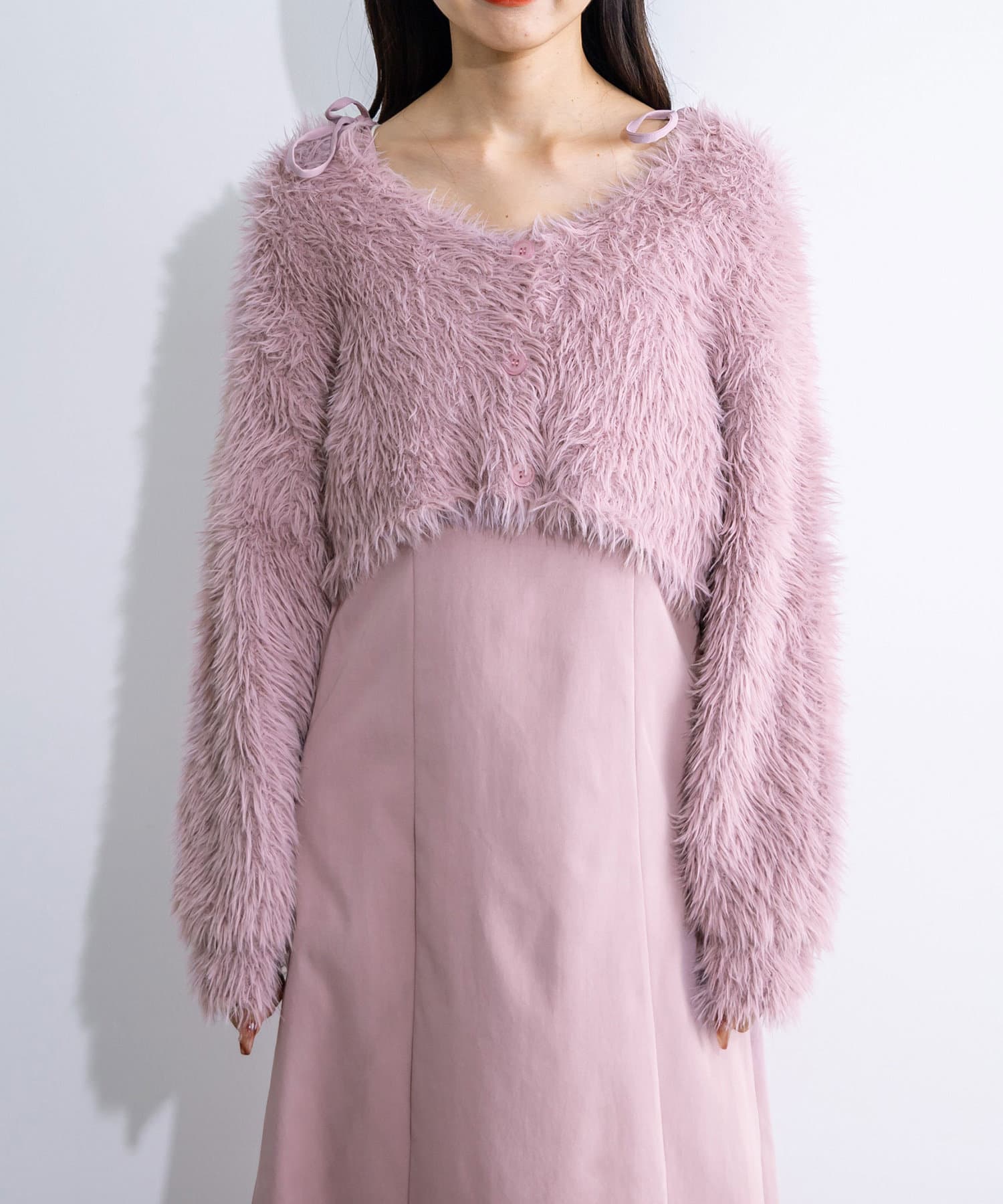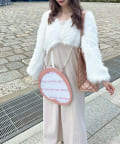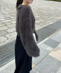 ・カーディガンはフェザーのようなふわふわの肌触り。着るだけで華やな印象に。