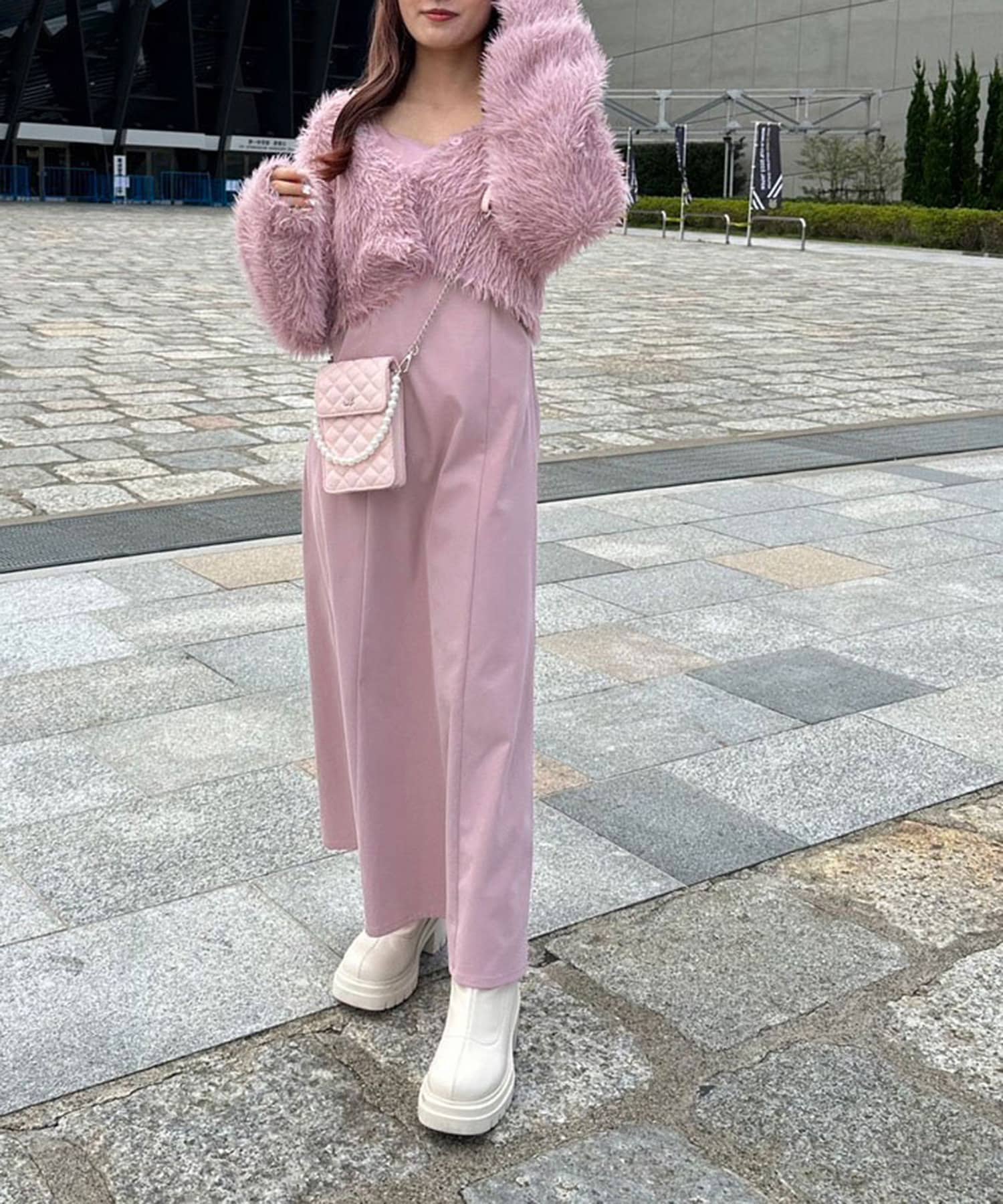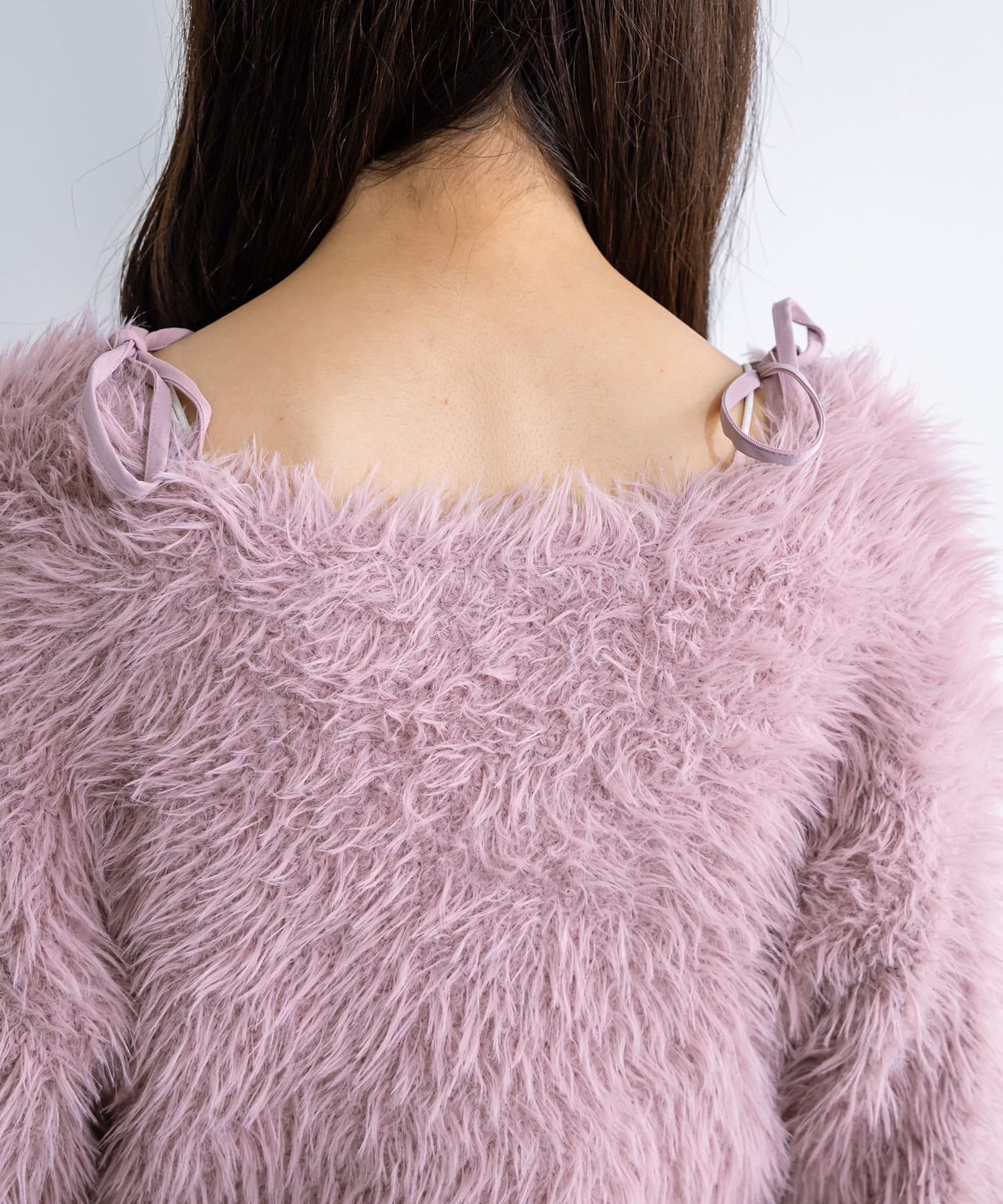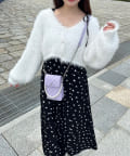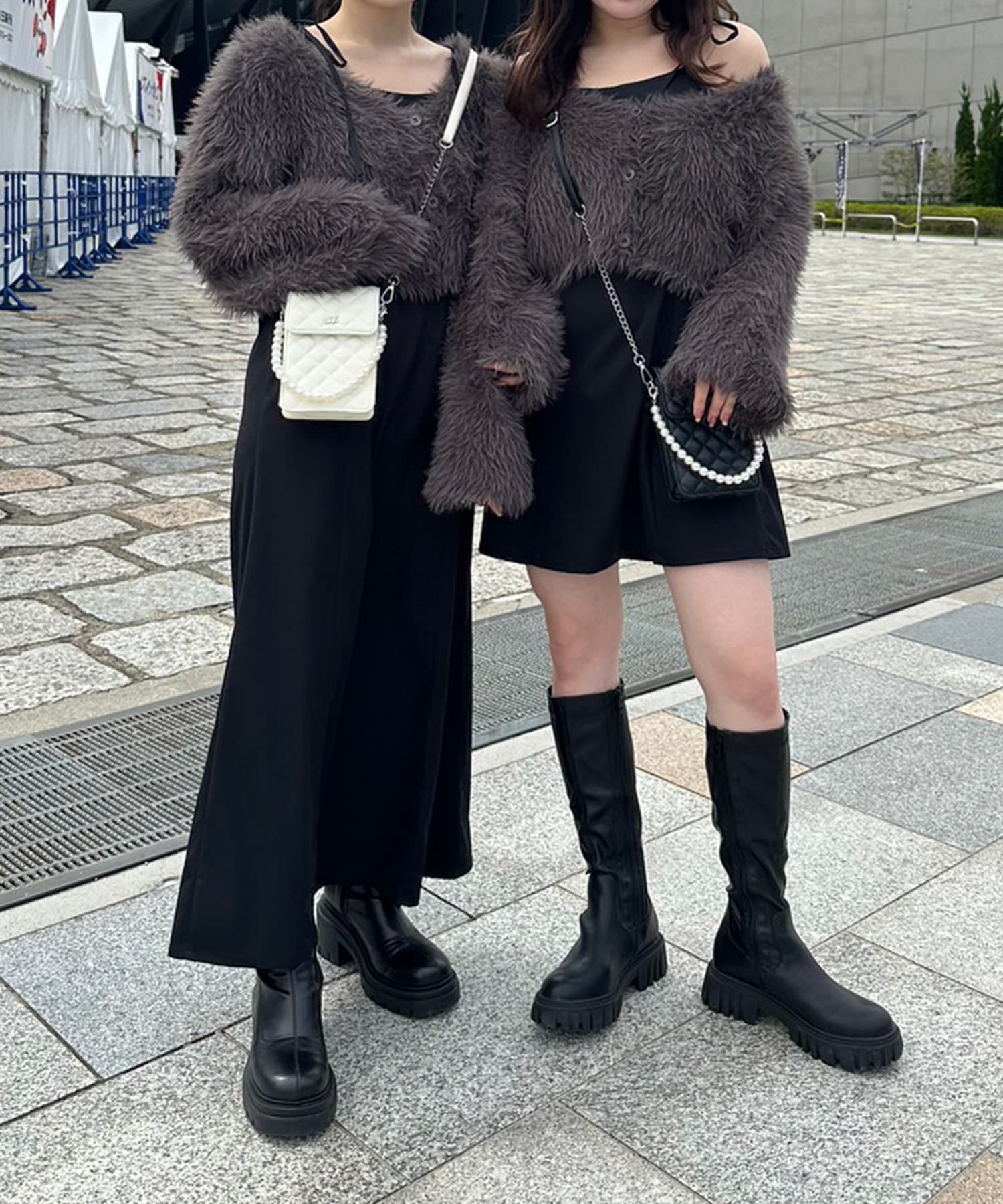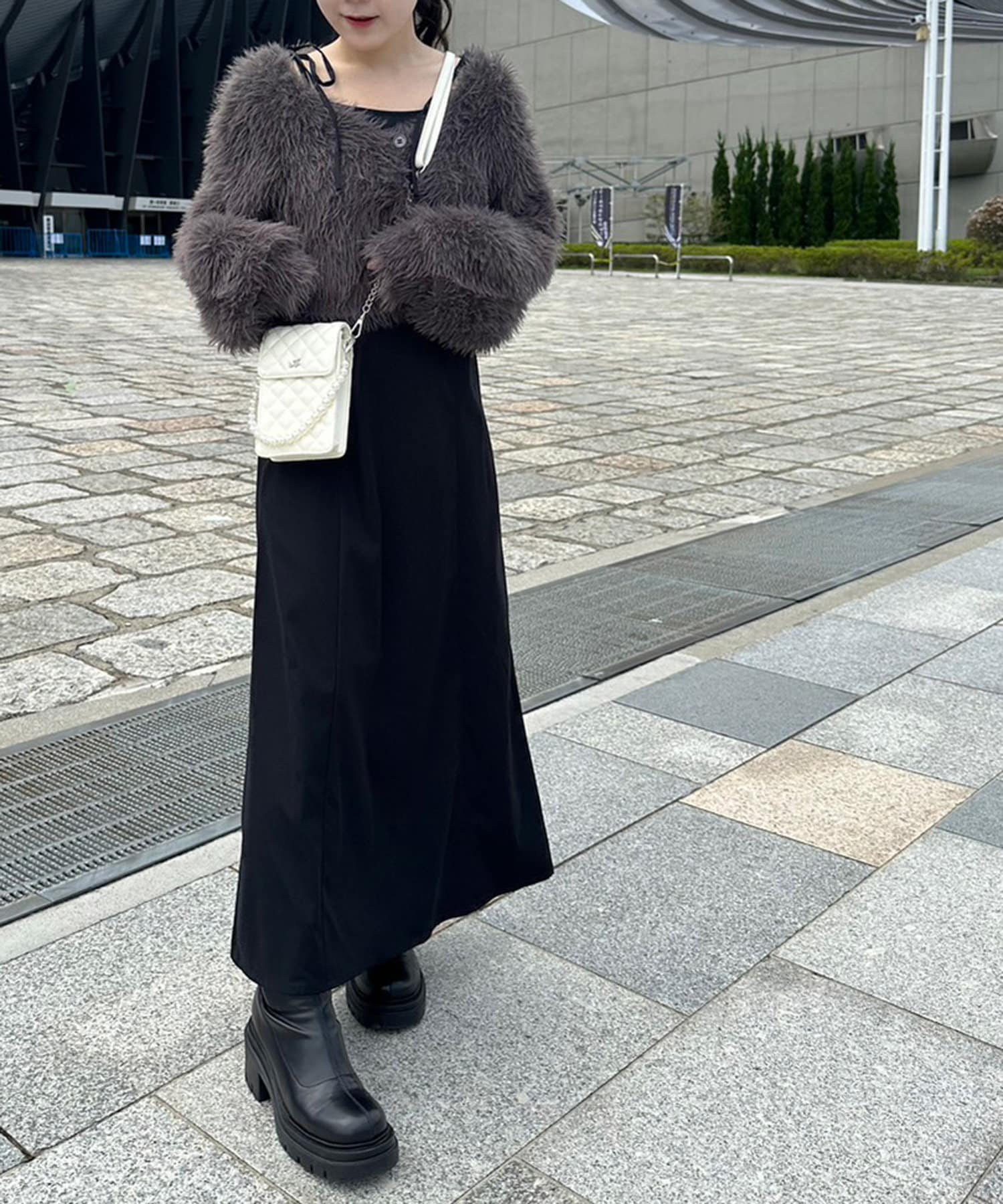 ・カーディガンはフェザーのようなふわふわの肌触り。着るだけで華やな印象に。