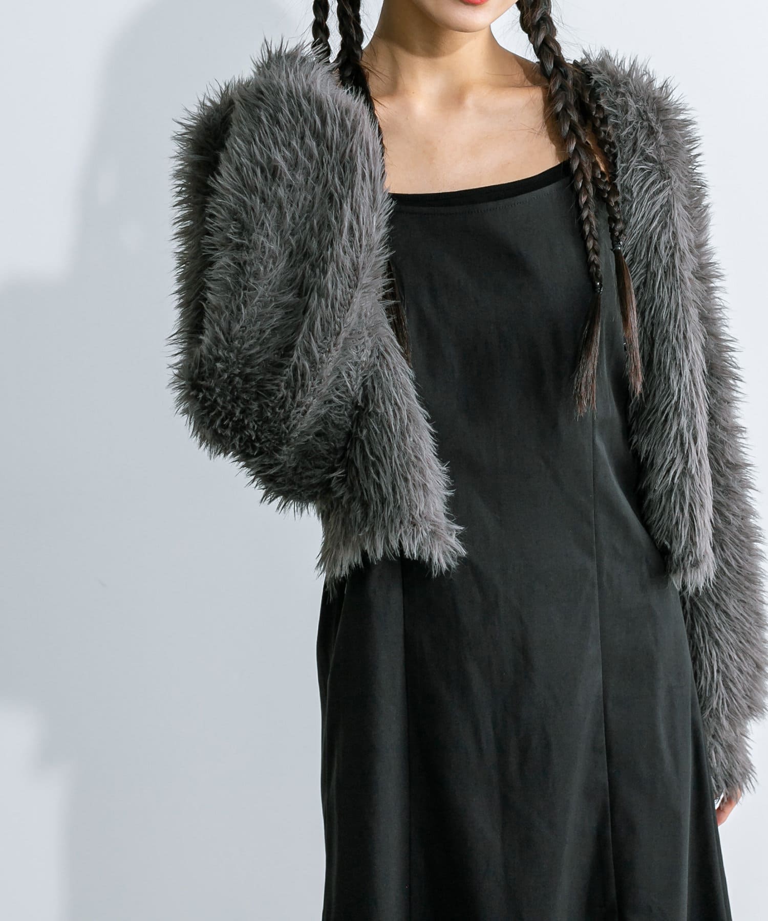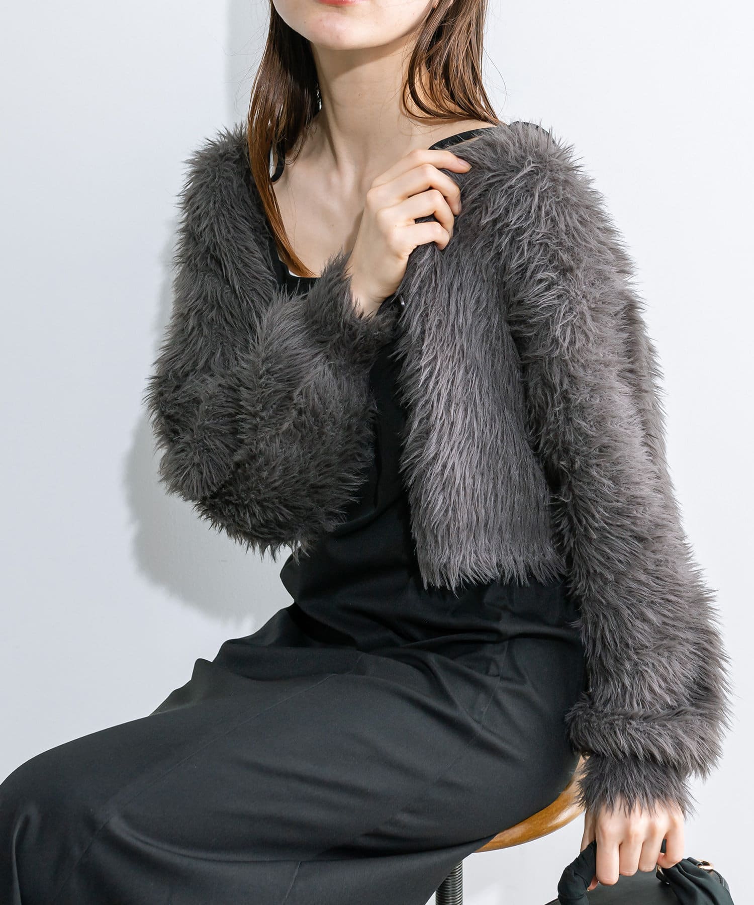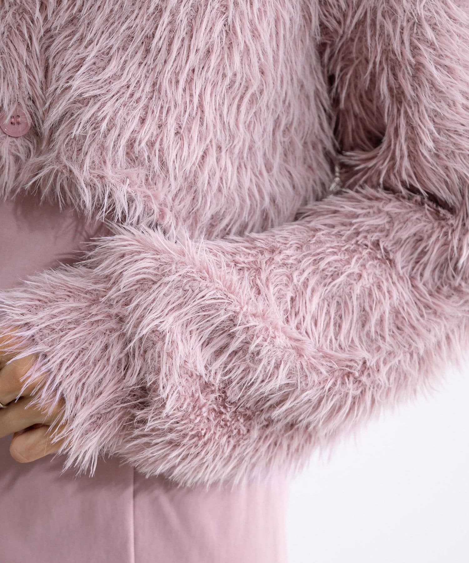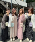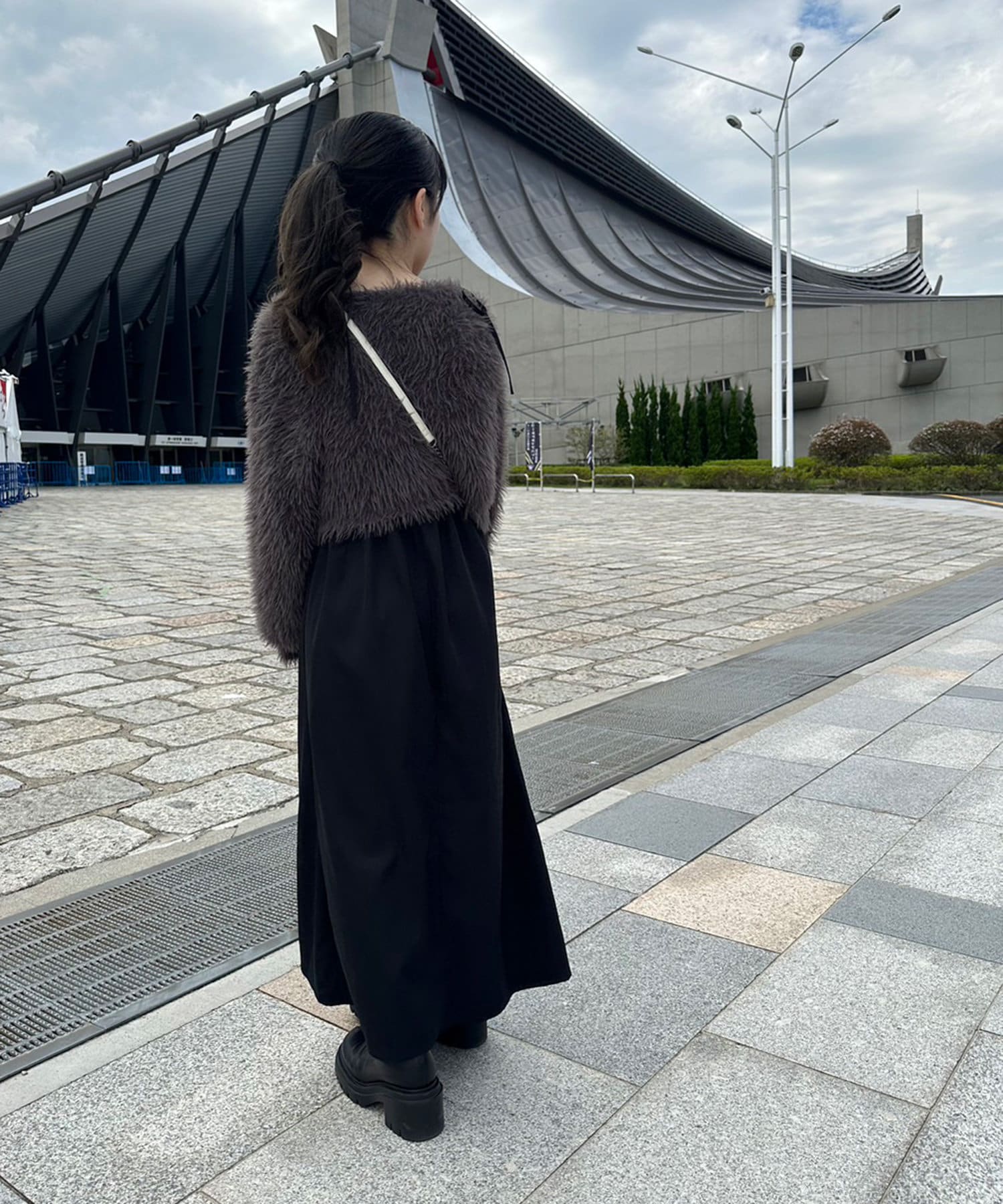 ・カーディガンはフェザーのようなふわふわの肌触り。着るだけで華やな印象に。
