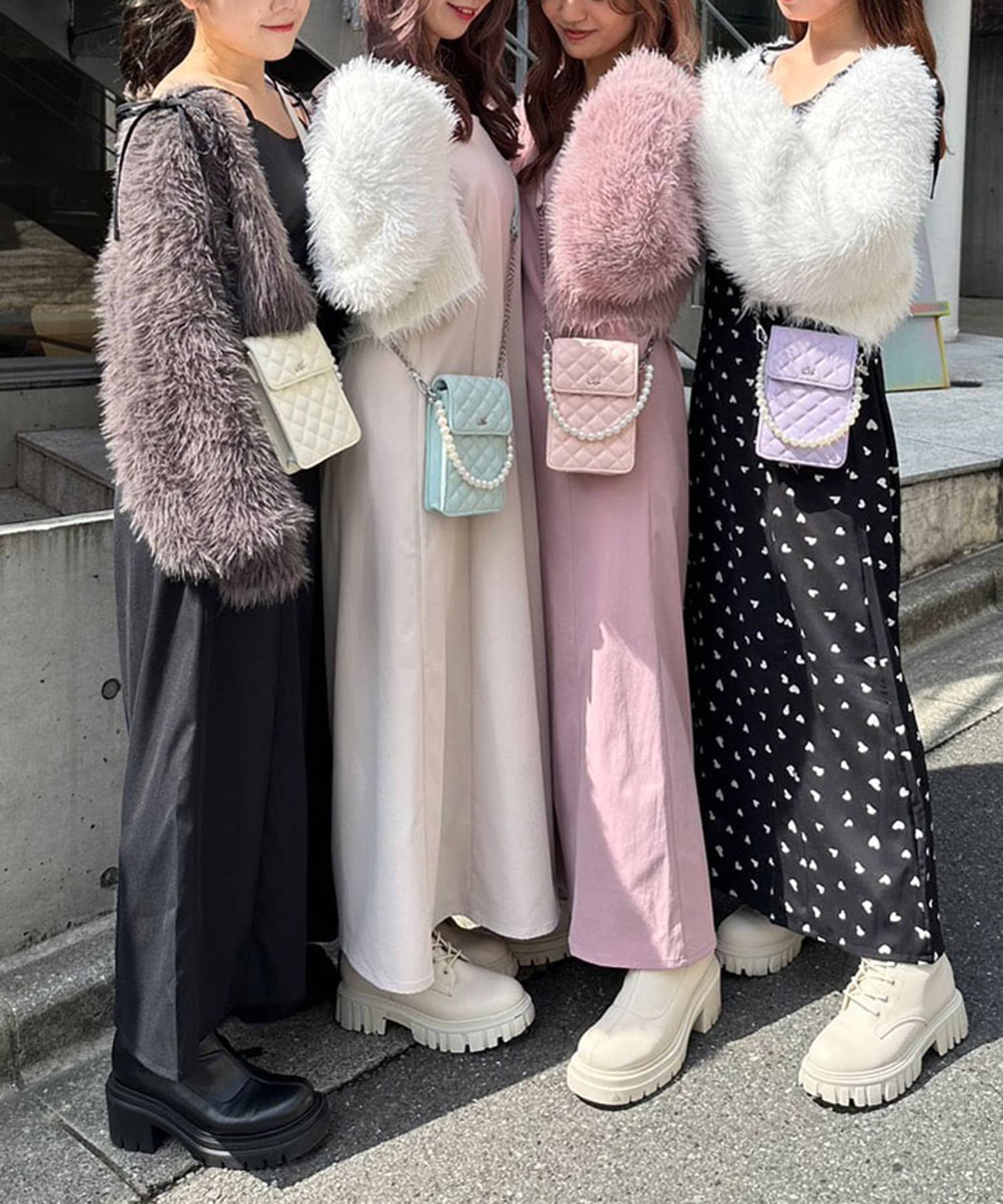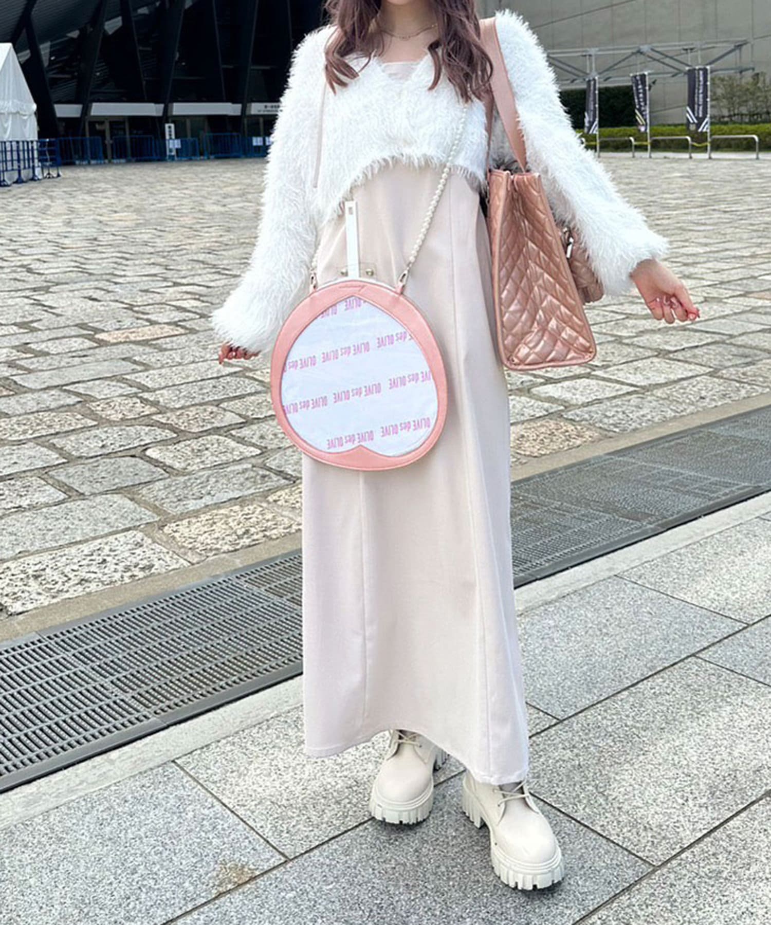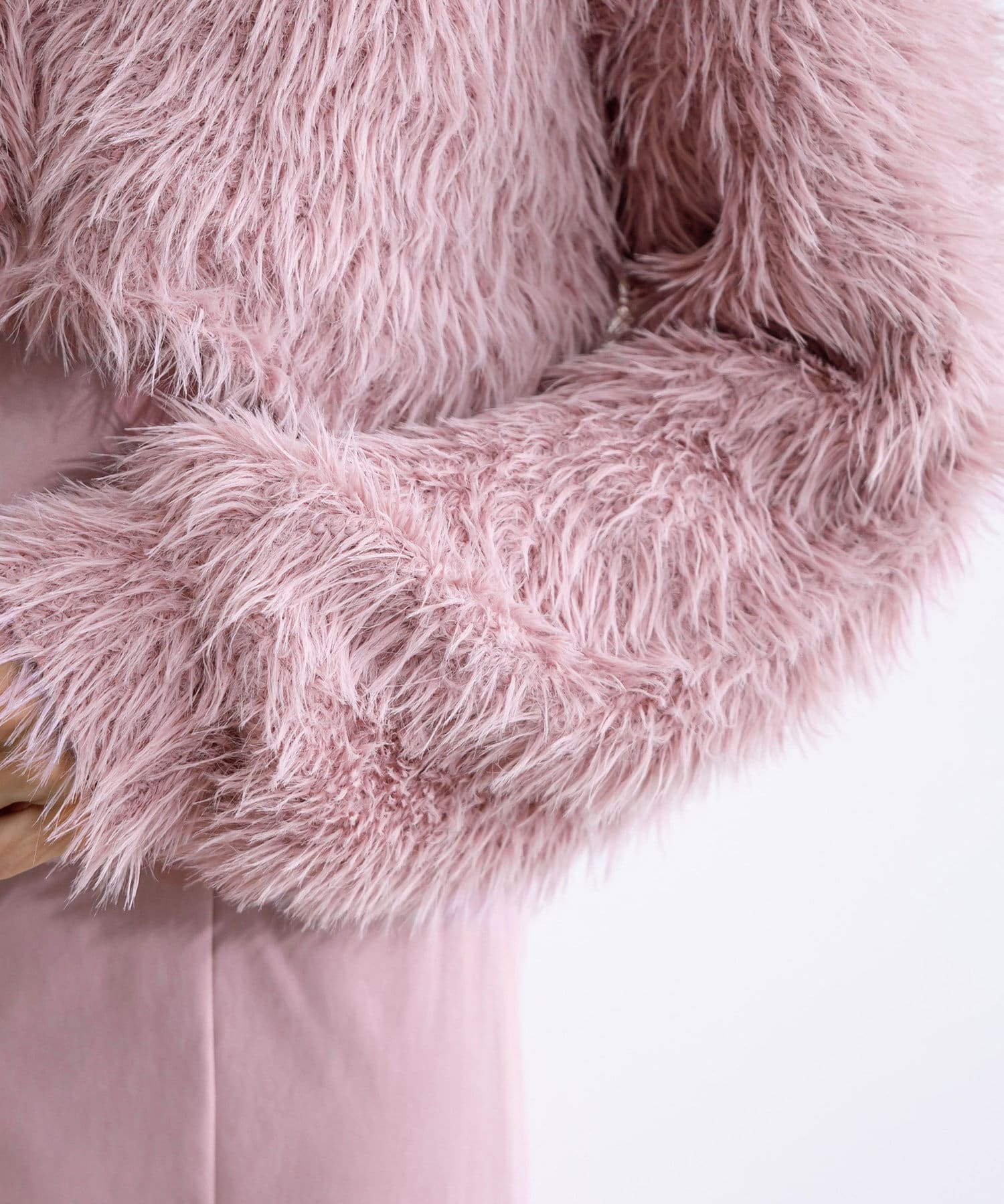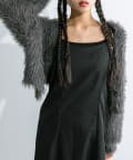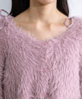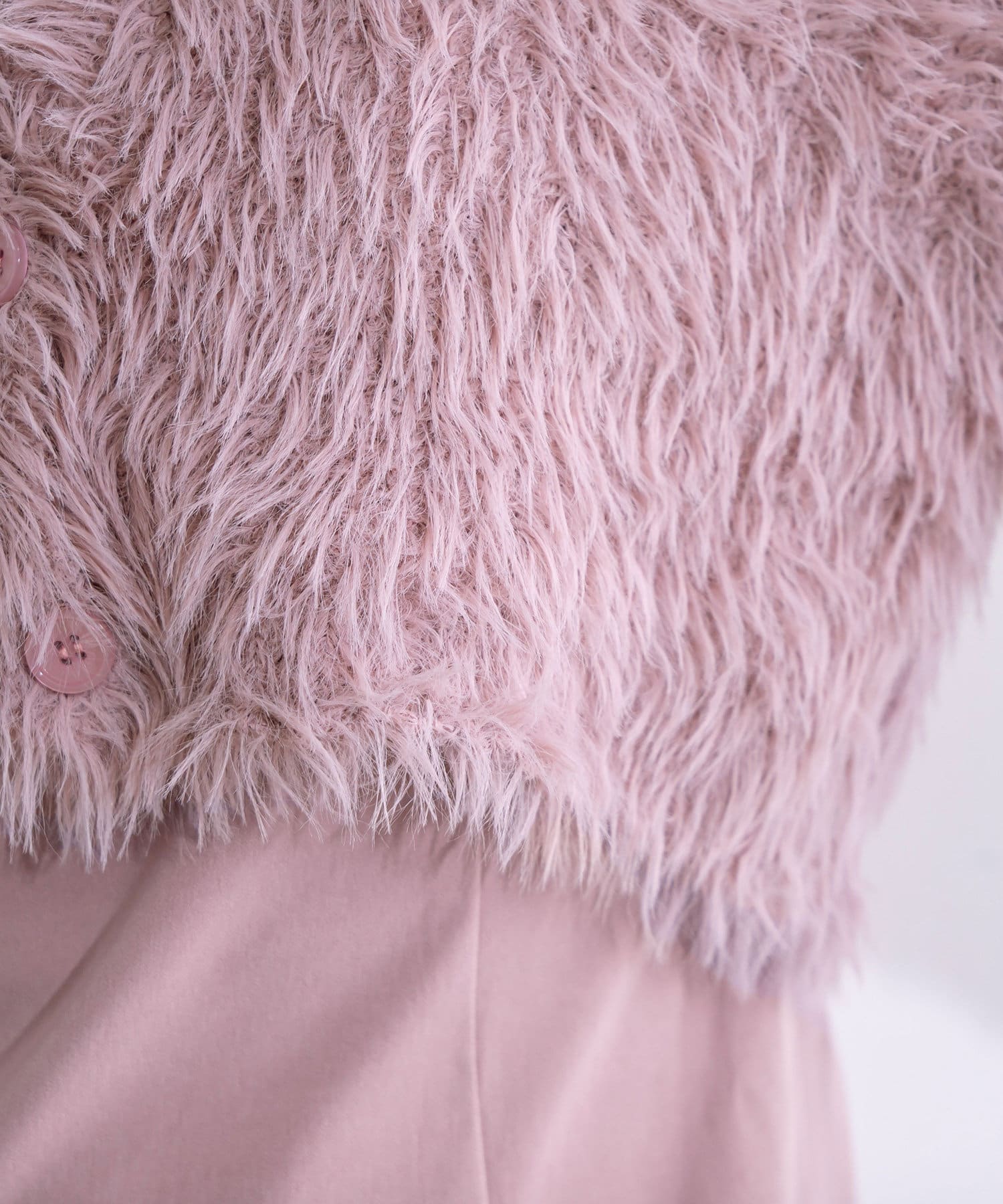 ・カーディガンはフェザーのようなふわふわの肌触り。着るだけで華やな印象に。