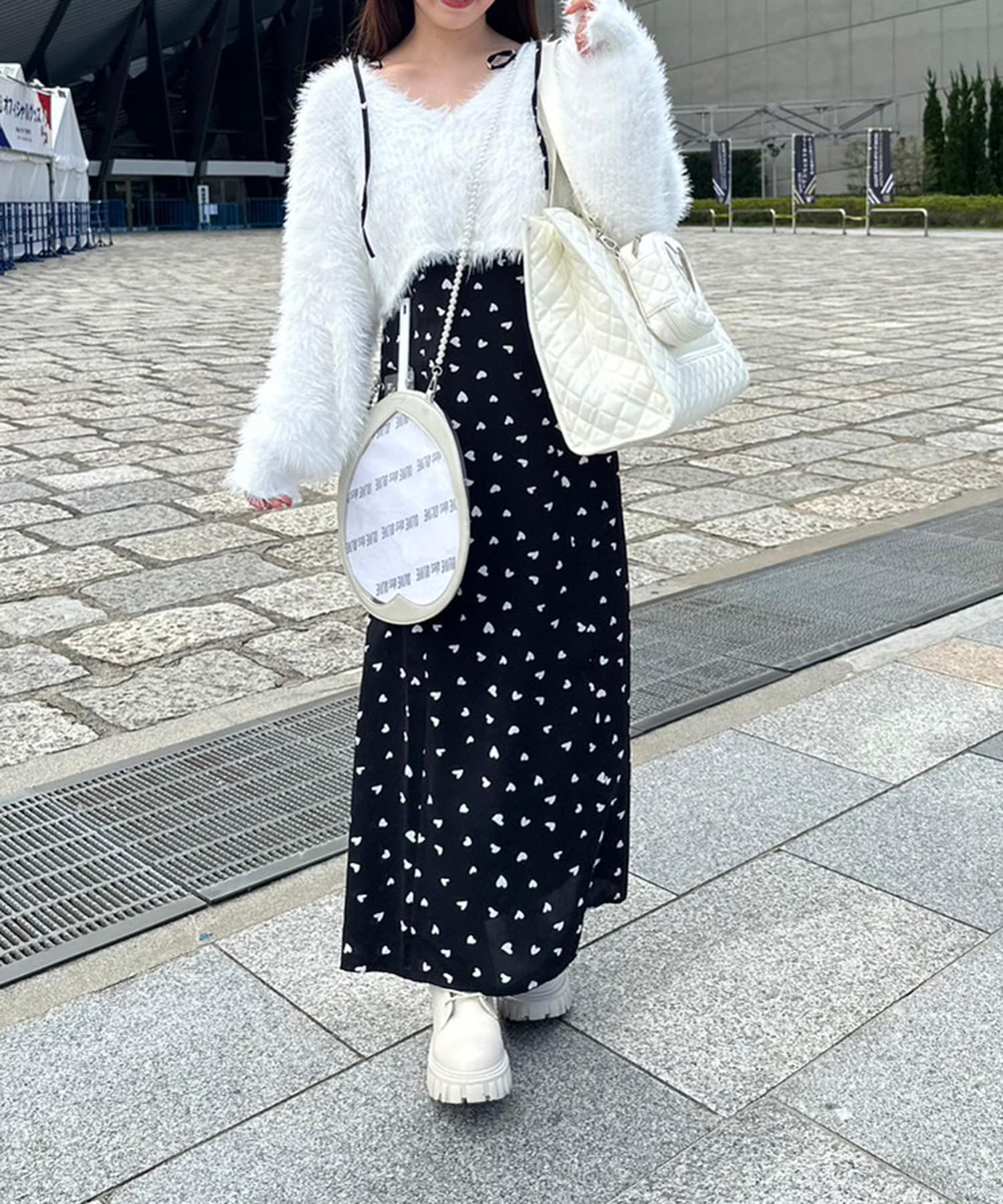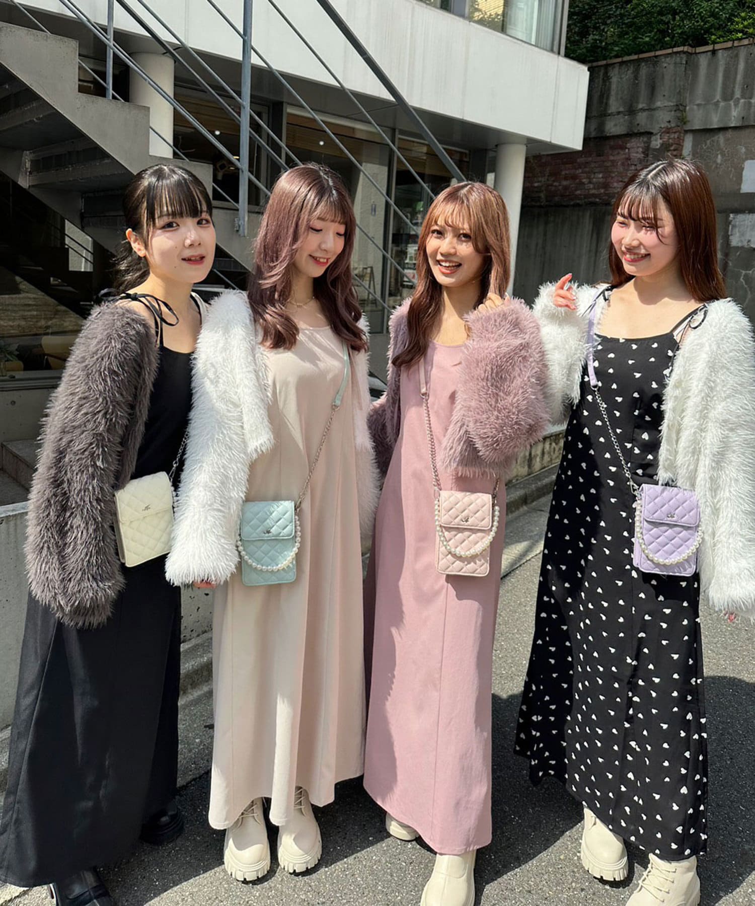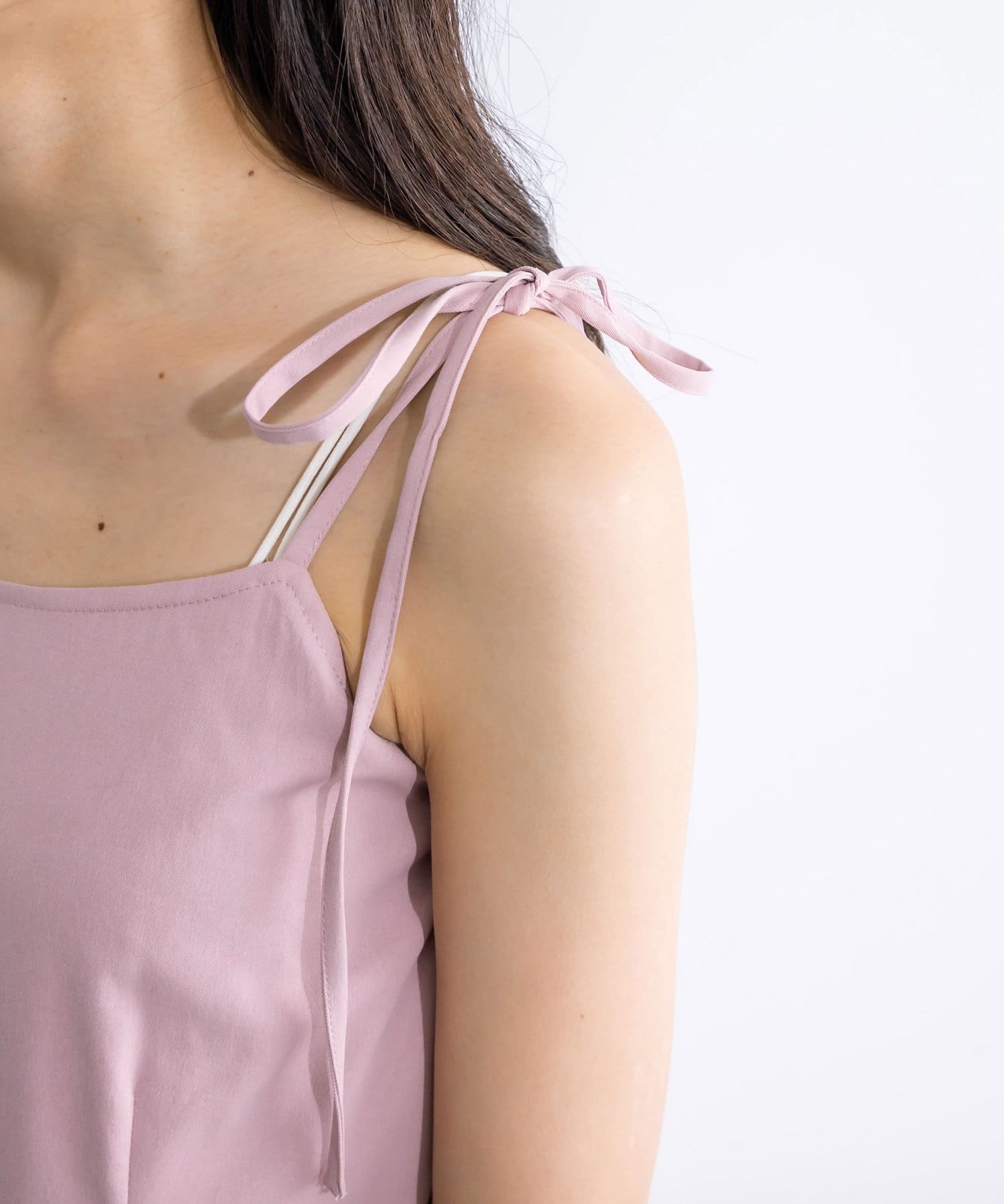 ・キャミワンピは肩のリボンがポイント。カーディガンからリボンを見せて着るのがおすすめです。