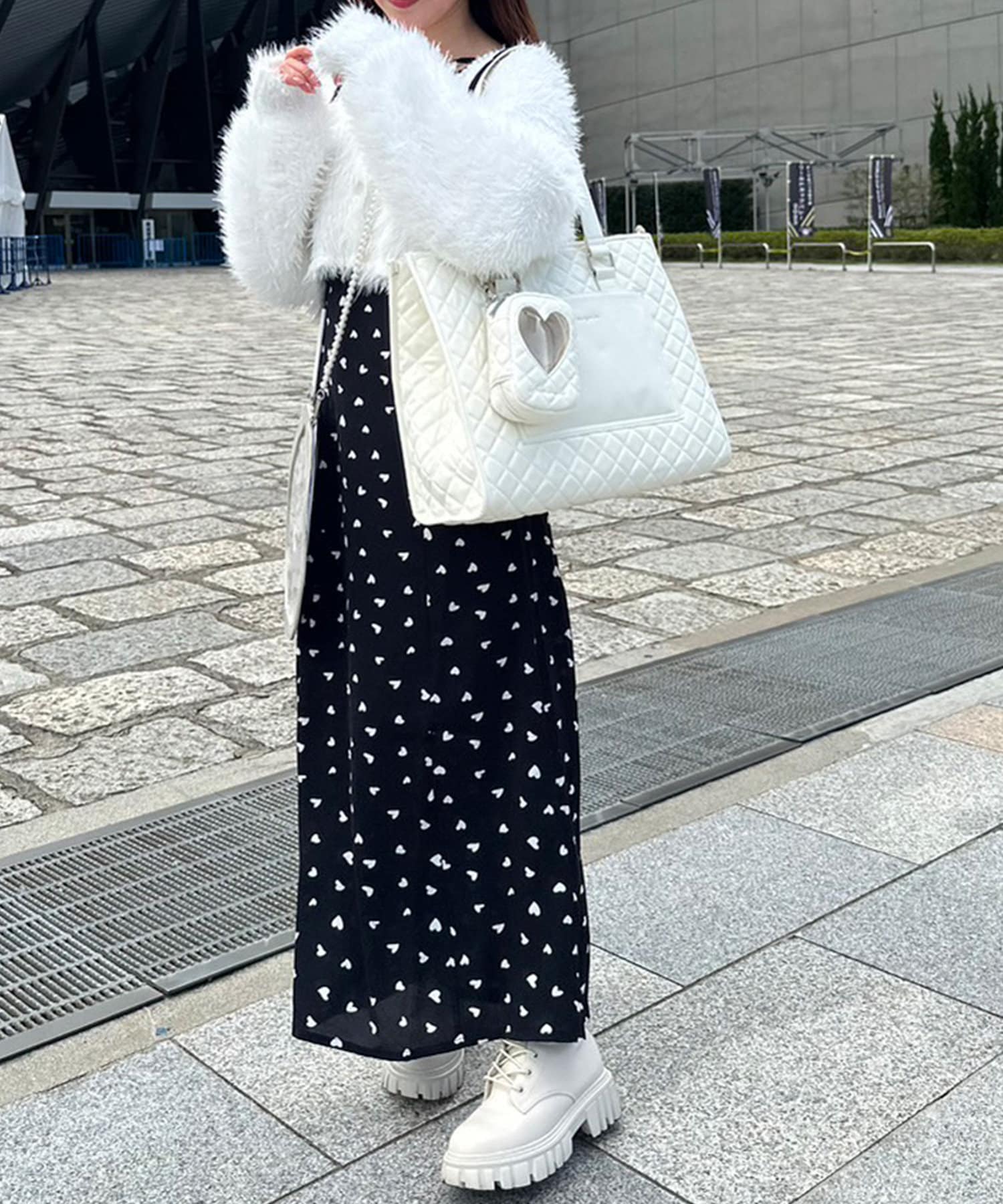 ・オフホワイト/ピンク/チャコール/ブラック(ハート柄)の4色展開です。