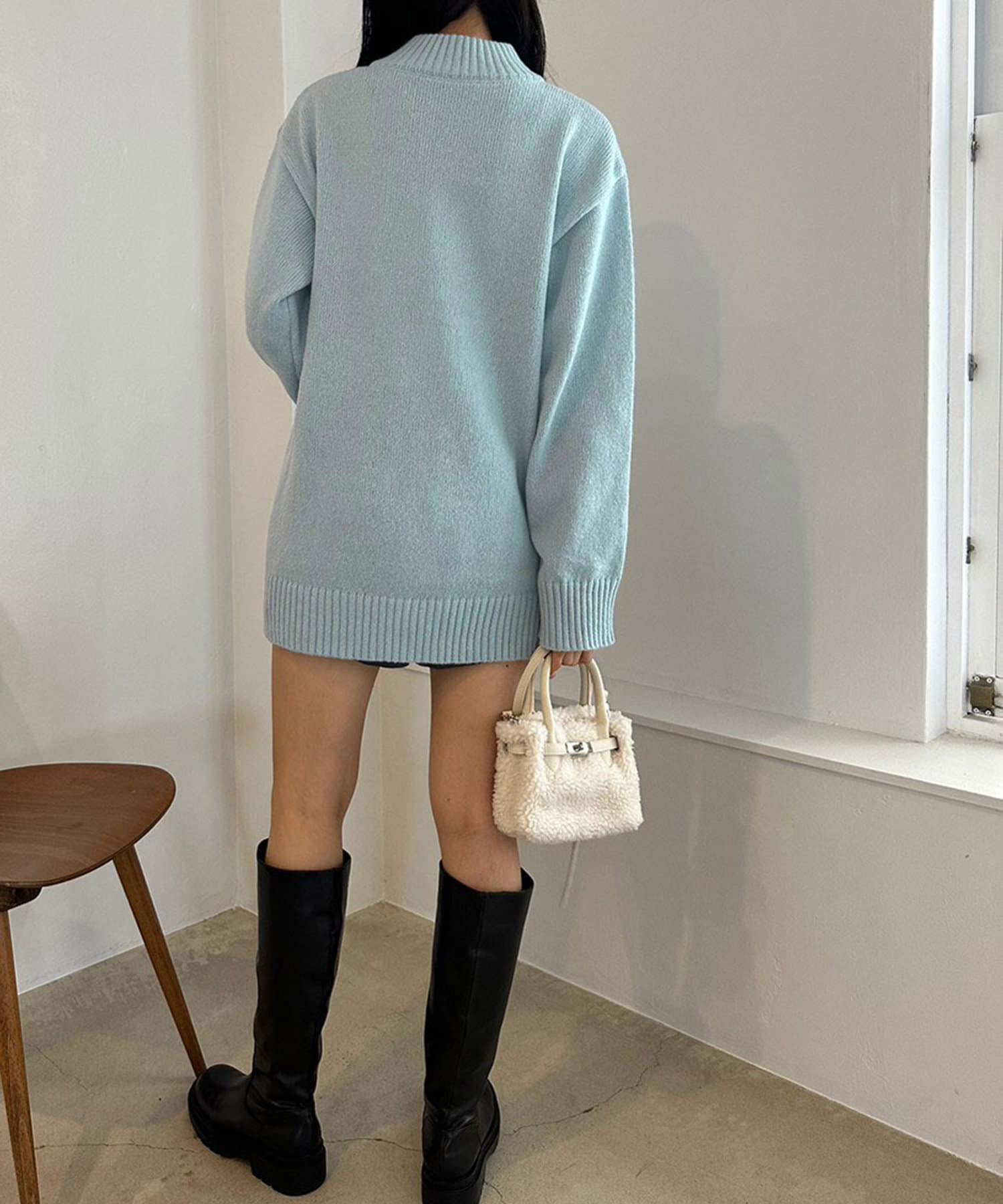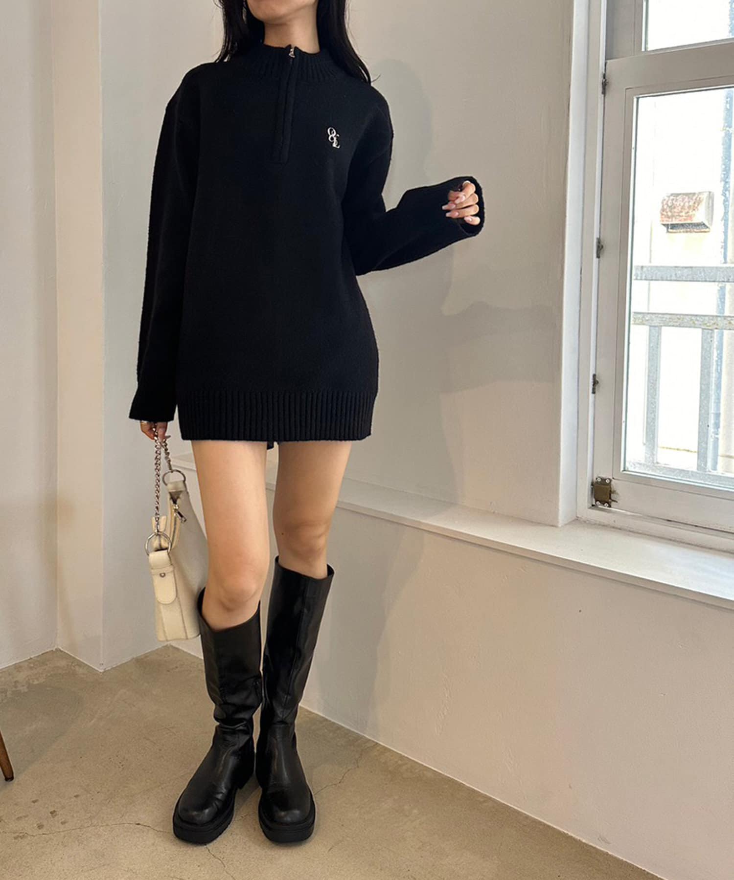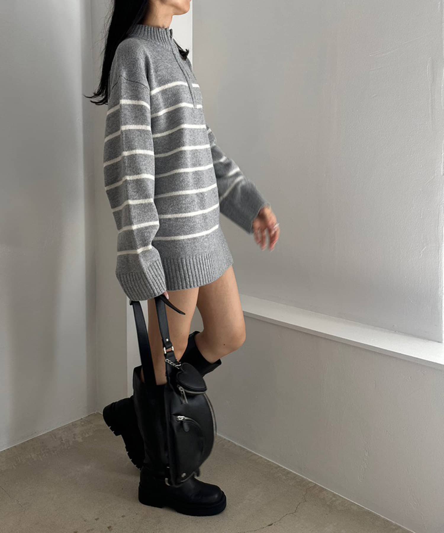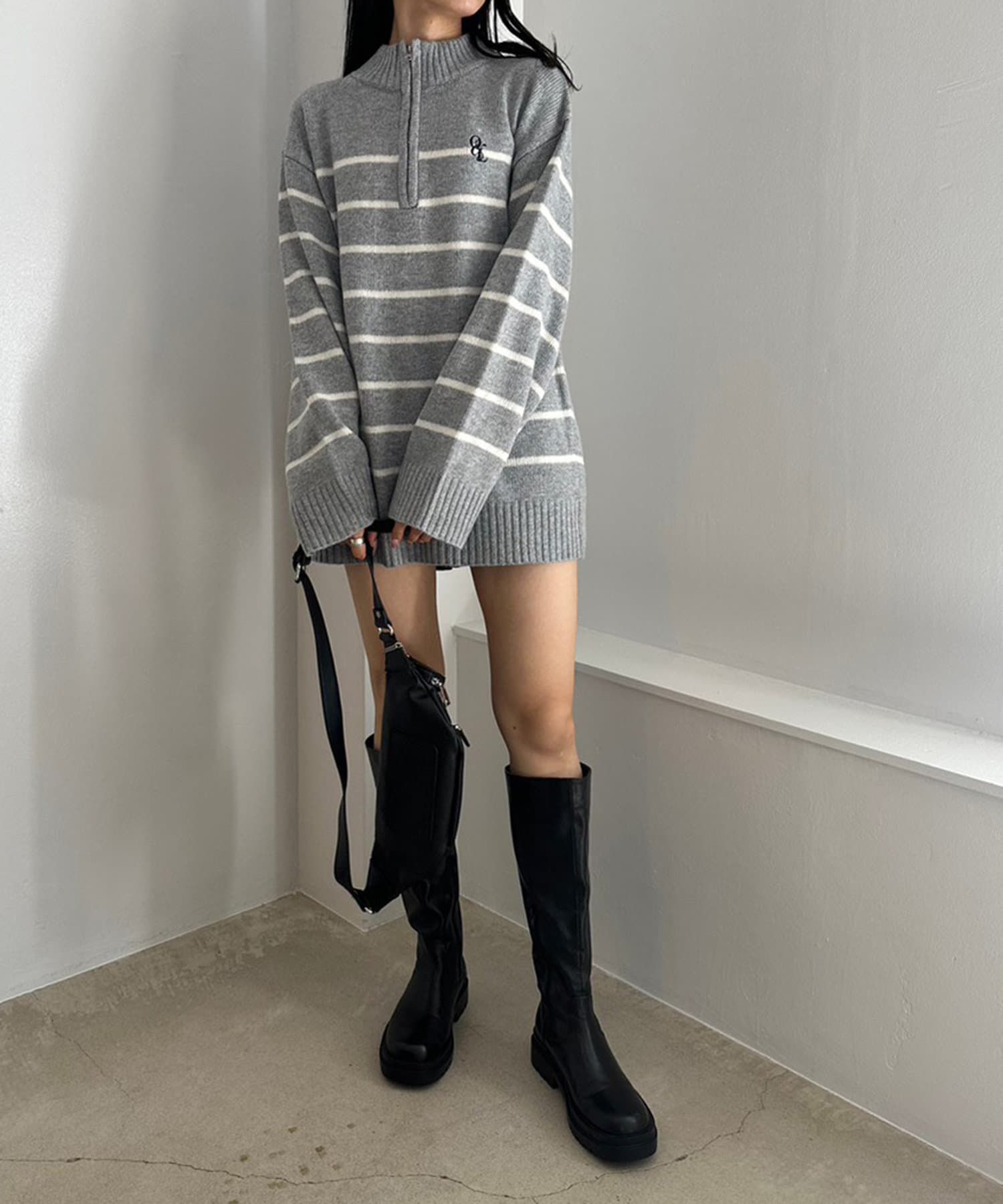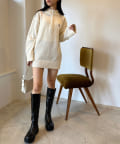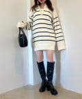 ・ミニボトムを合わせてワンピ風に1枚で着るのがおすすめ。