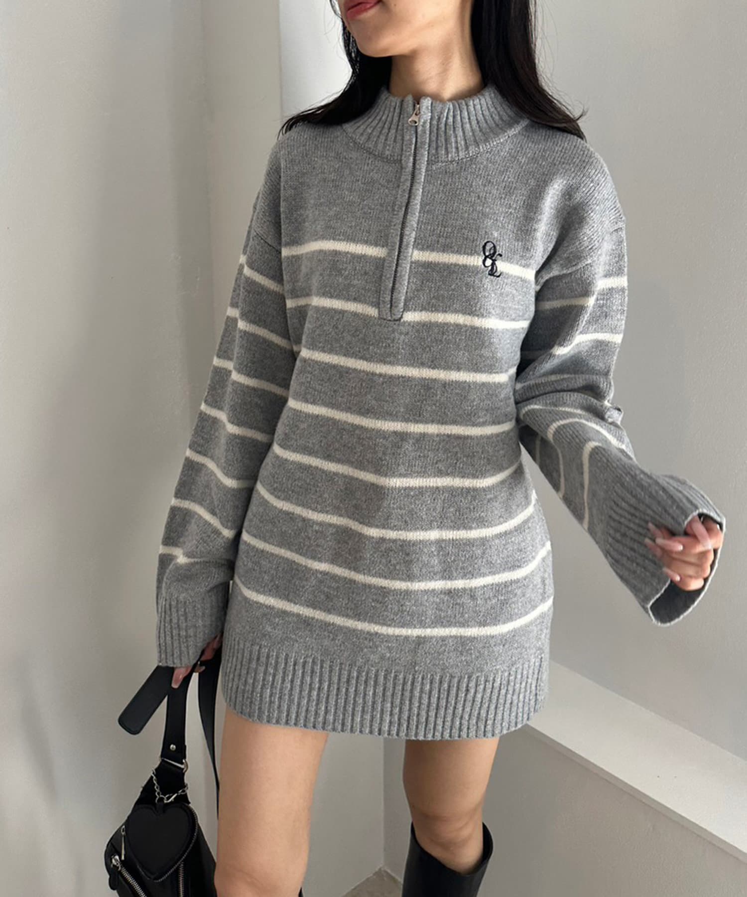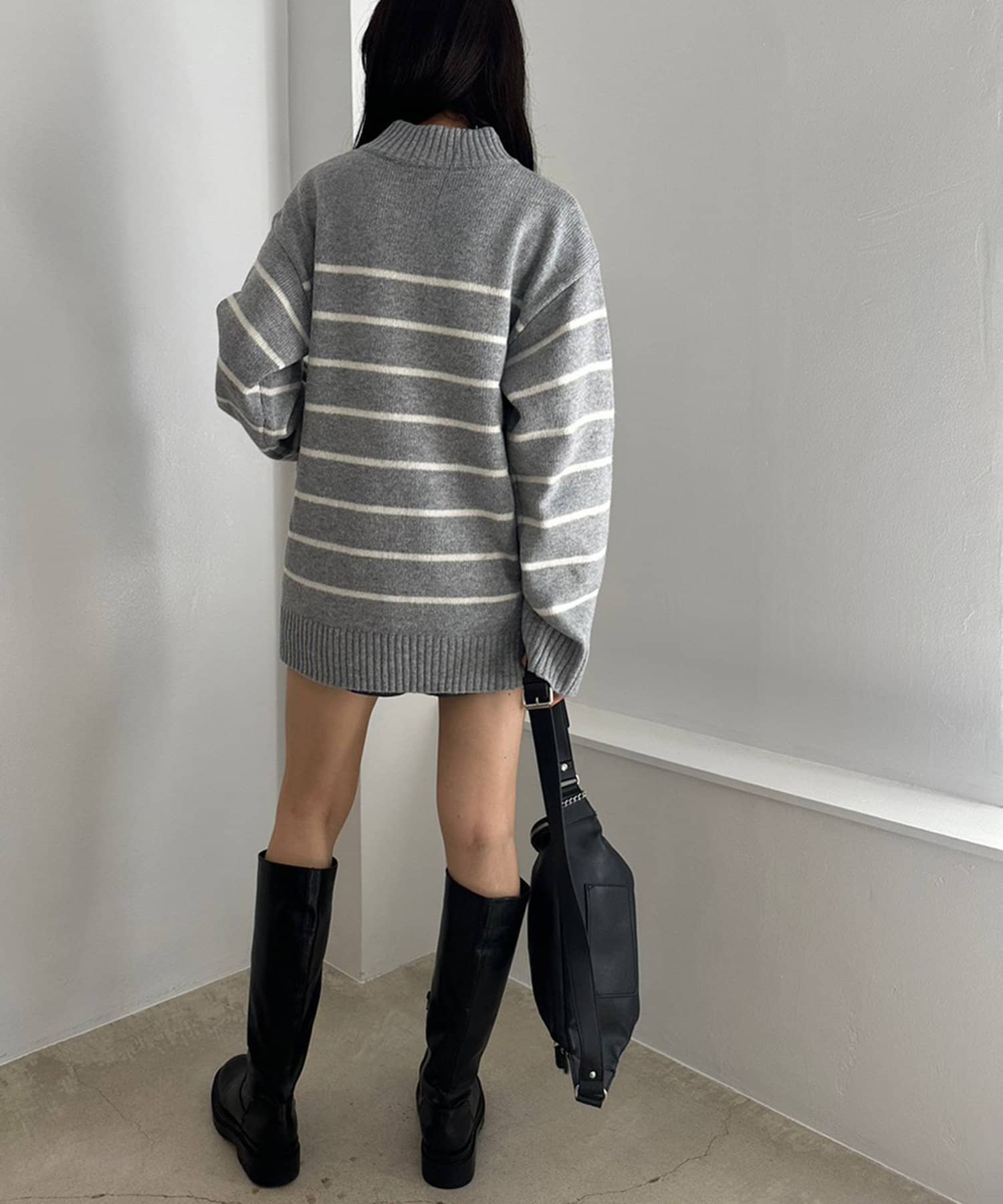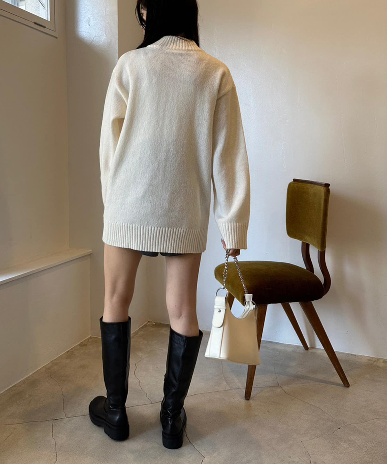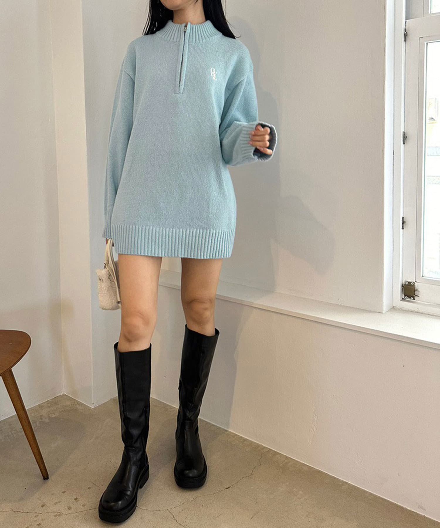 ・ミニボトムを合わせてワンピ風に1枚で着るのがおすすめ。