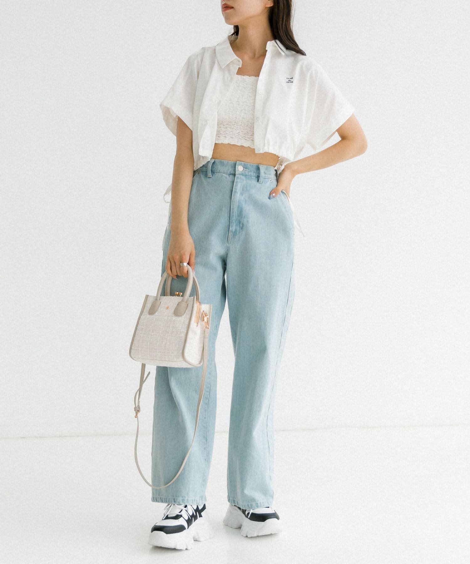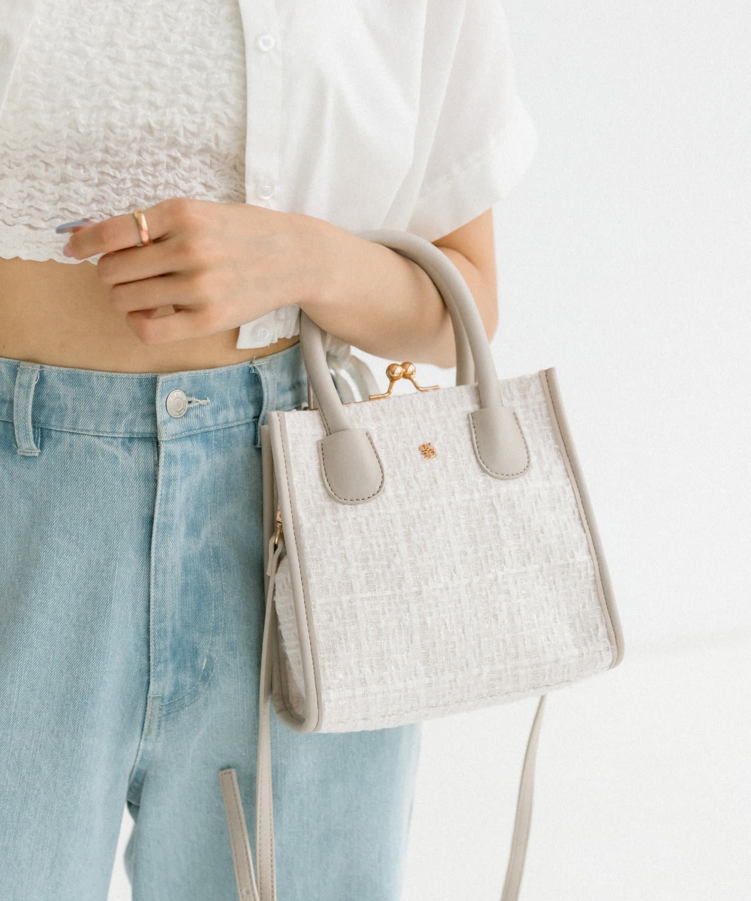 ・ツイード生地と、スムース合皮素材で高見えデザイン。