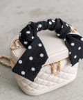 ・ハンドルにスカーフをあしらい華やかな印象のバニティーバッグ。