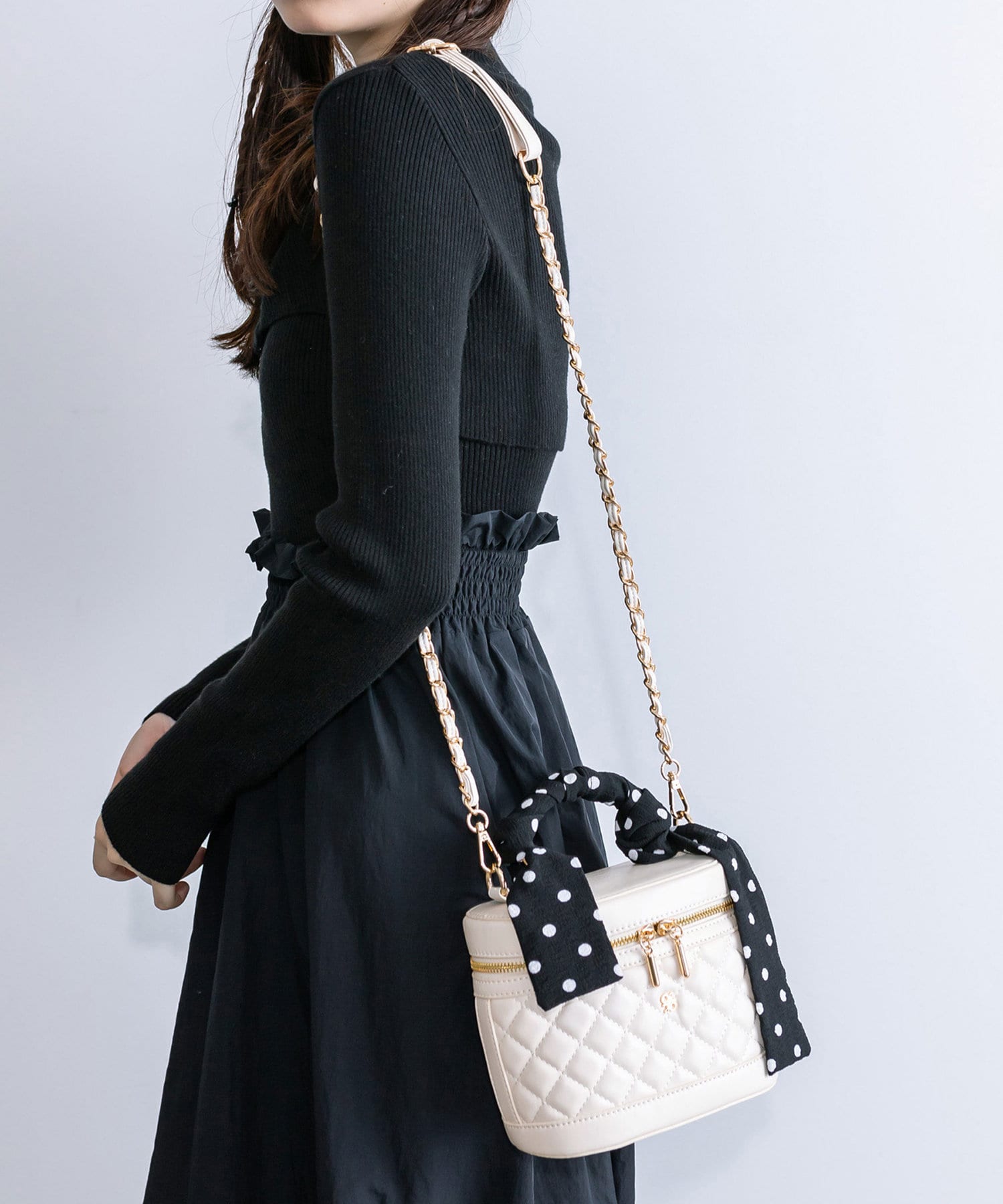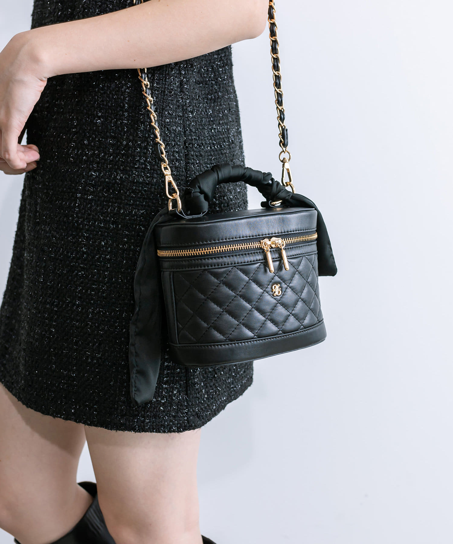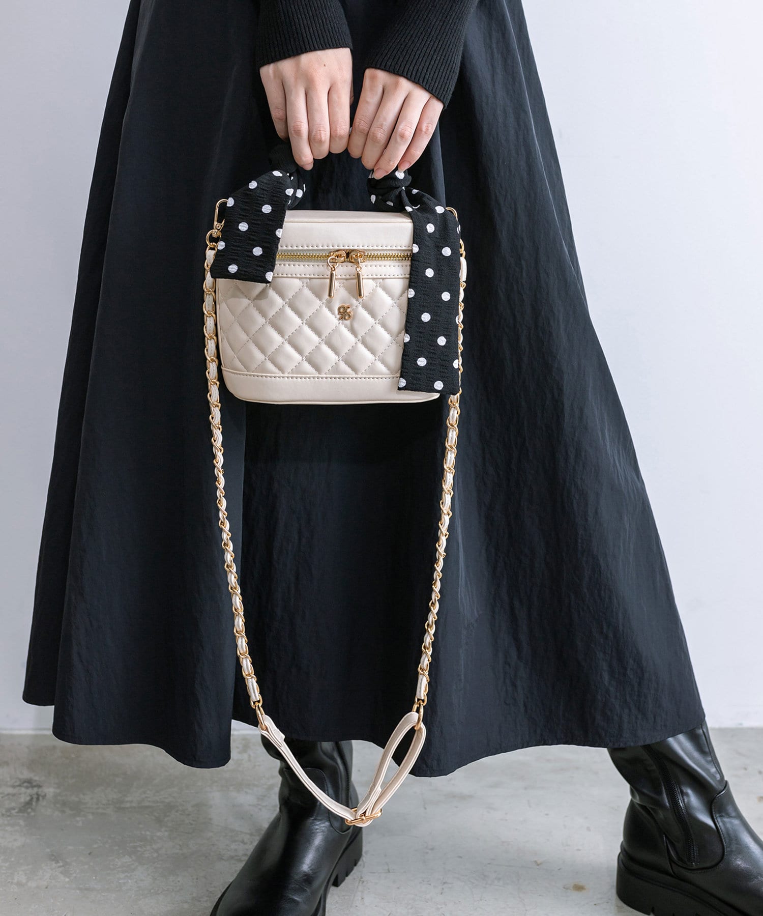 スカーフ付きキルティングバニティーバッグ