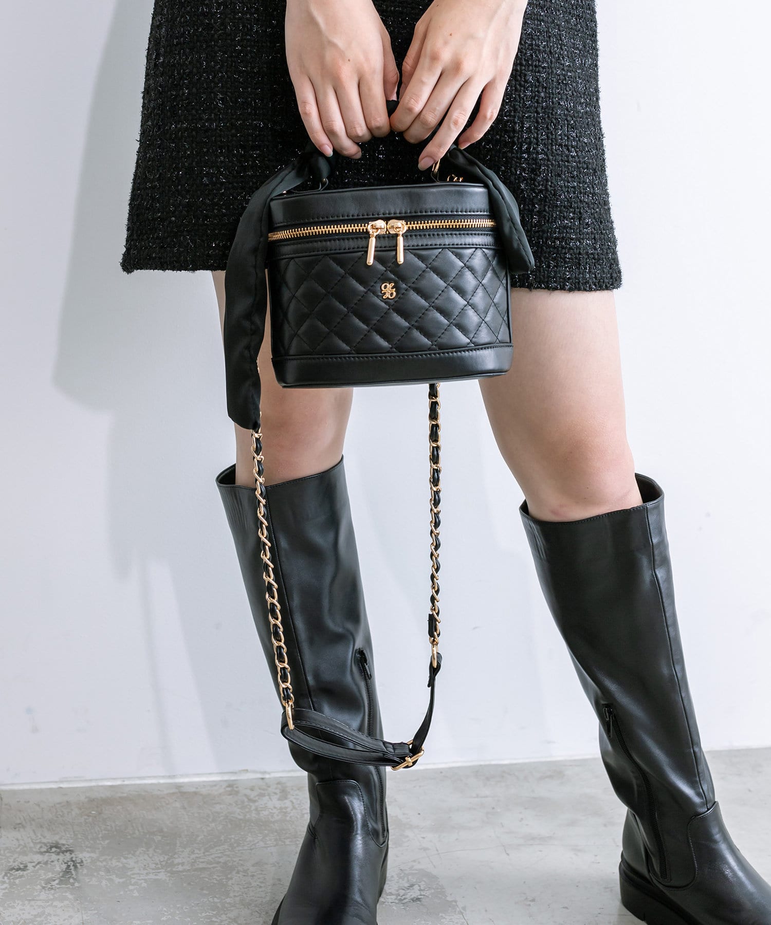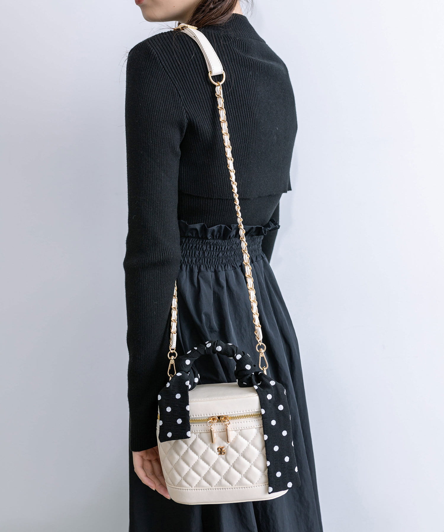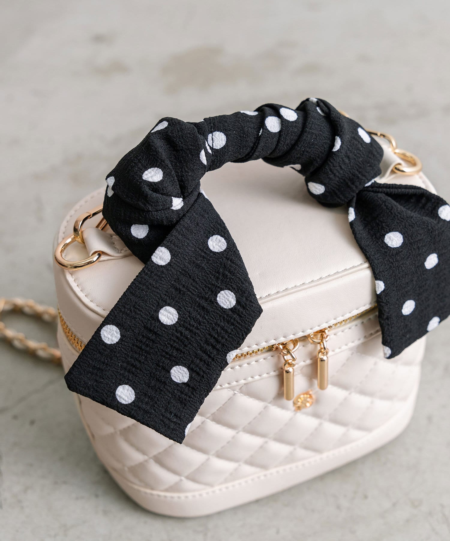 スカーフ付きキルティングバニティーバッグ