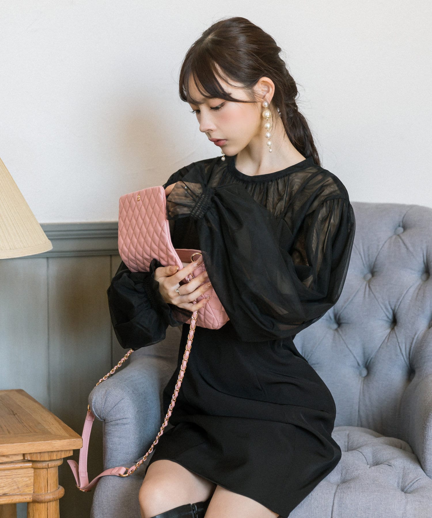 ・ゴールドのチェーンショルダーが大人っぽさをプラスしてくれます!