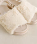 ・ふわふわのファーが足元に可愛らしさをプラスするサンダル。