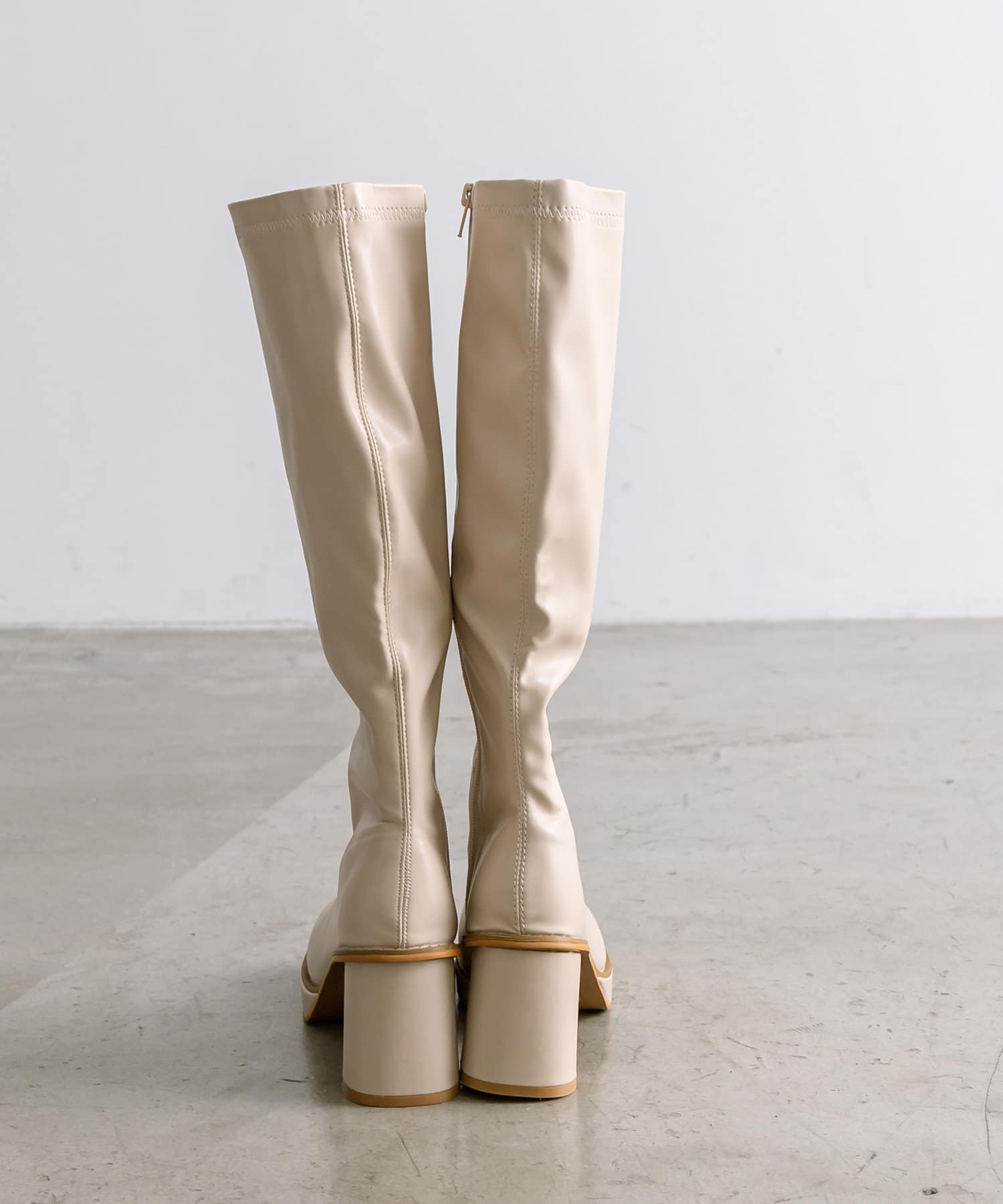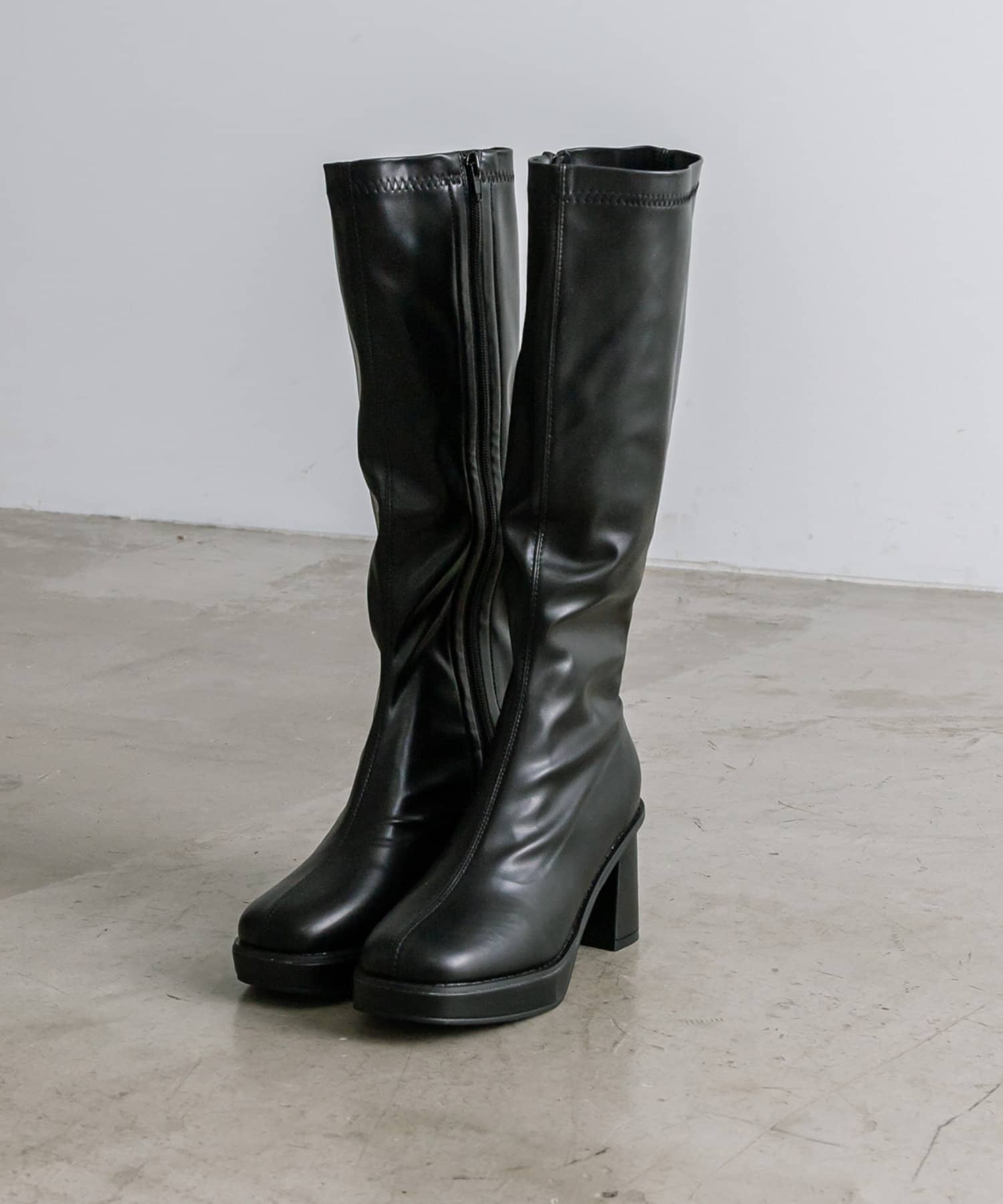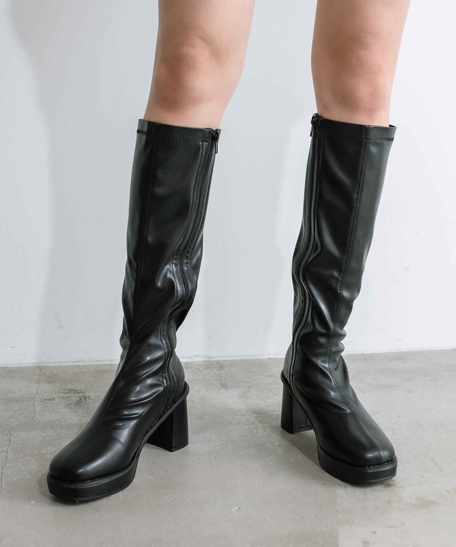 ・美脚見えを叶えるストレッチ性のあるロングブーツ。