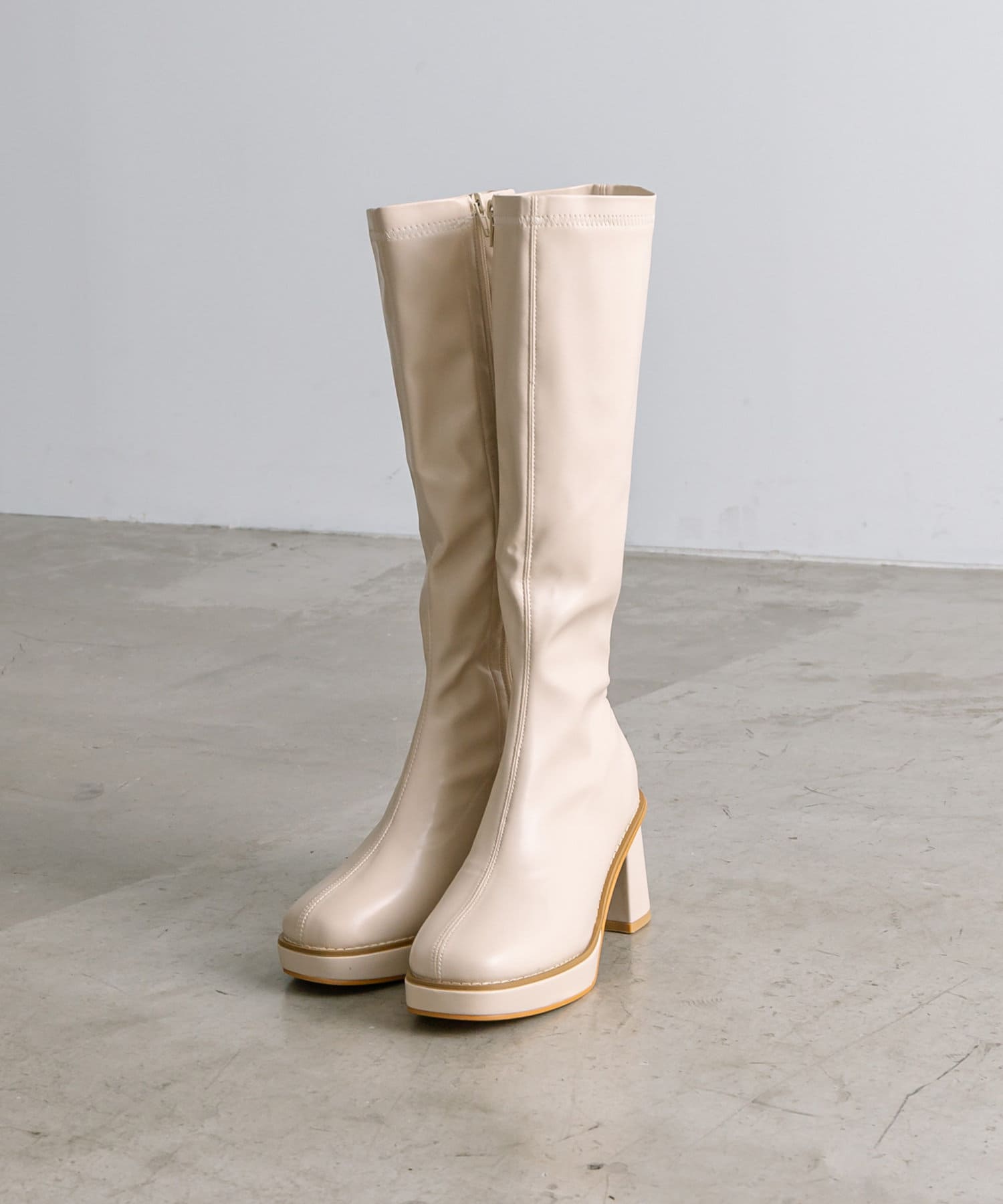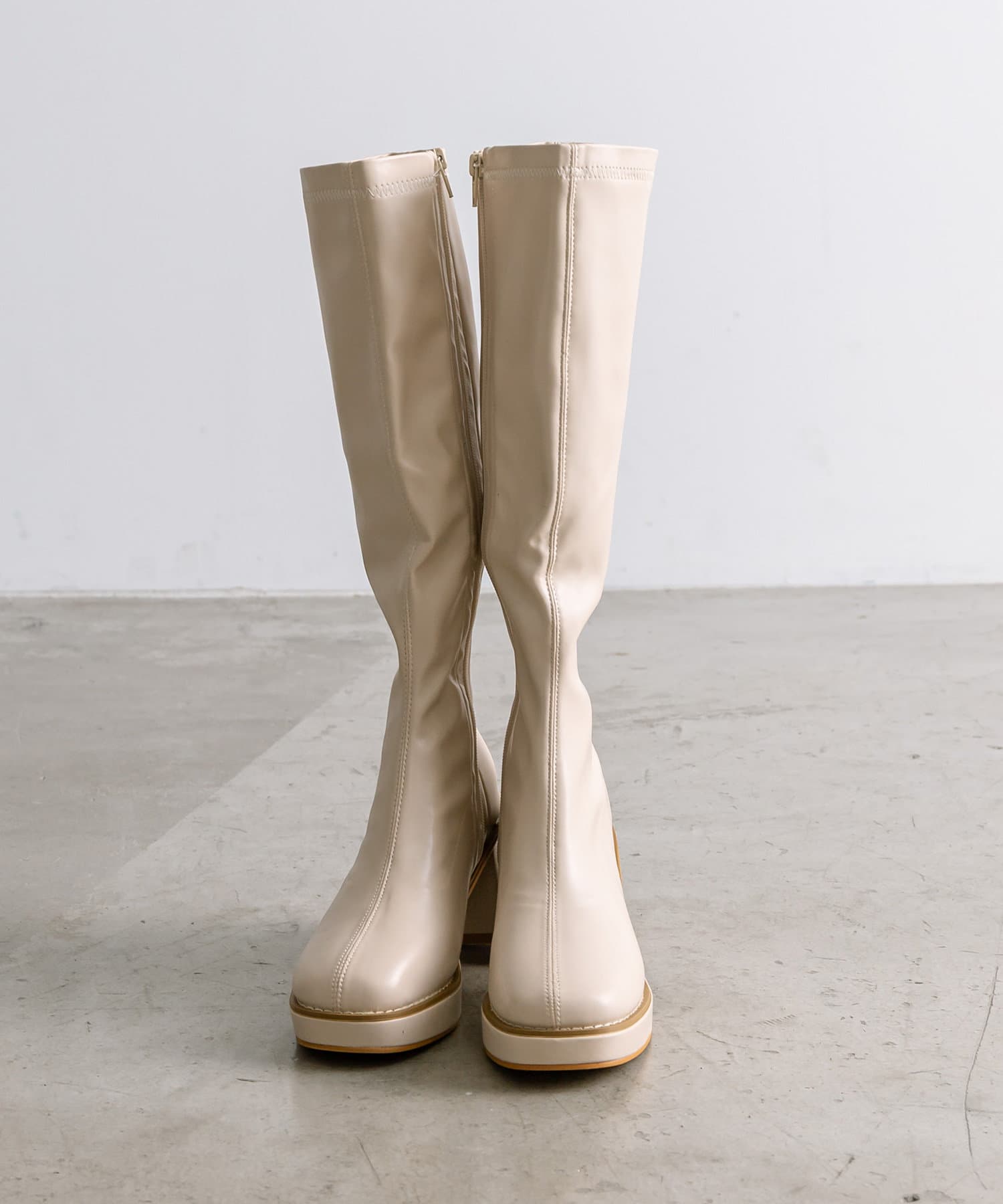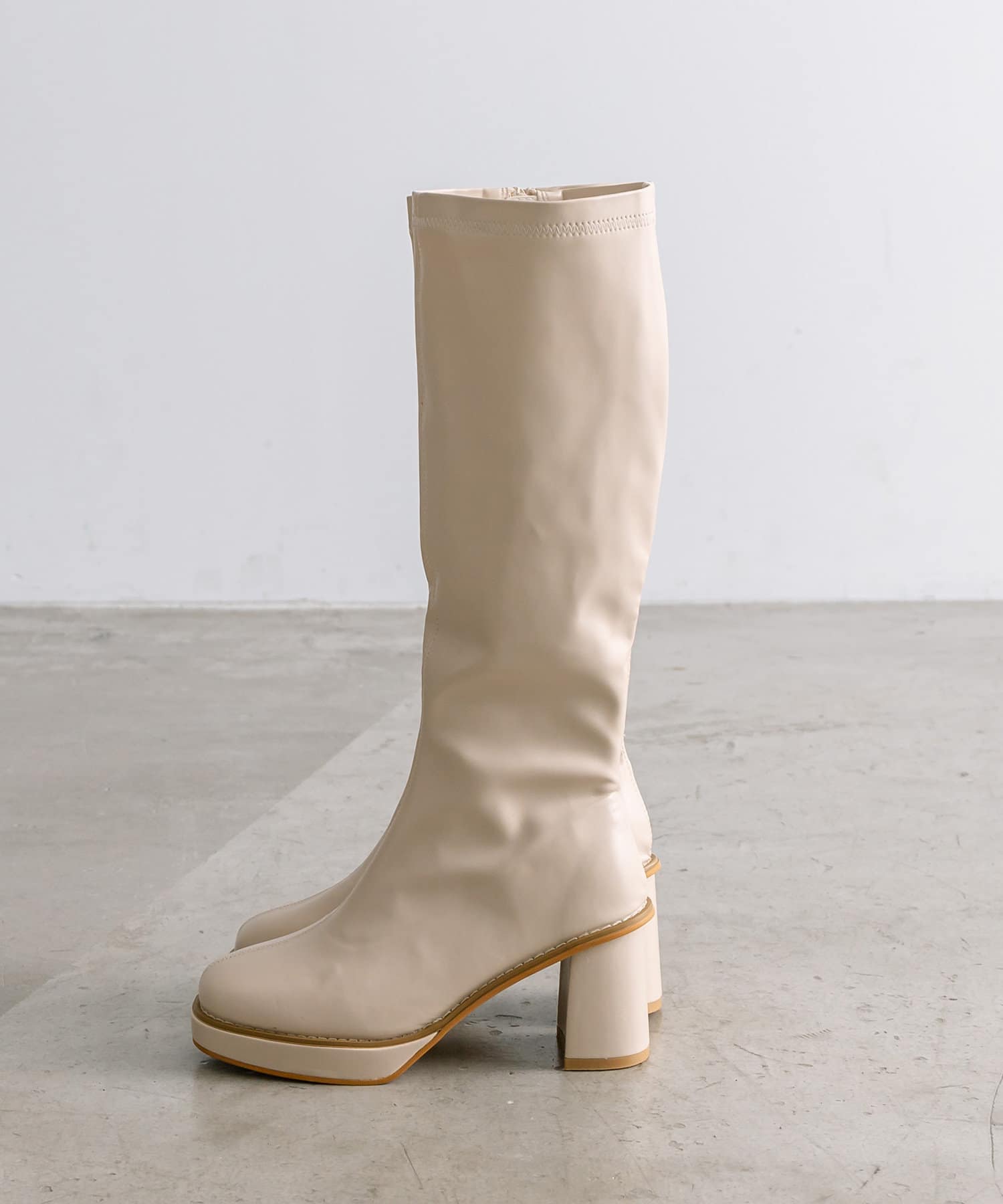 ・美脚見えを叶えるストレッチ性のあるロングブーツ。