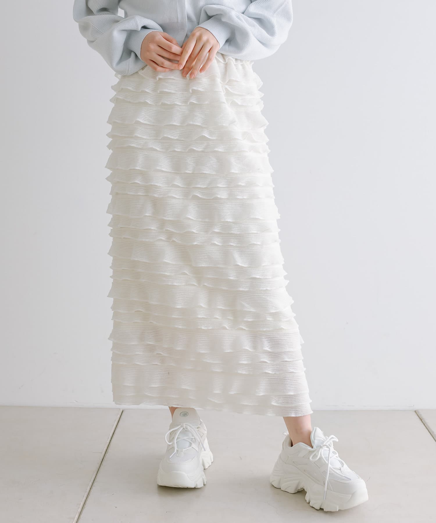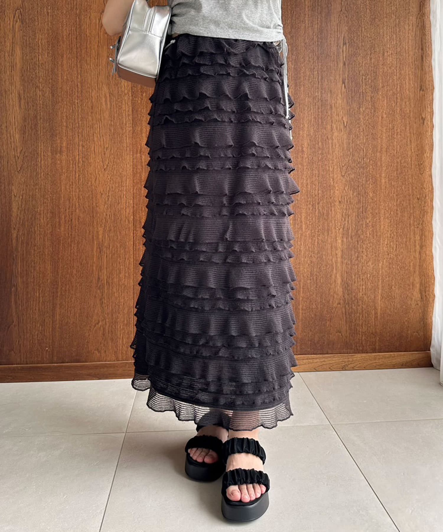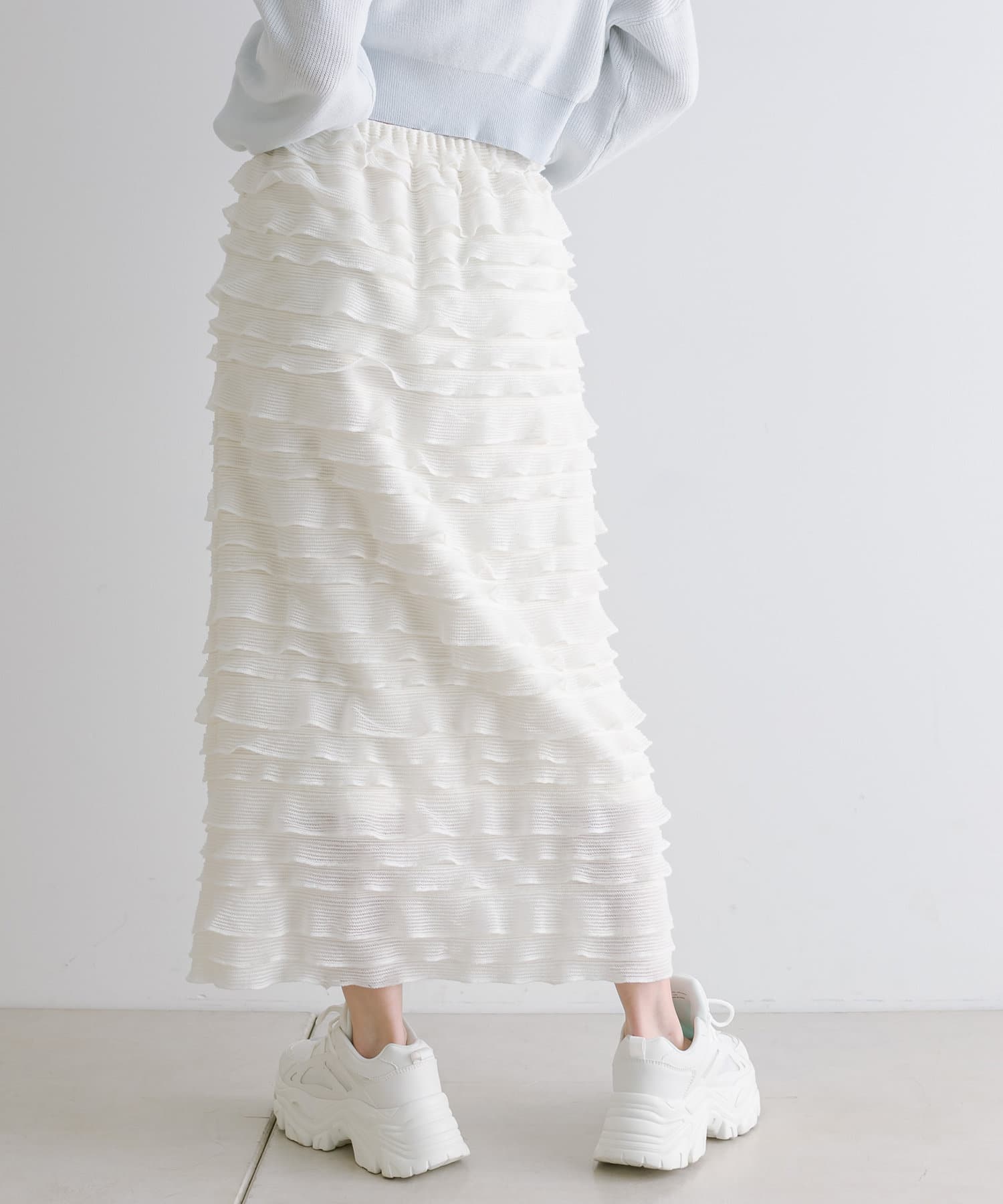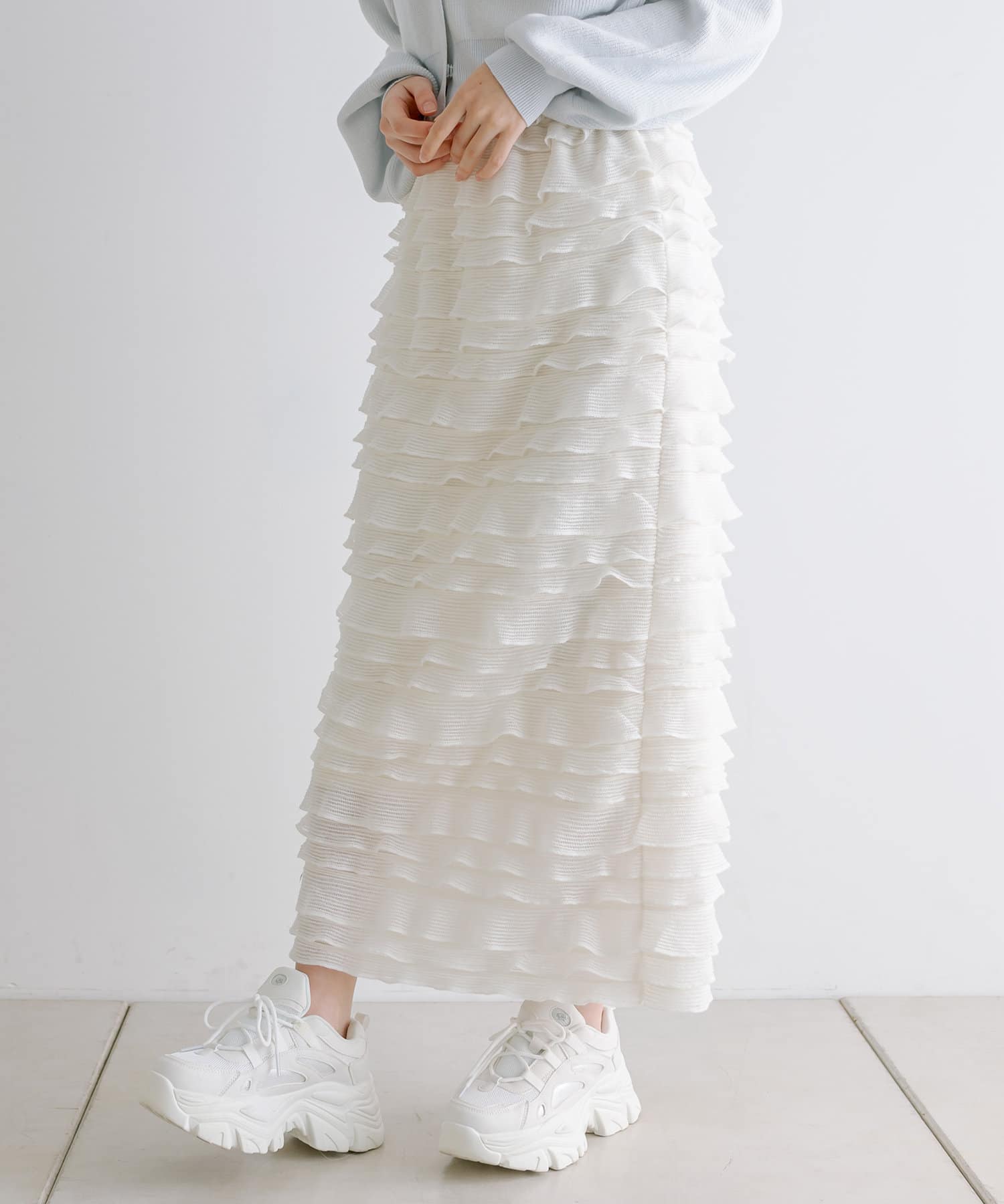 【プチプラ/細見え/手洗い可能】カットフリルロングスカート