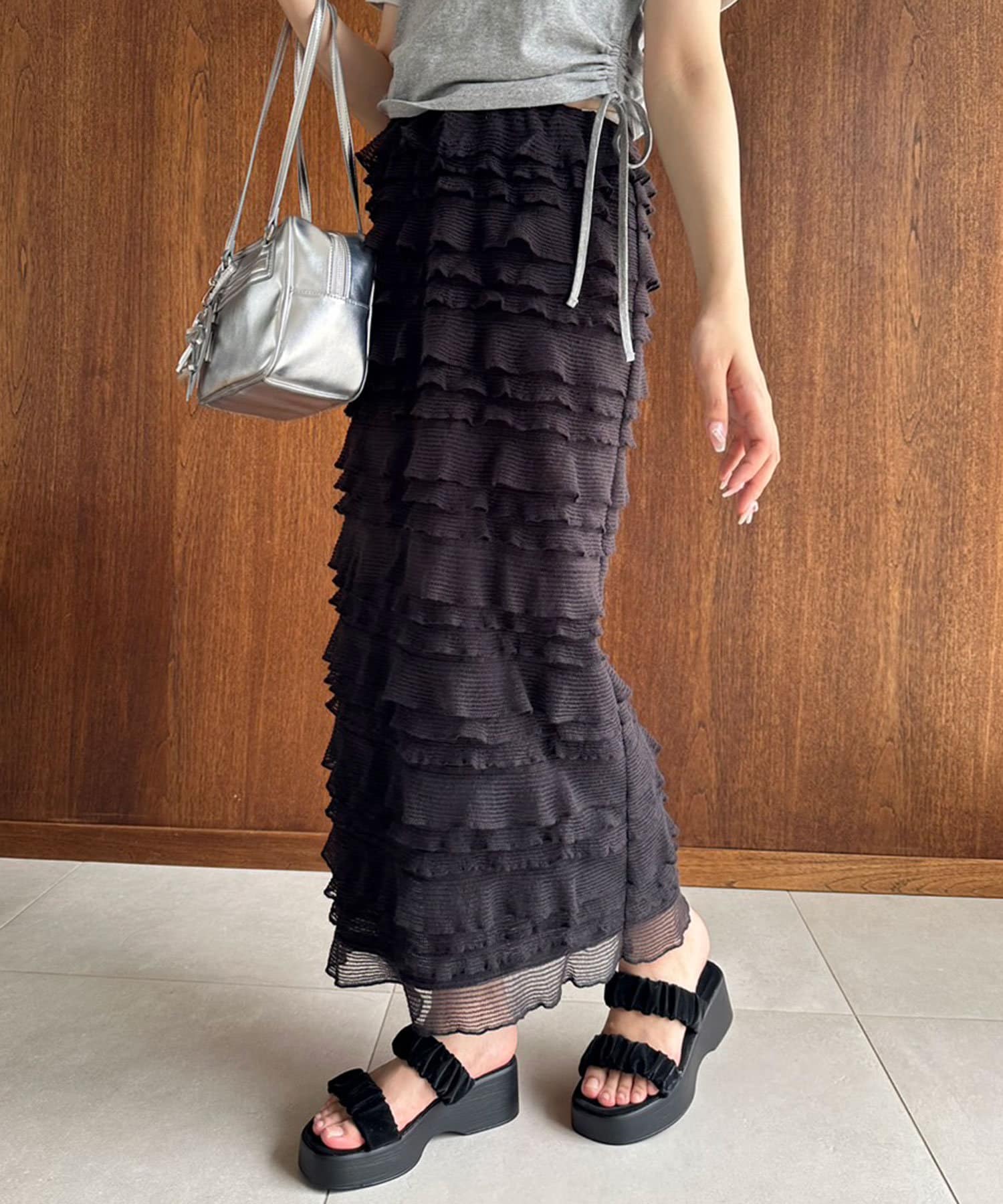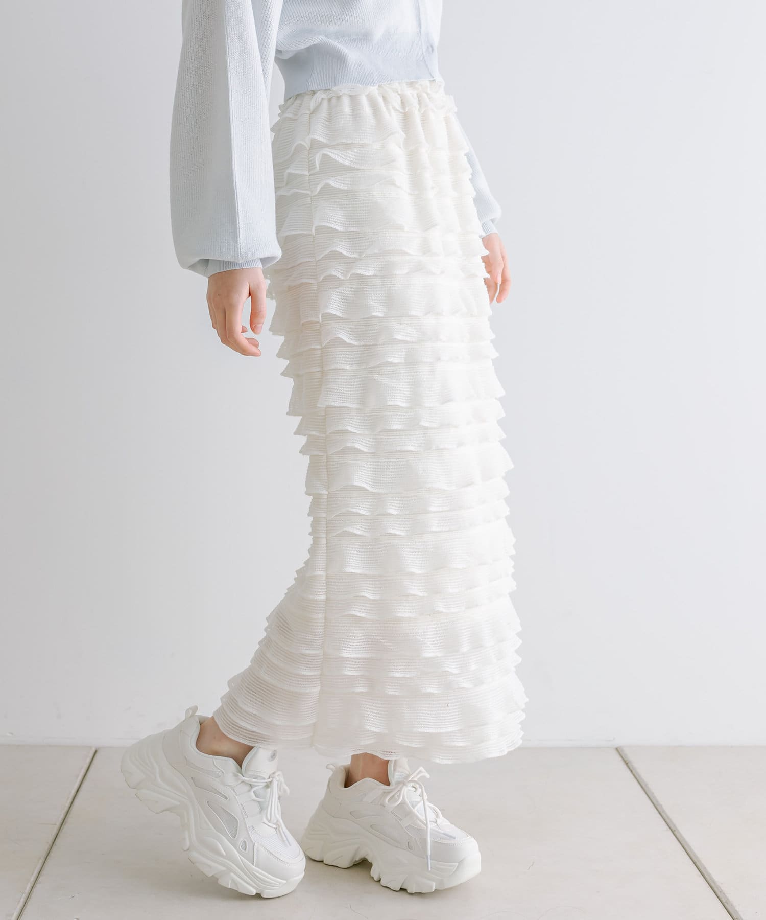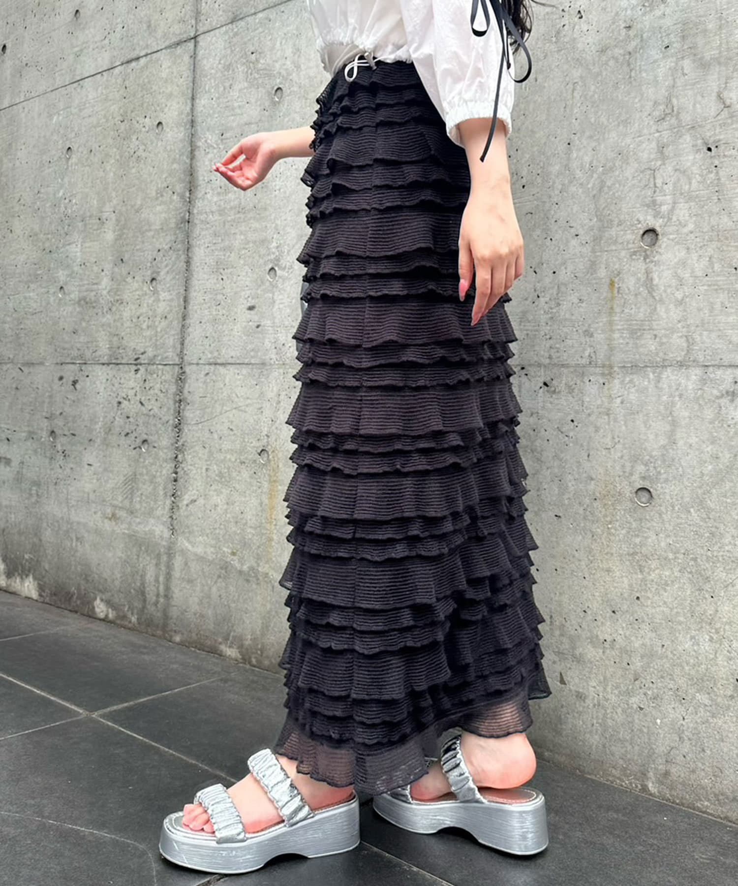【プチプラ/細見え/手洗い可能】カットフリルロングスカート