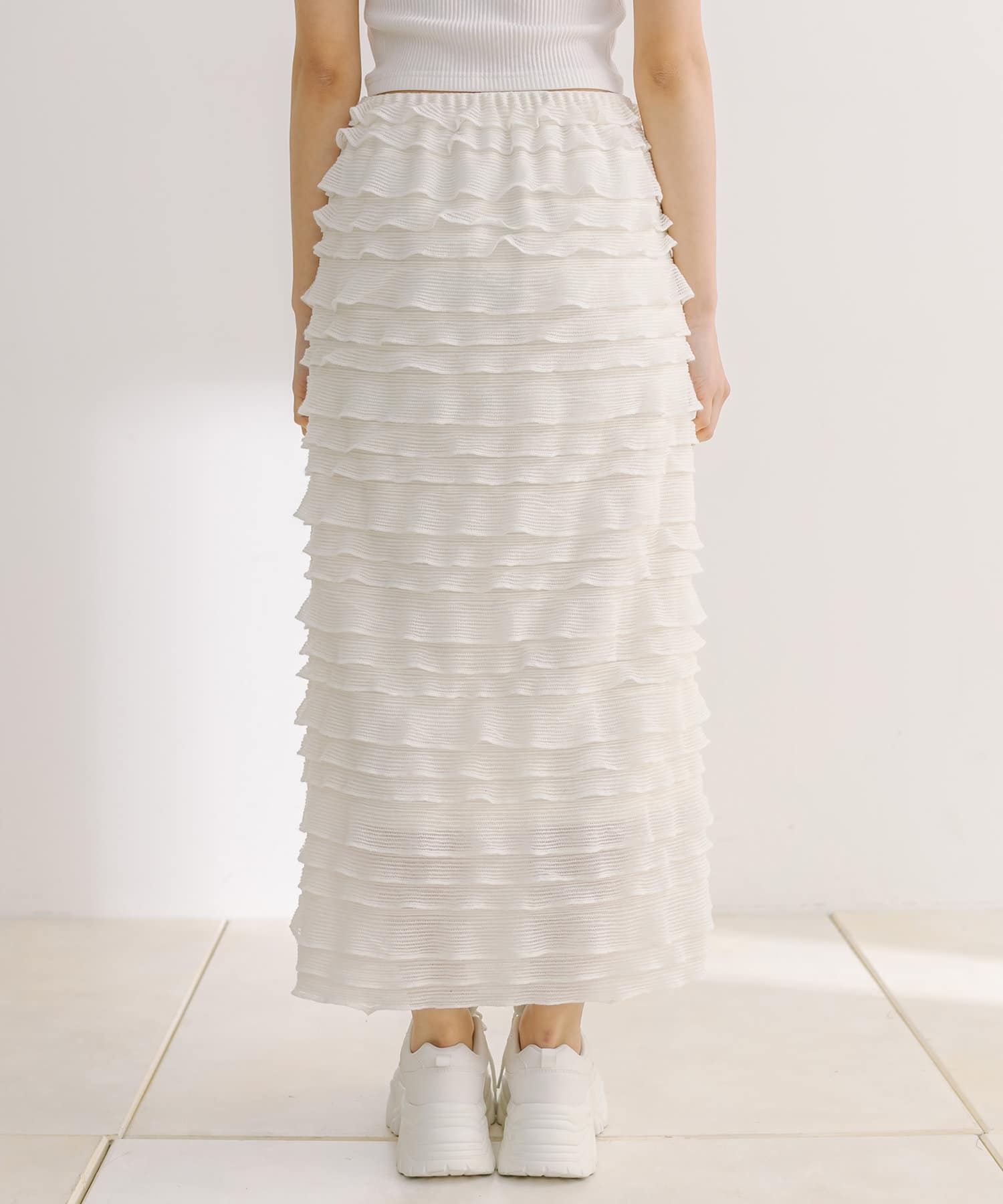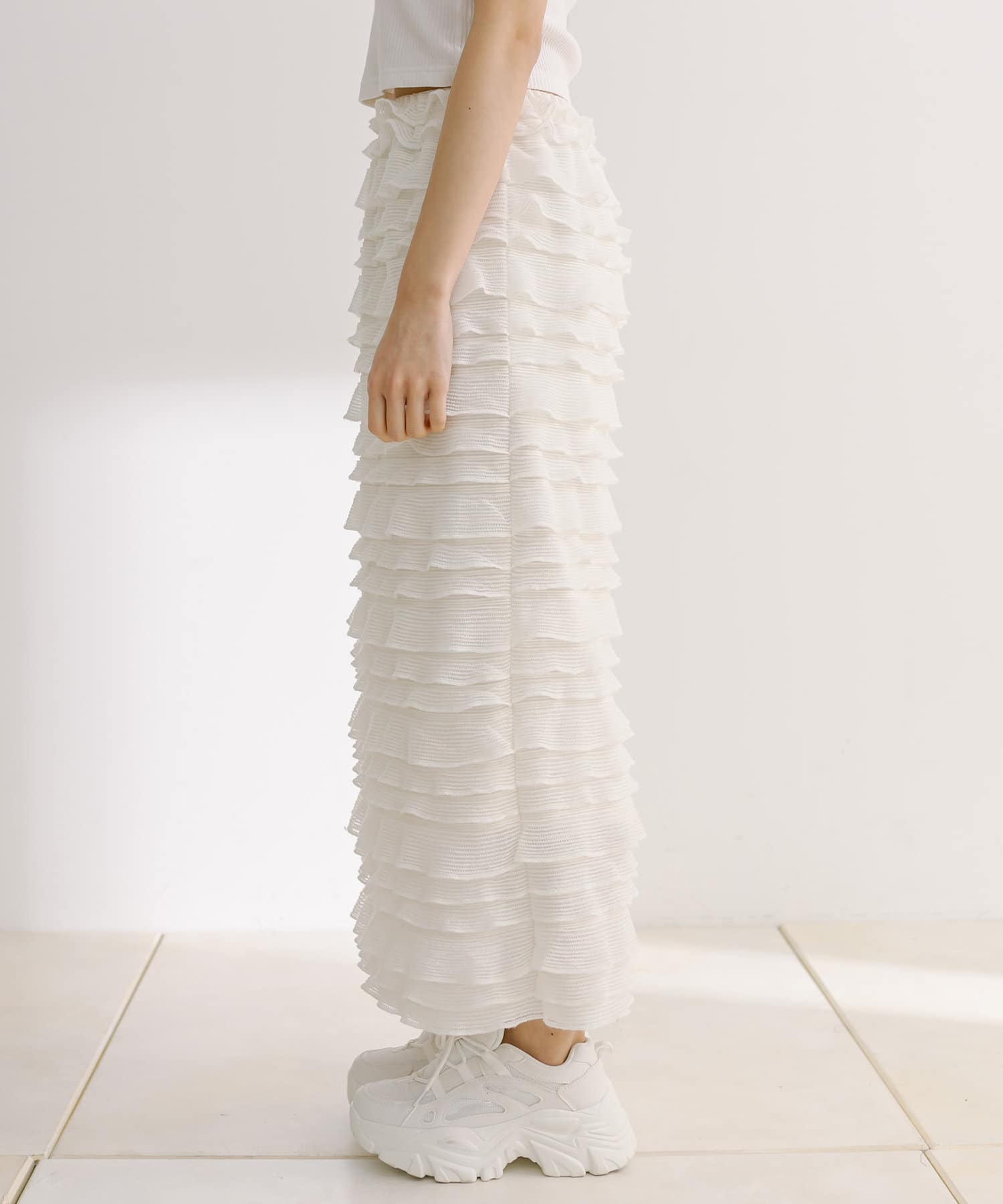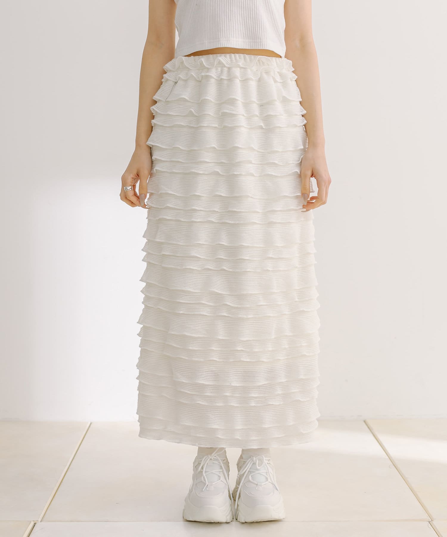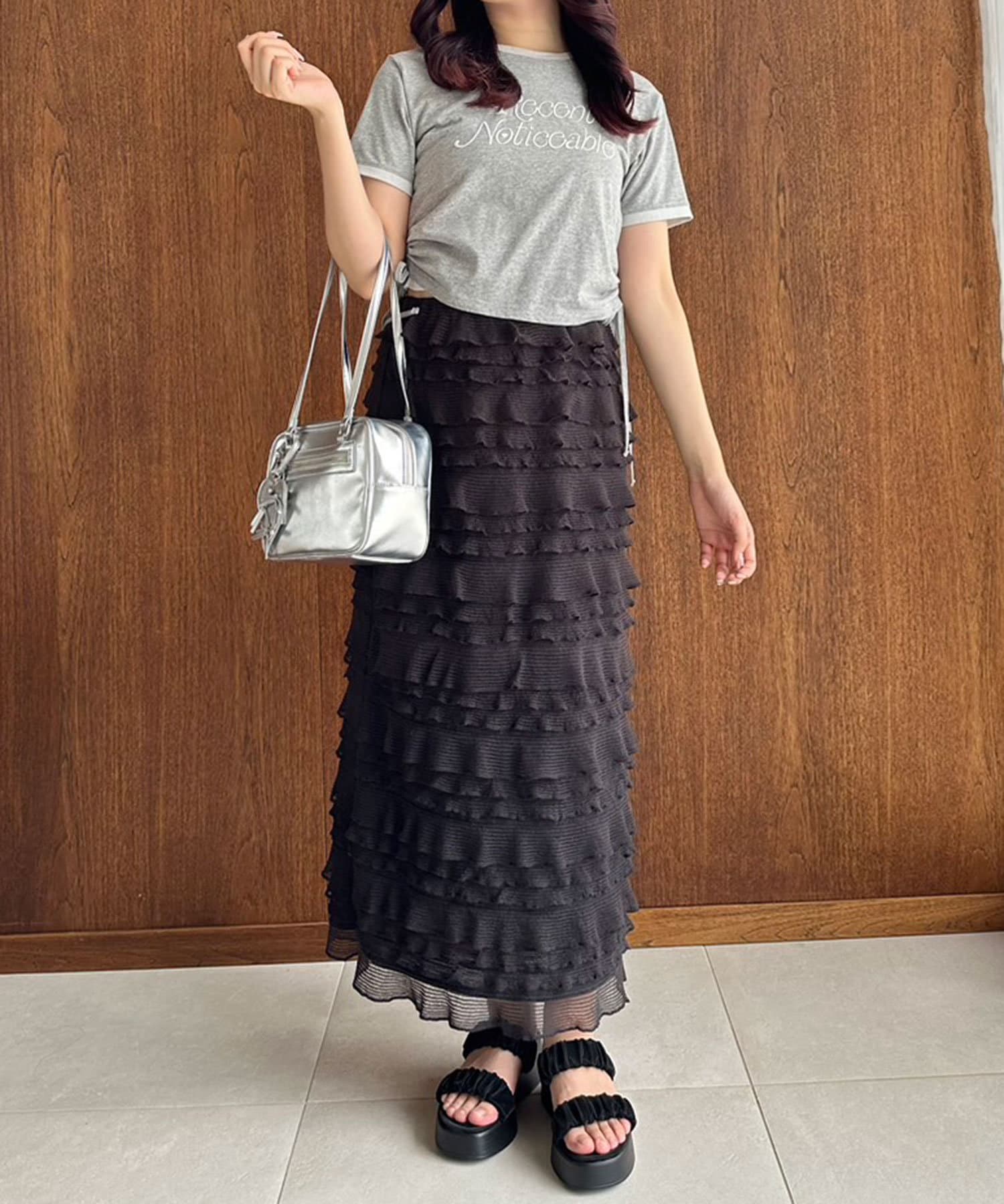 【プチプラ/細見え/手洗い可能】カットフリルロングスカート