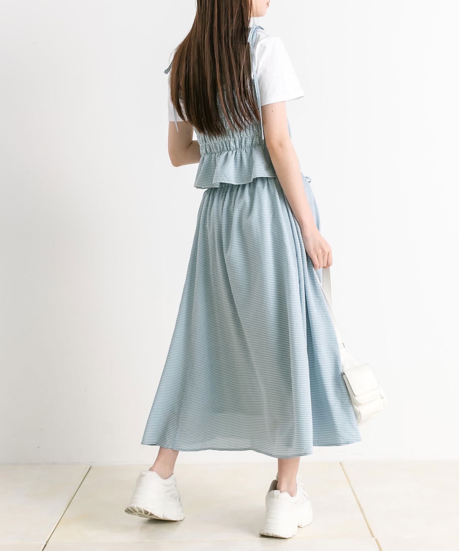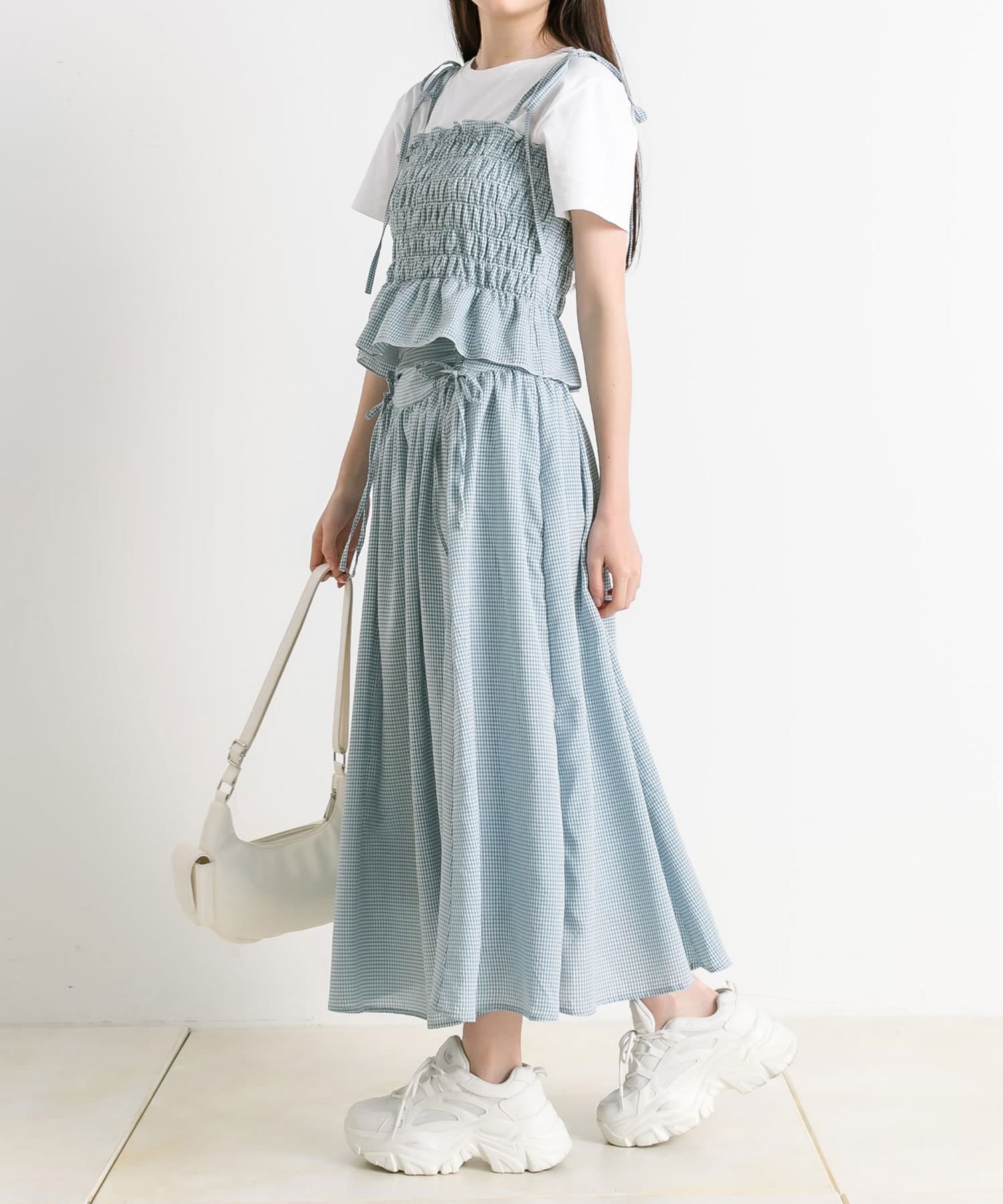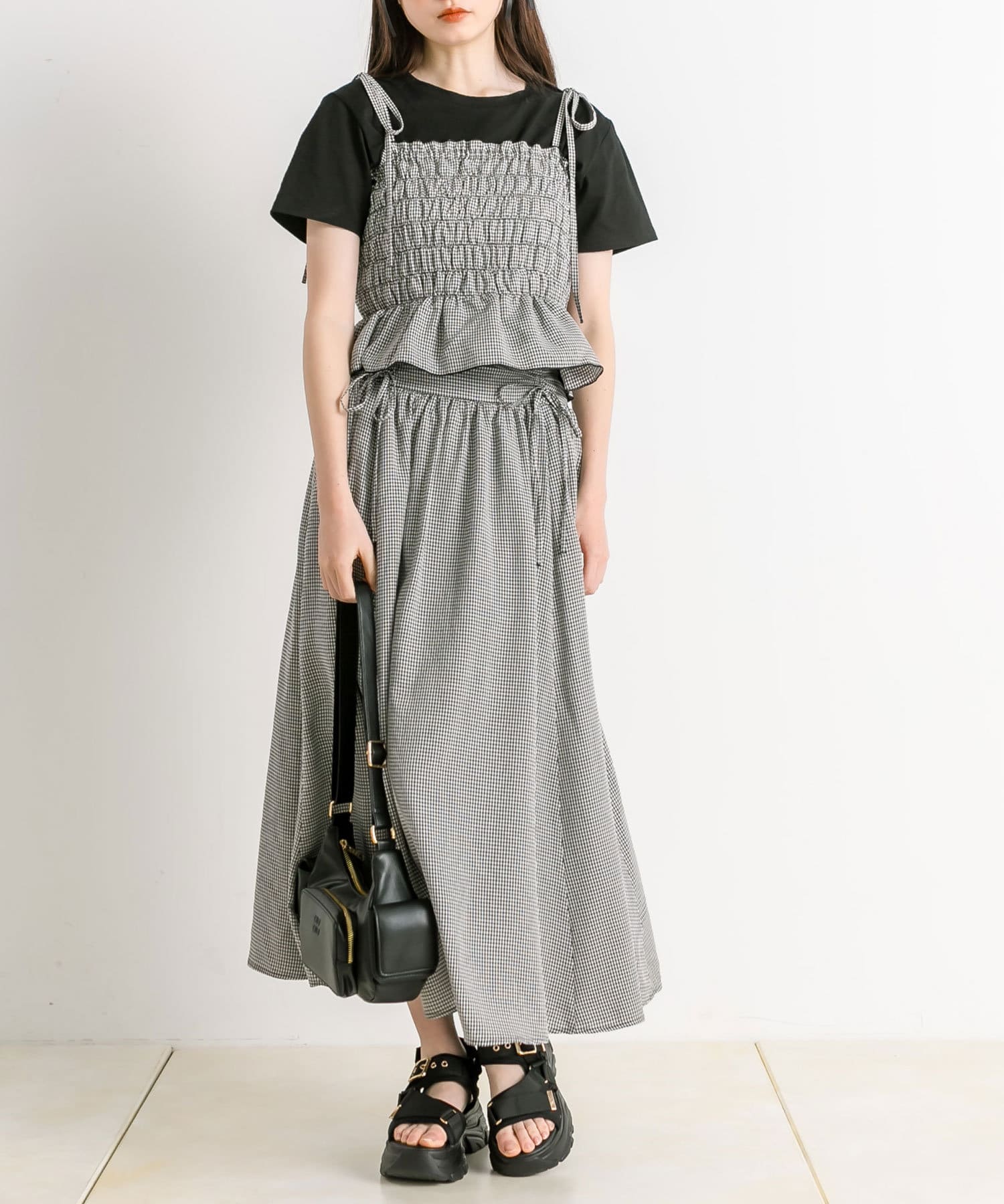 ・肩リボンシャーリングビスチェ(品番: 1041040150)と一緒に着ると、ワンピース見えするデザインです。