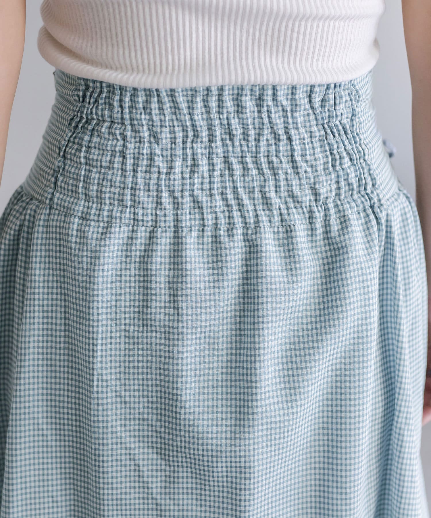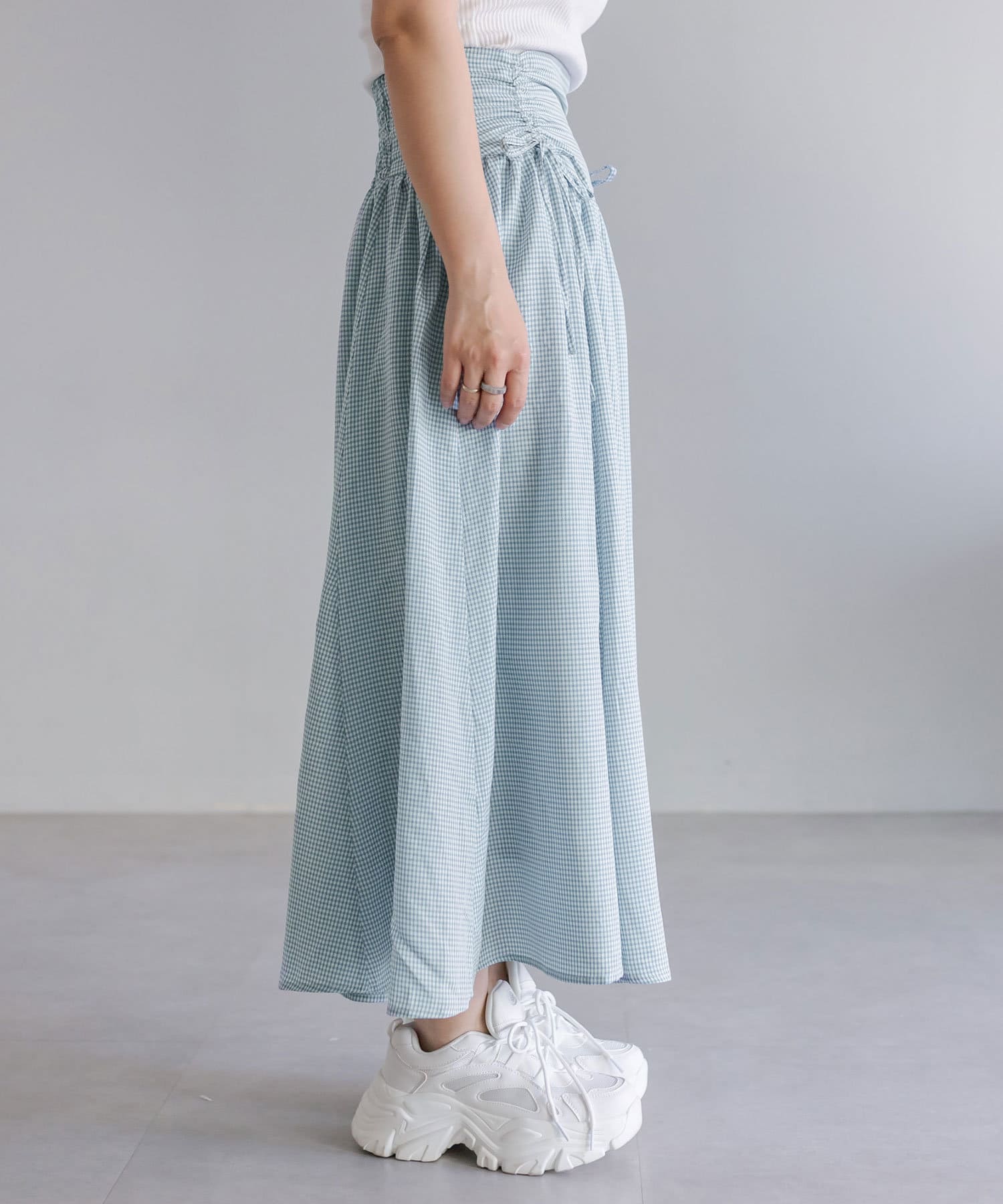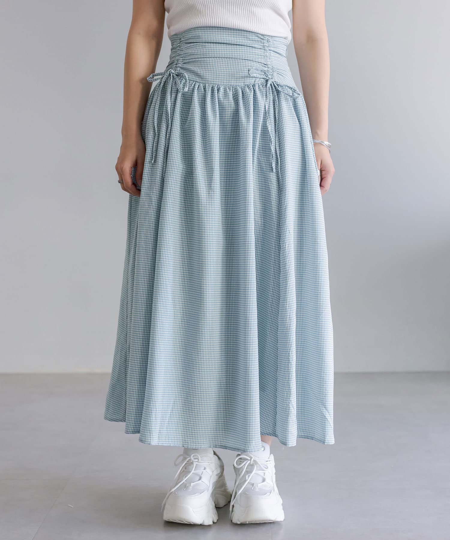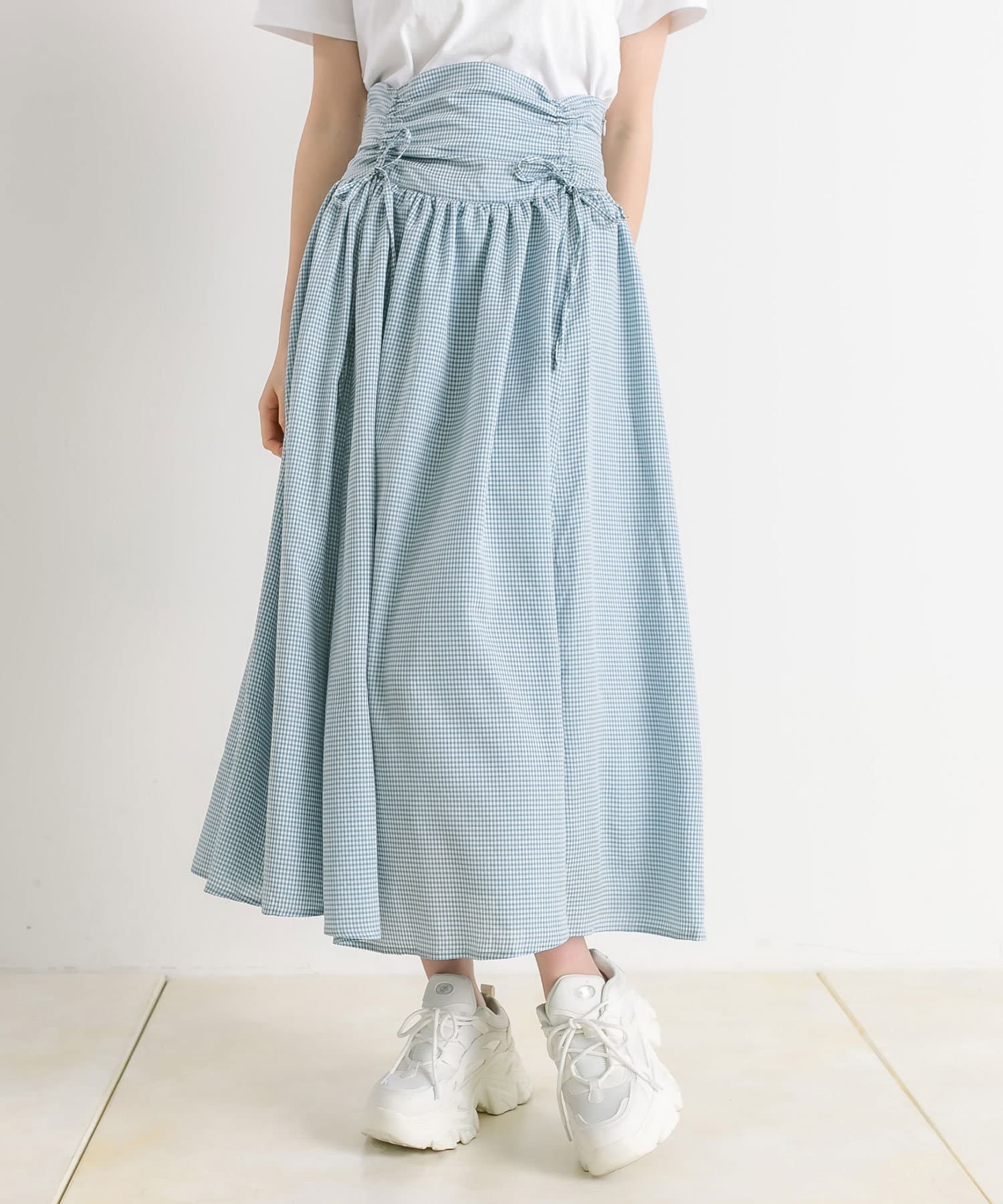・ウエスト部分のドロストとリボンがガーリーなフレアスカート。