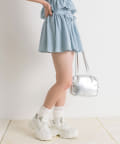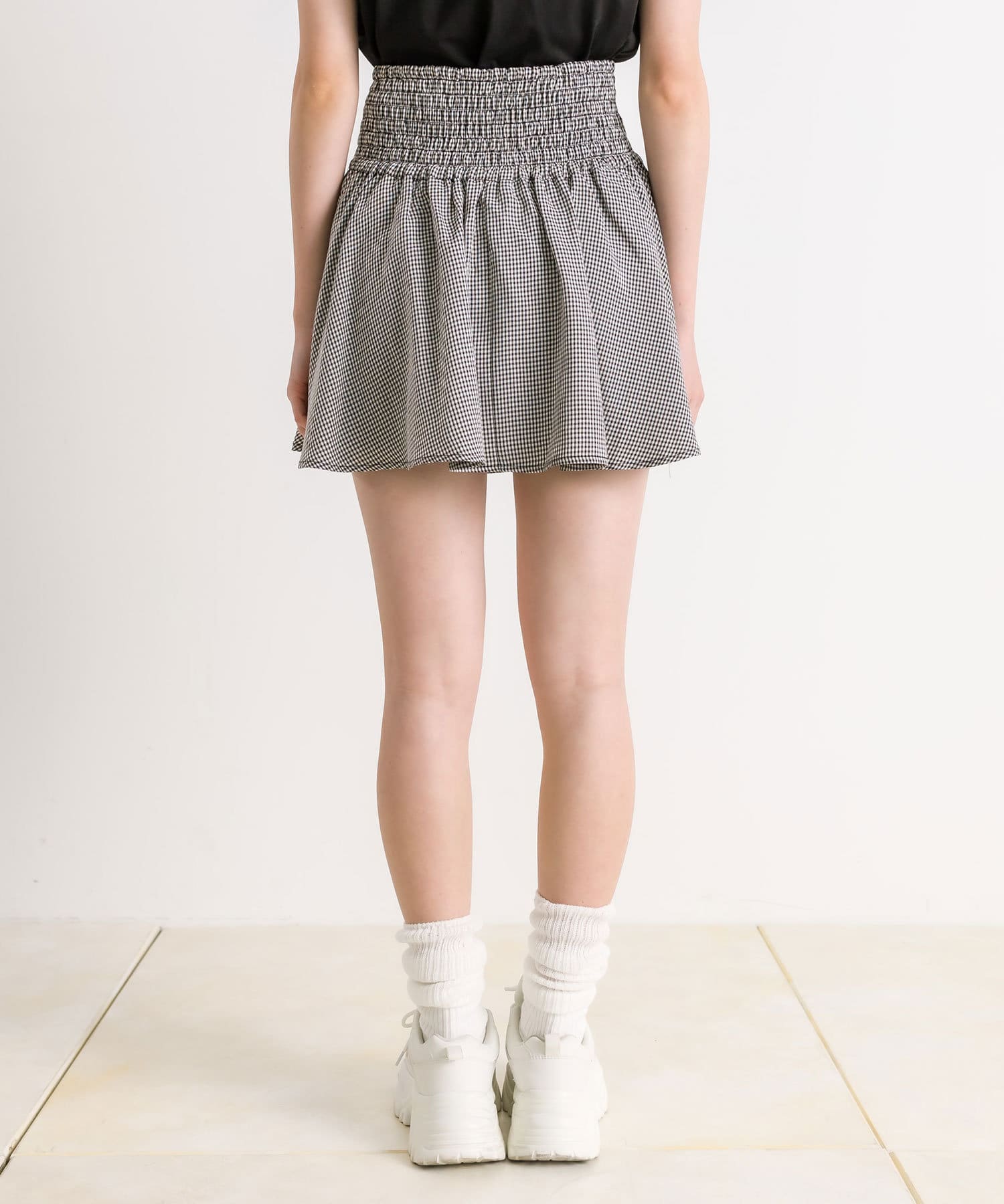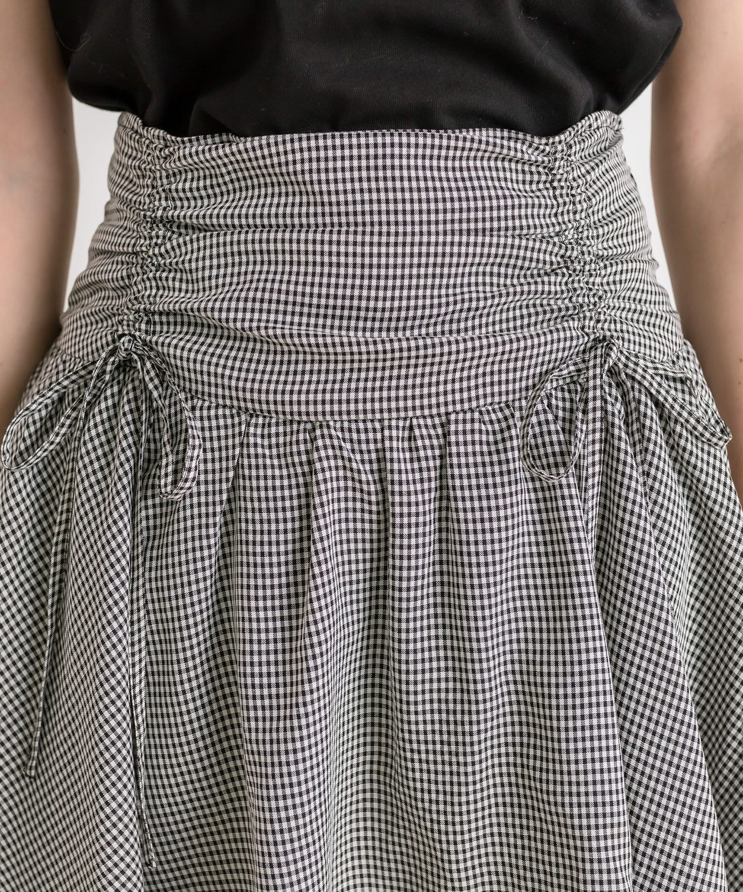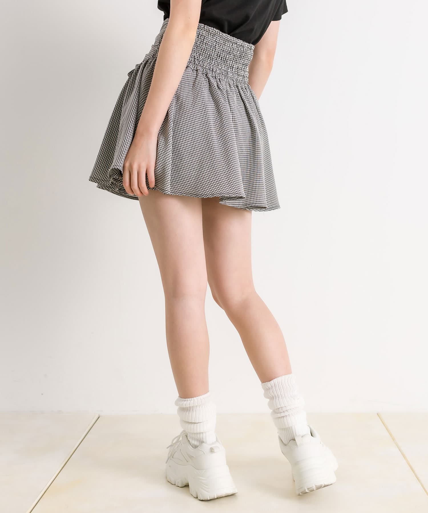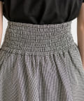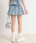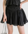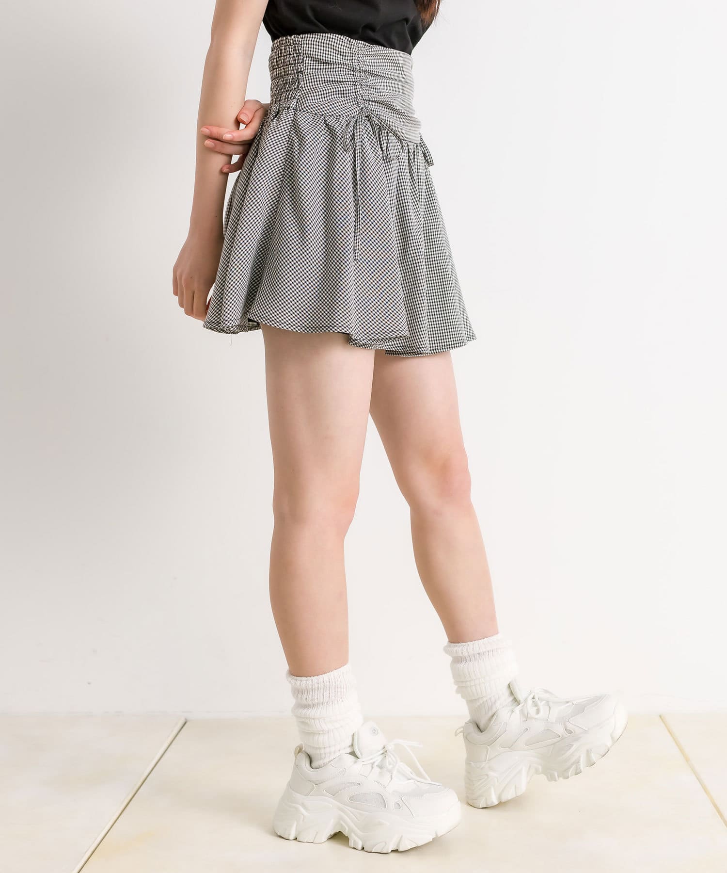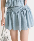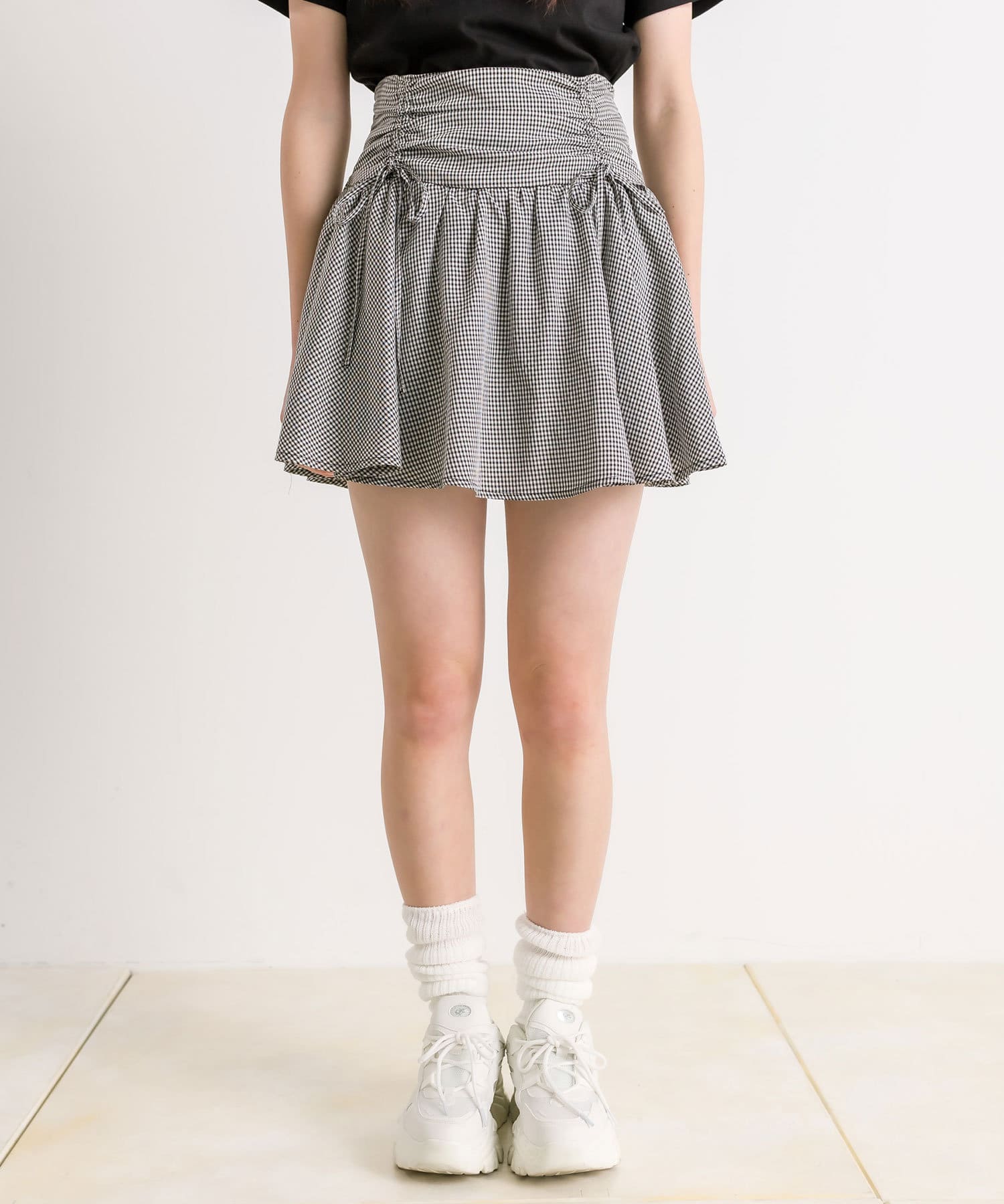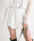 ・ウエスト部分のドロストとリボンがガーリーなミニスカート。