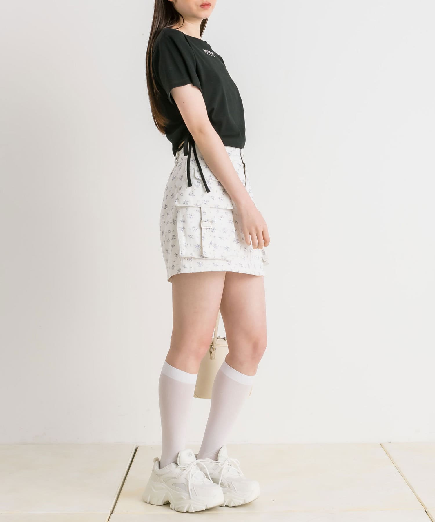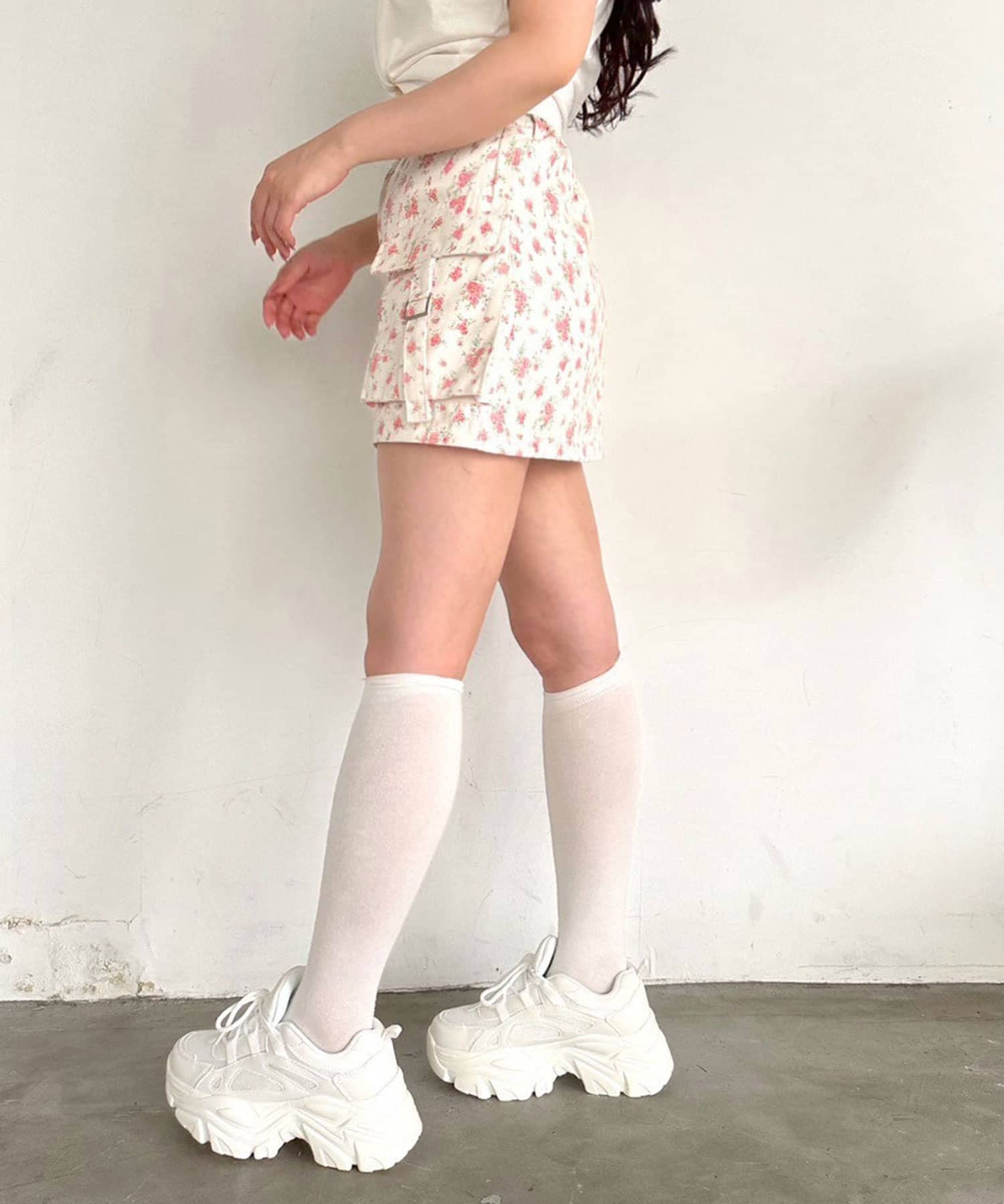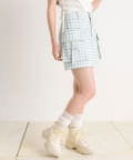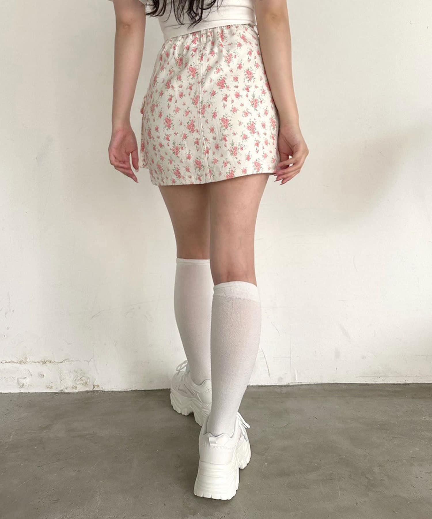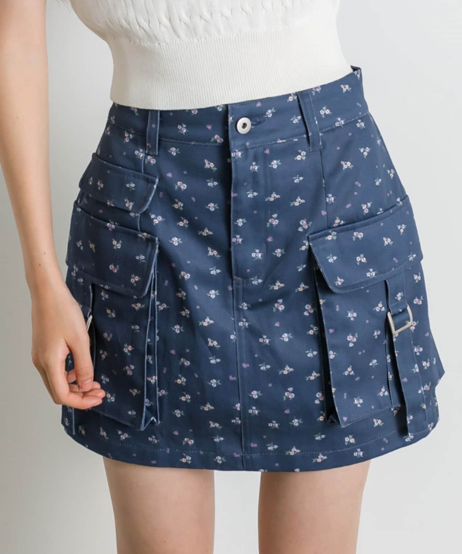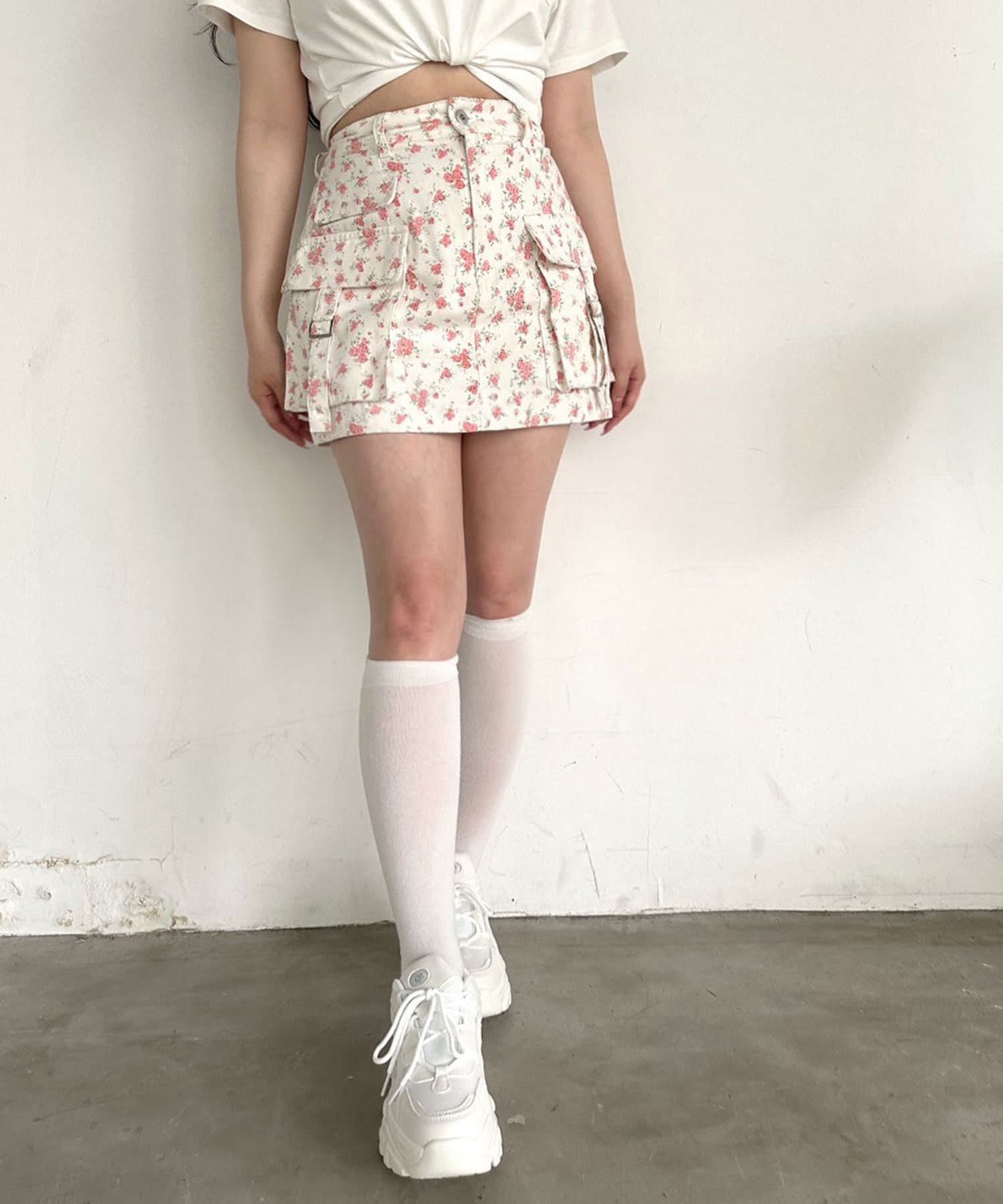 ・カジュアルな印象のカーゴスカートですが、花柄やチェックはカジュアルすぎずガーリーに着ていただけます。
