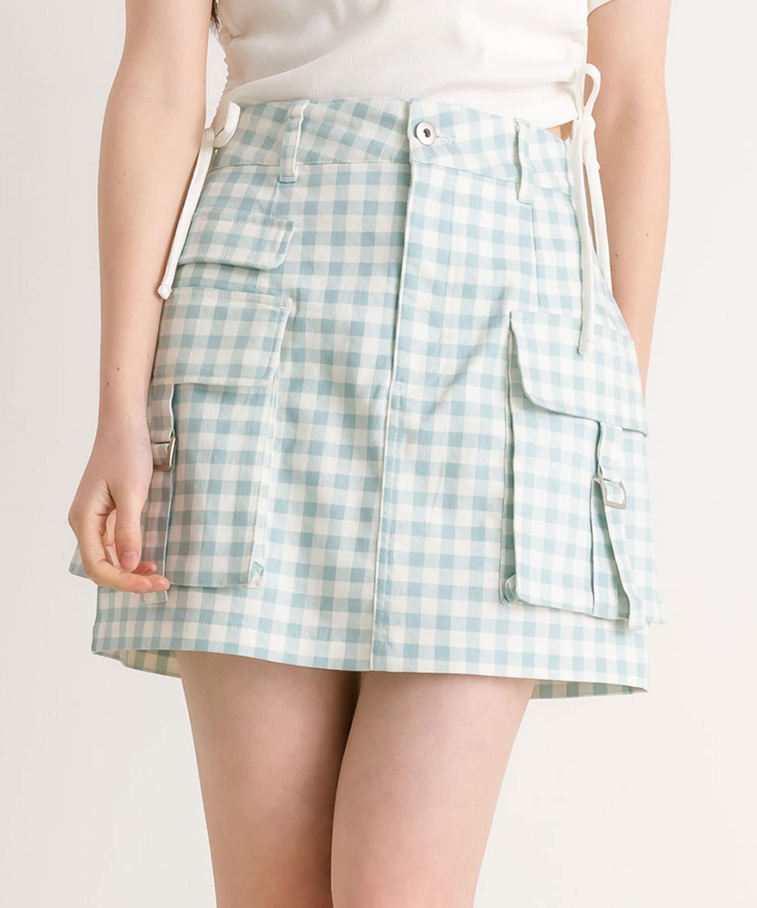 ・トレンドのカーゴデザインのミニスカート。
