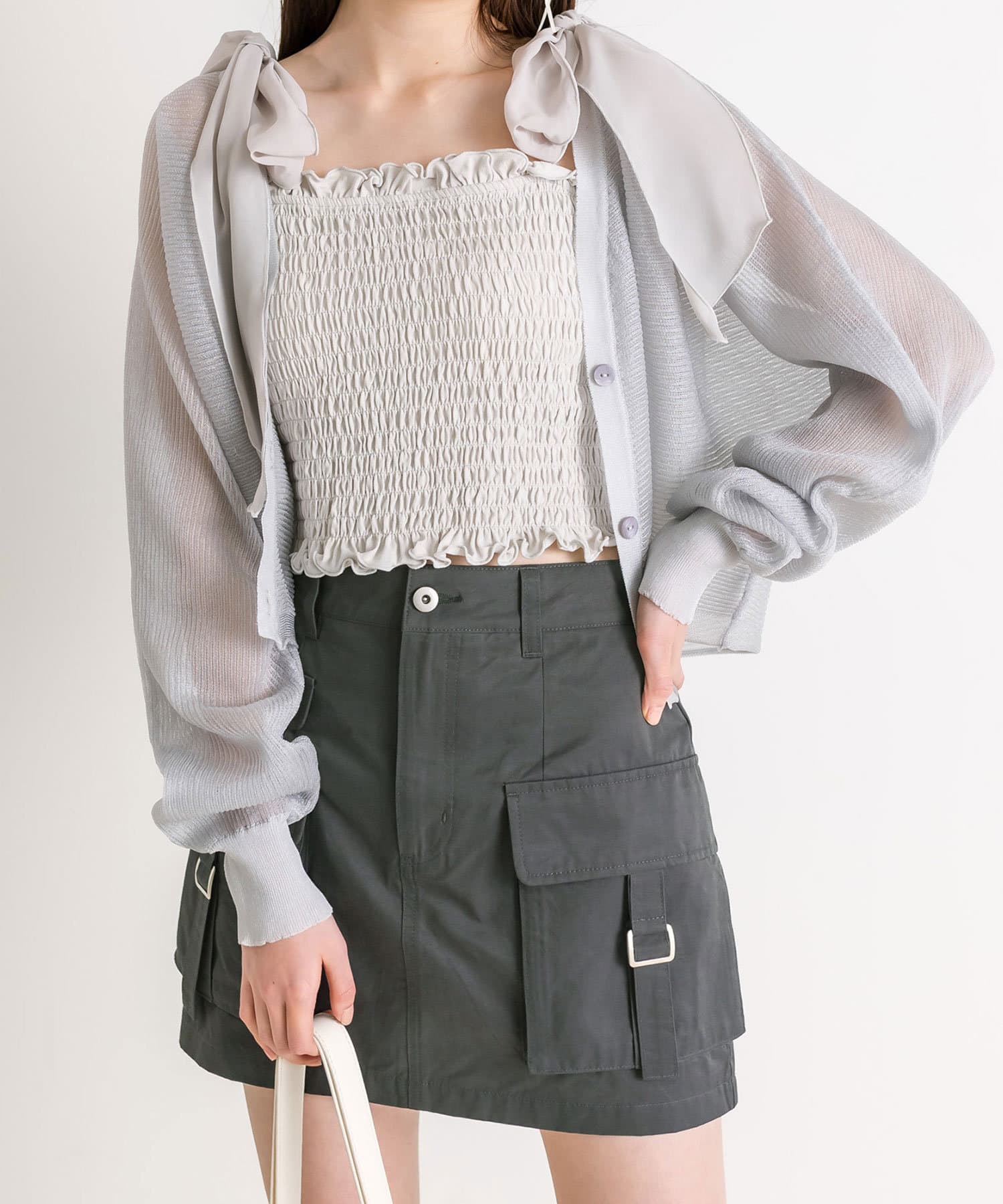 ・トレンドのリボンなどが付いたガーリーなトップスとの相性も◎