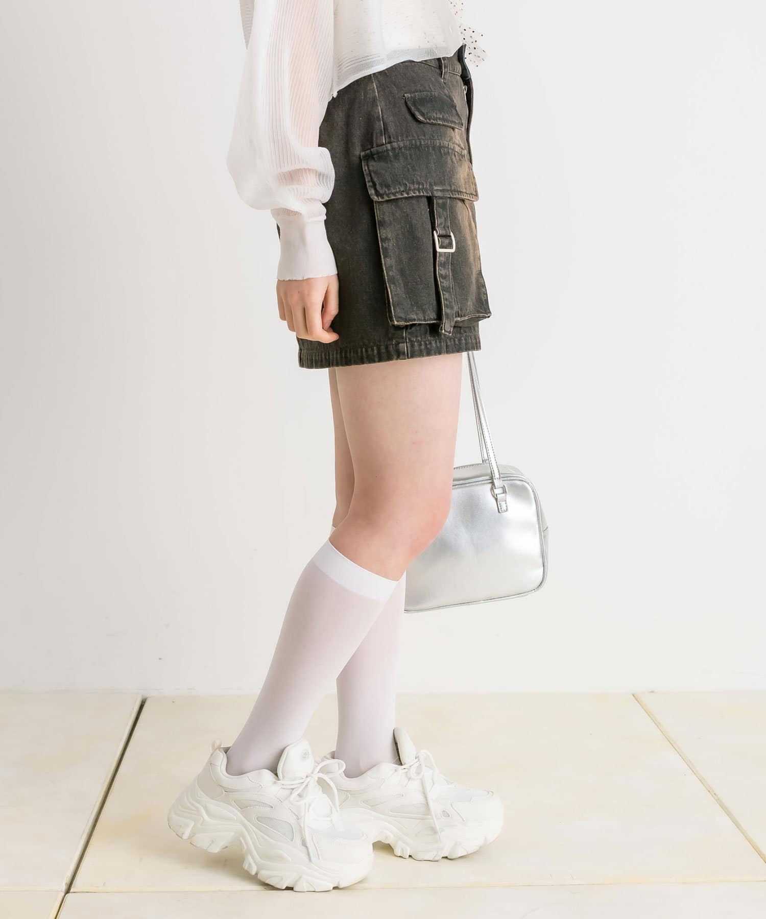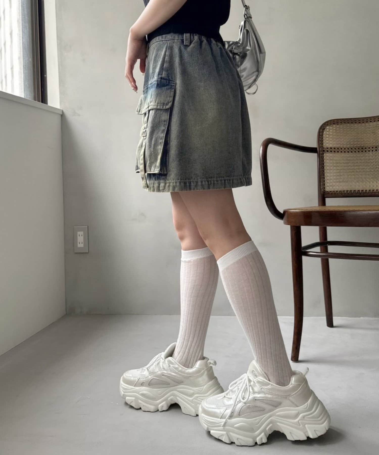 ・足元は靴下合わせにスポサンや厚底スニーカーがおすすめ。