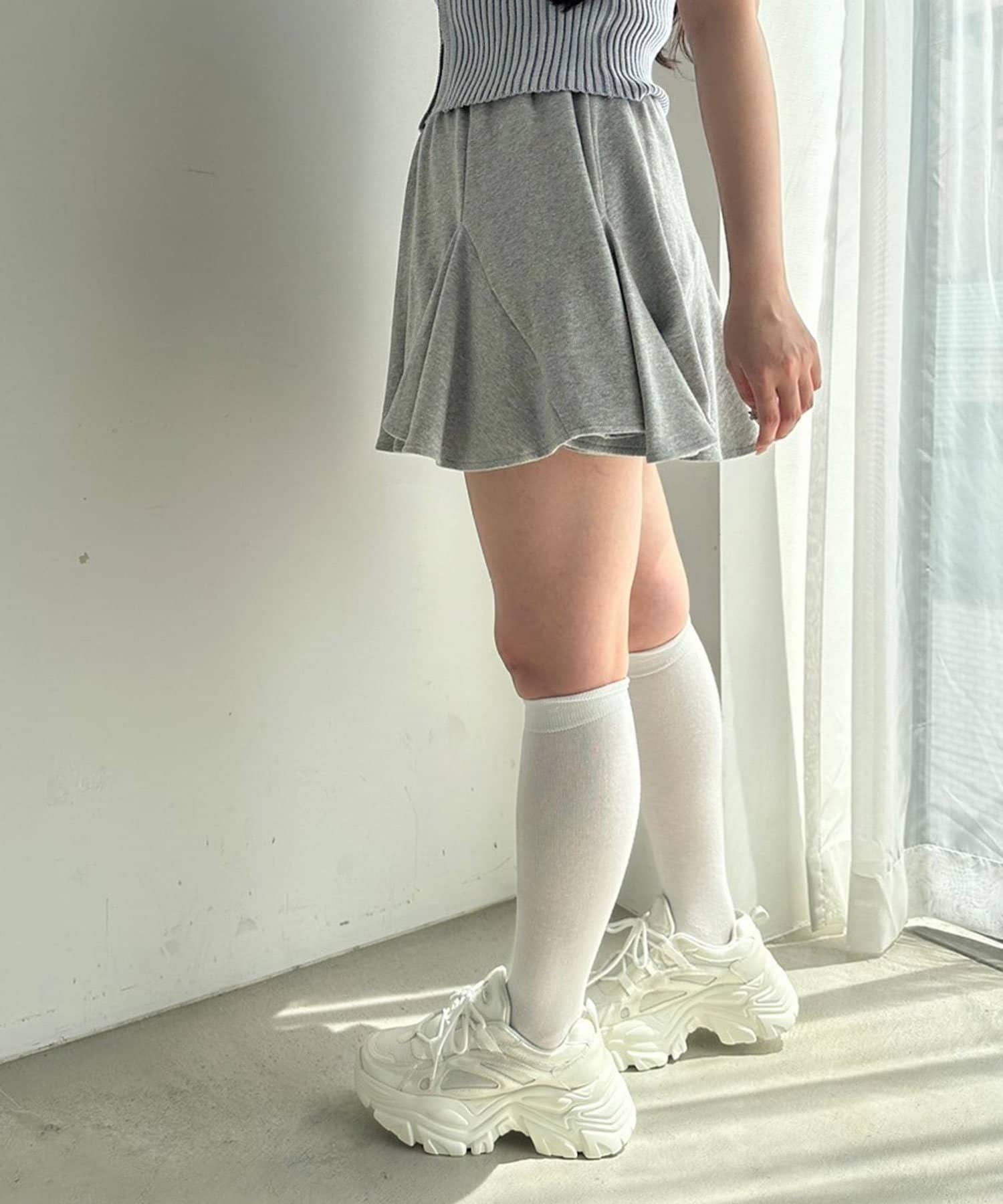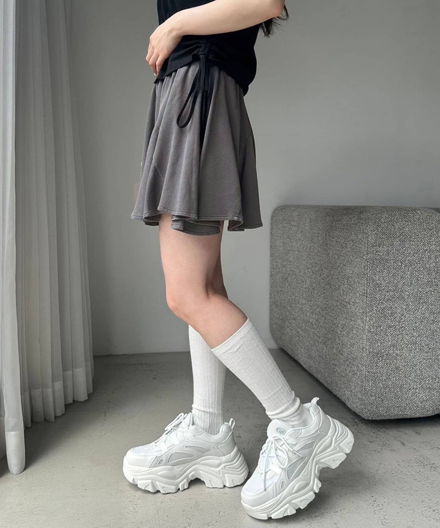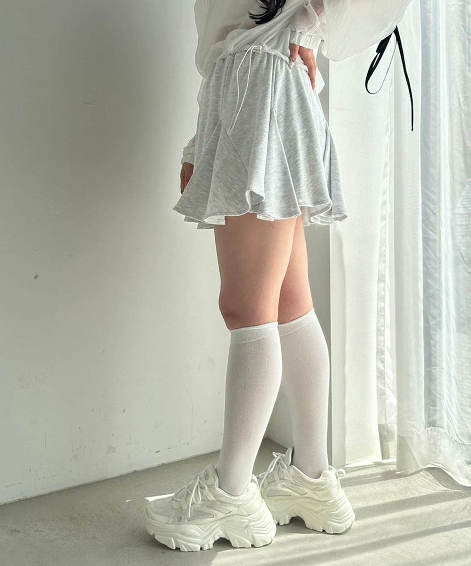・足元はハイソックスにスオーツサンダルや厚底スニーカーを合わせるのが◎