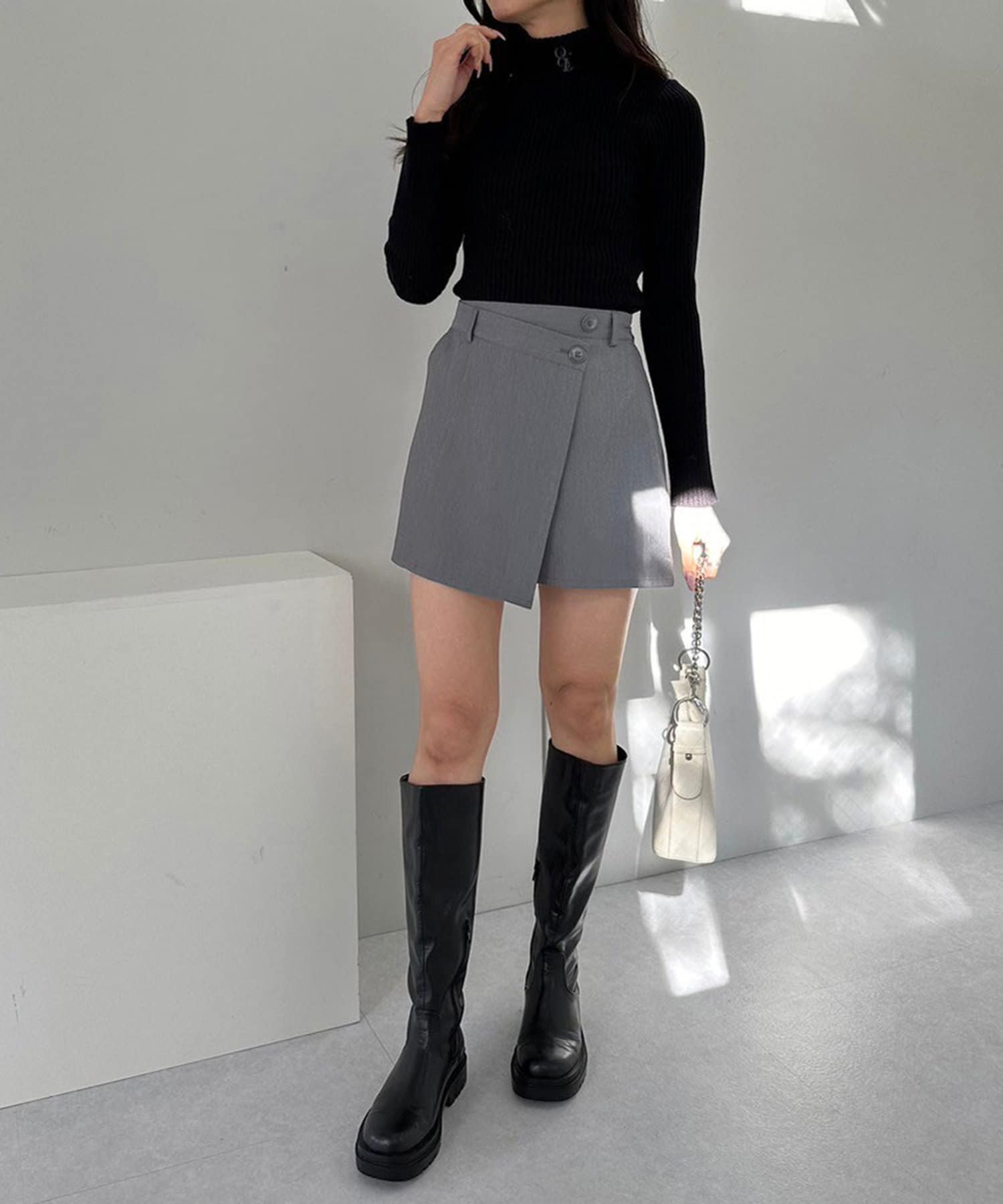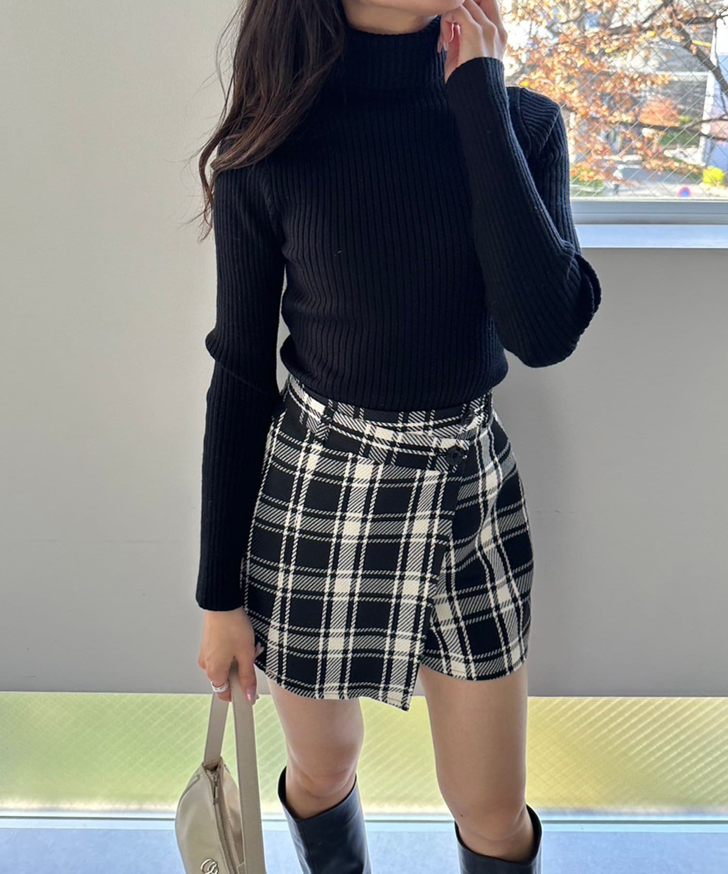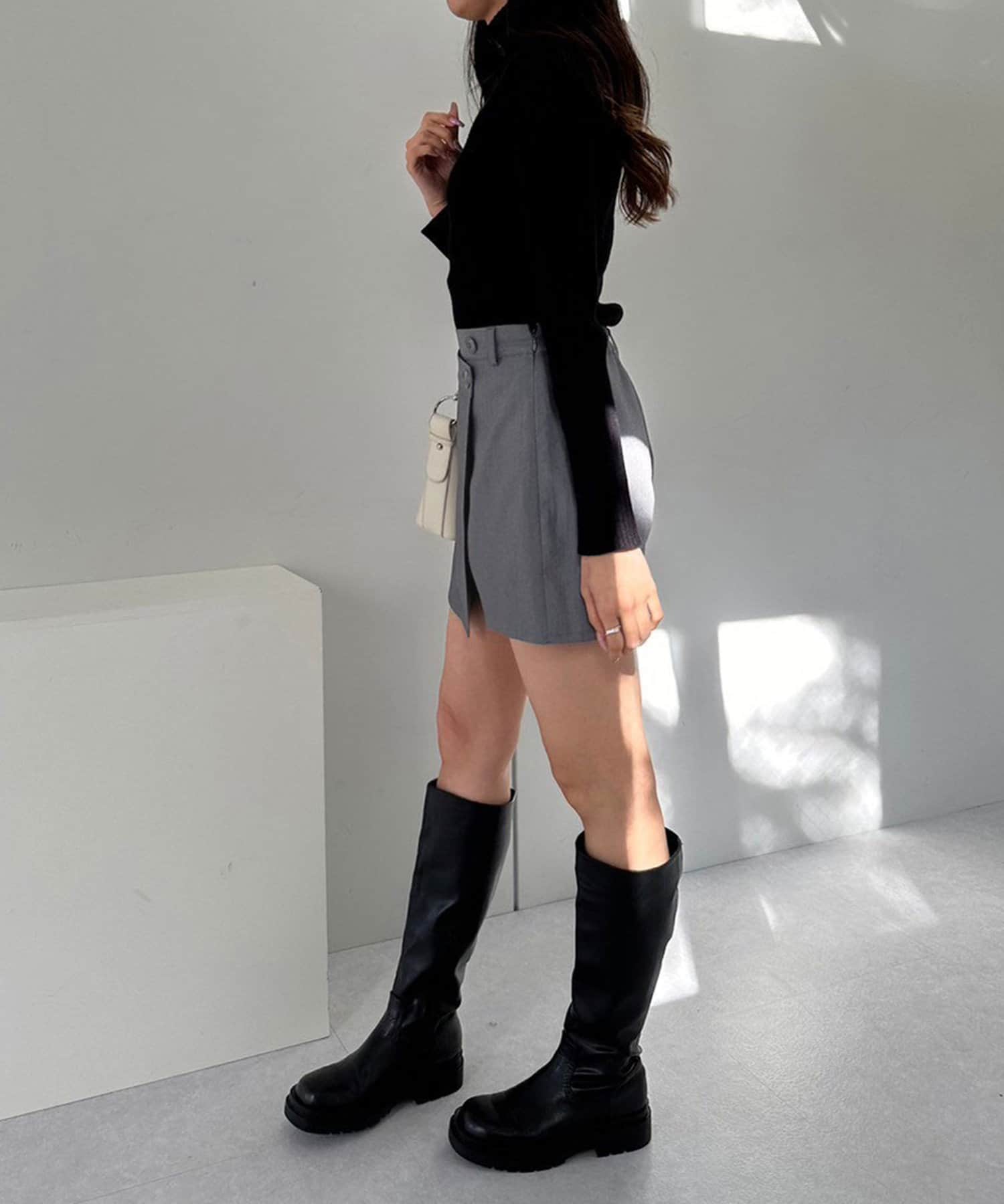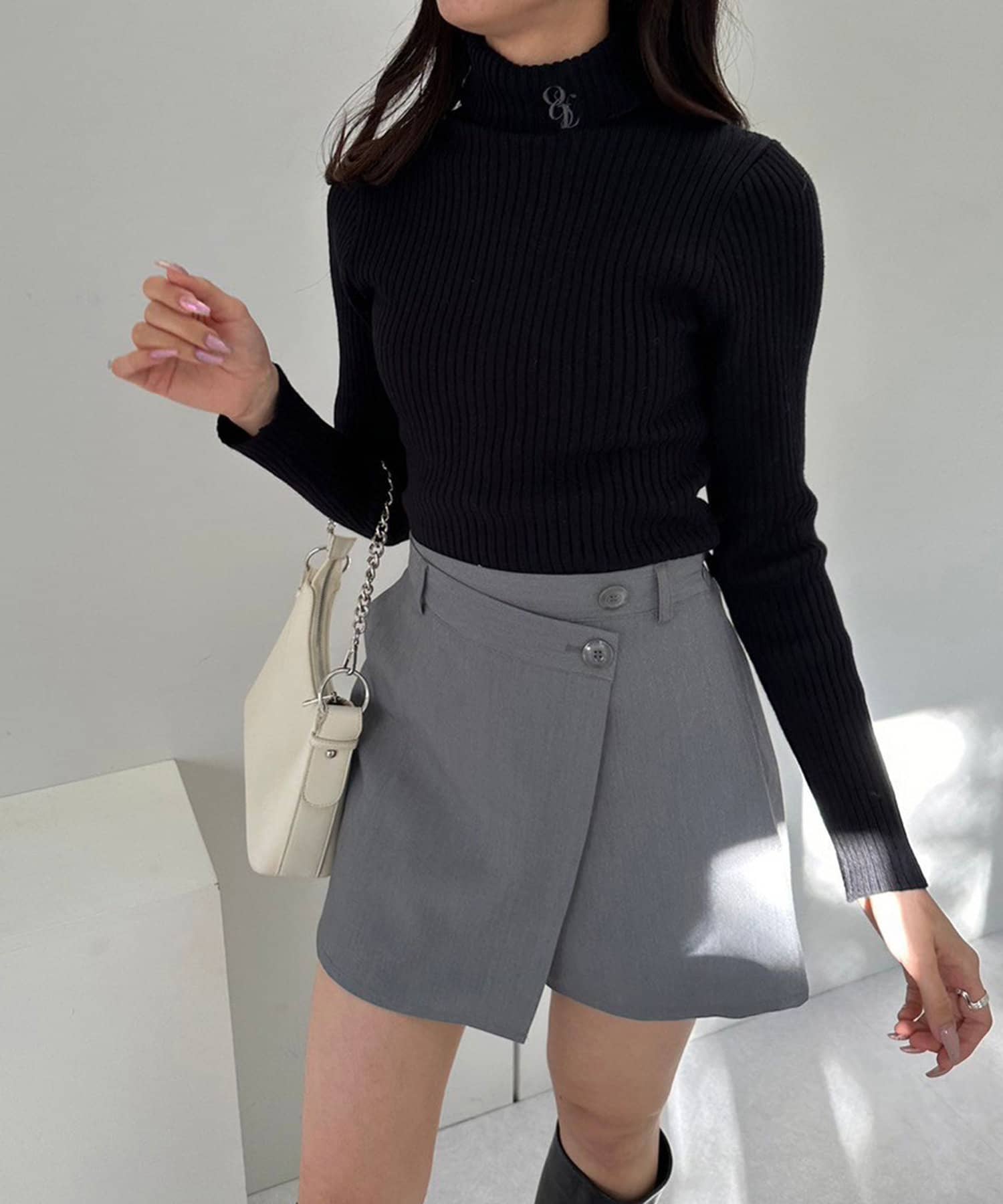 ・ボトムスを主役にシンプルなタートルニット合わせがおすすめ。
