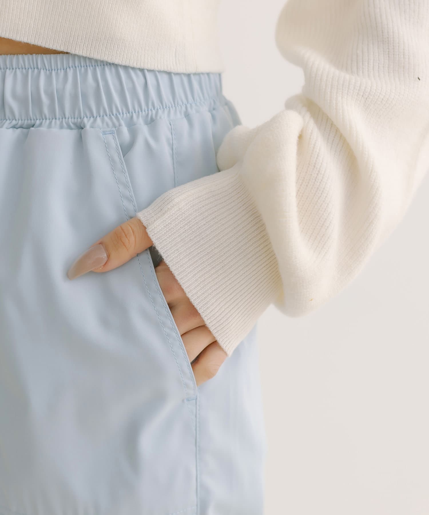 ※オフホワイトは下に濃い色など着用しますと透け感が出てしまいますので、インナーパンツの着用がおすすめです。ご理解のほどお願いいたします。
