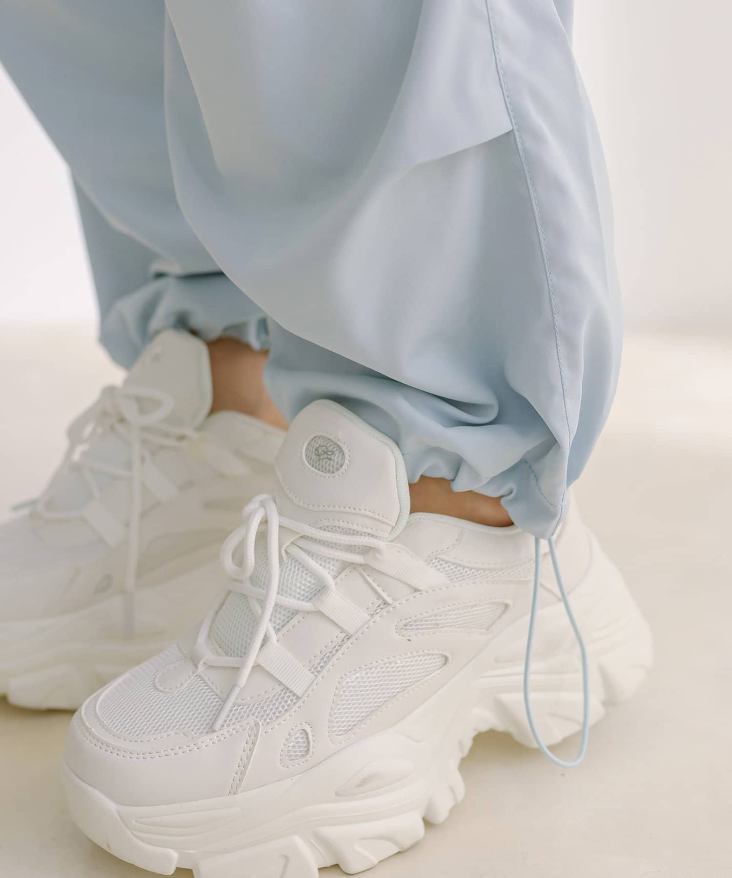 ・足元は厚底スニーカーが相性抜群。