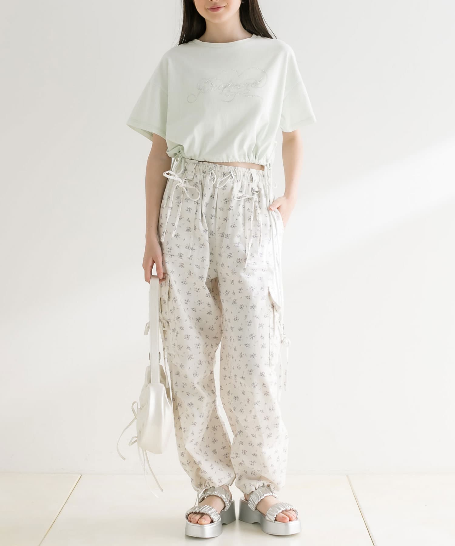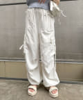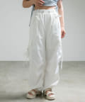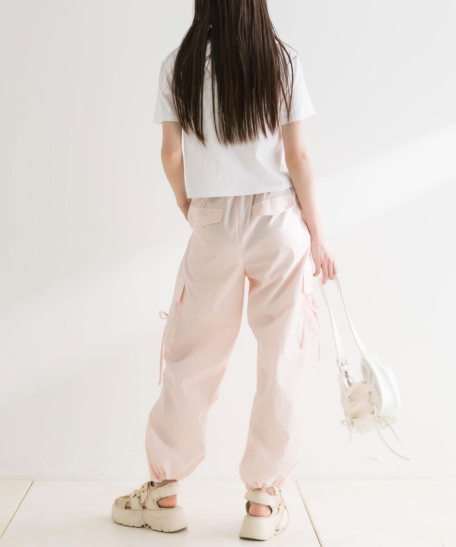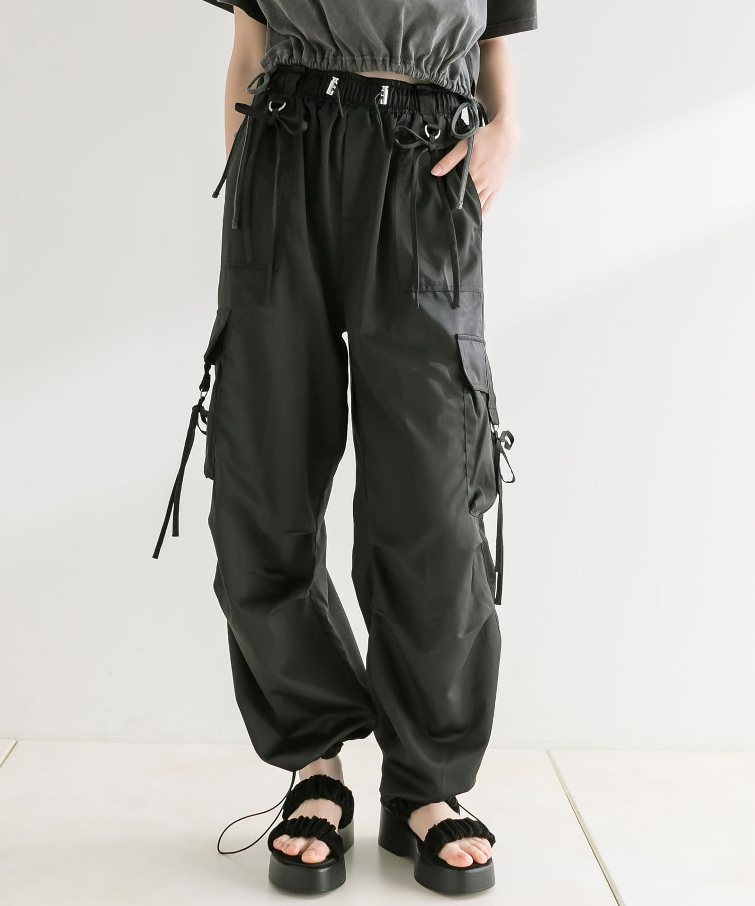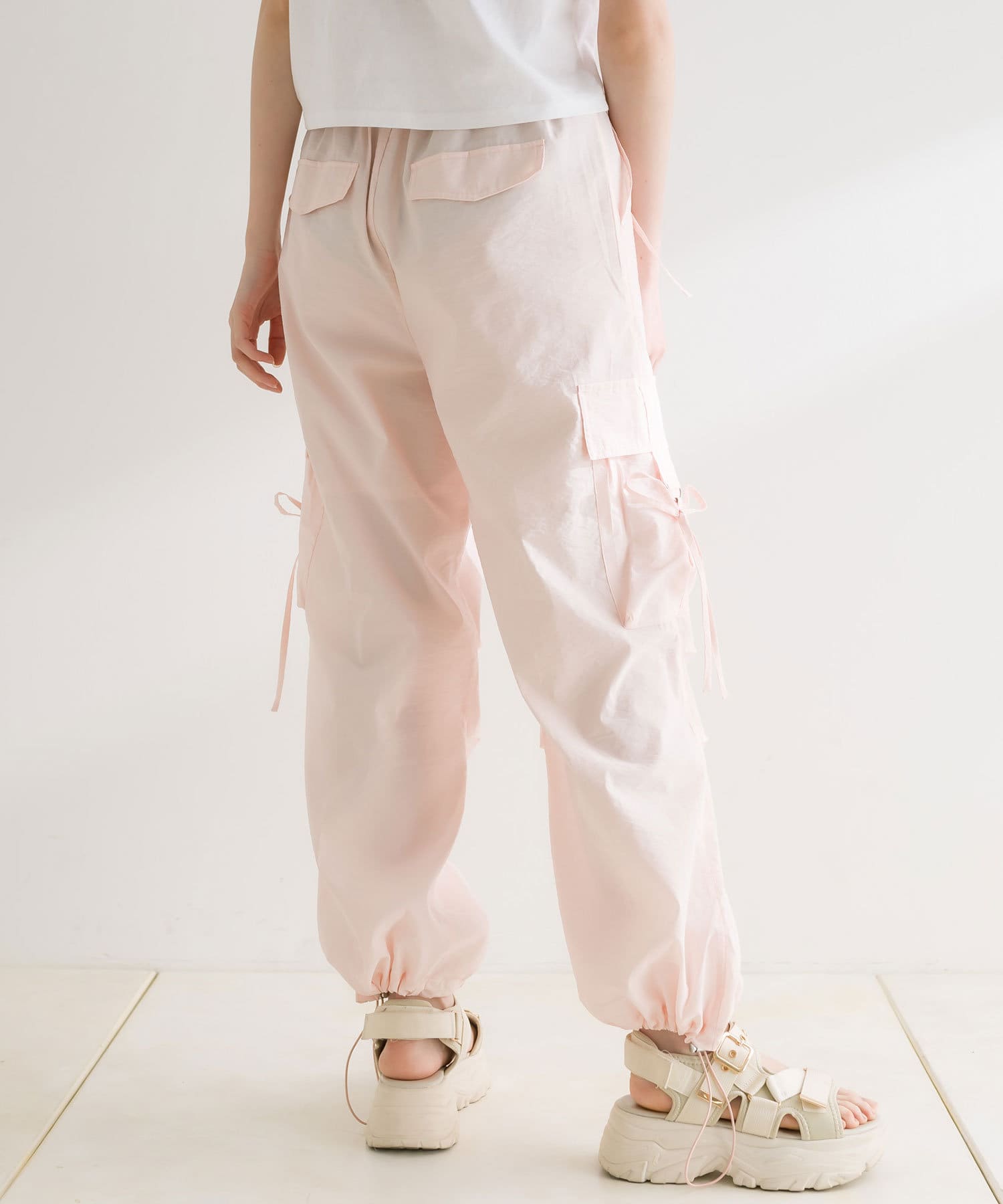 ・リボンチャームがポイントの女みデザインなカーゴパンツ。