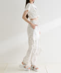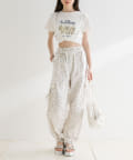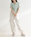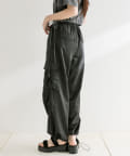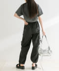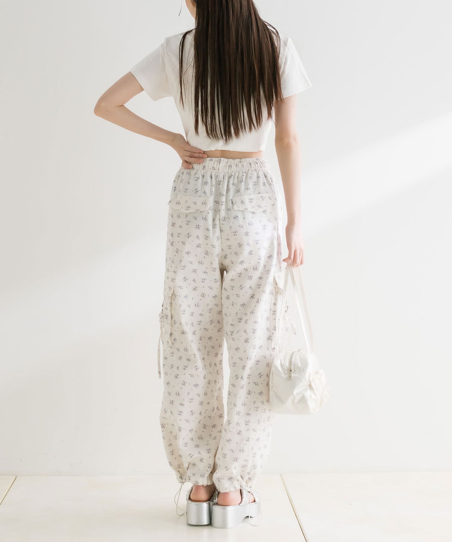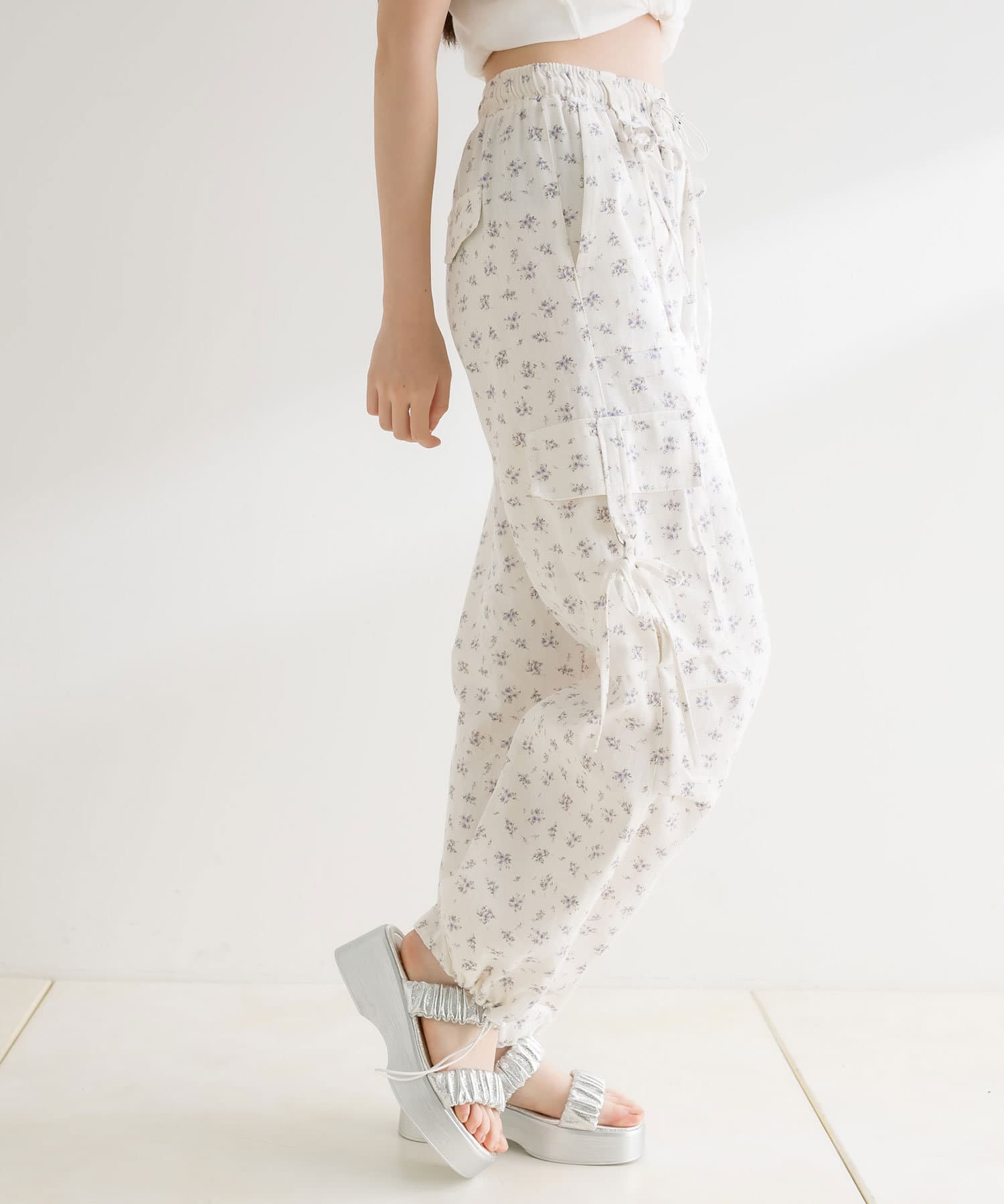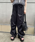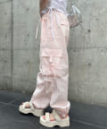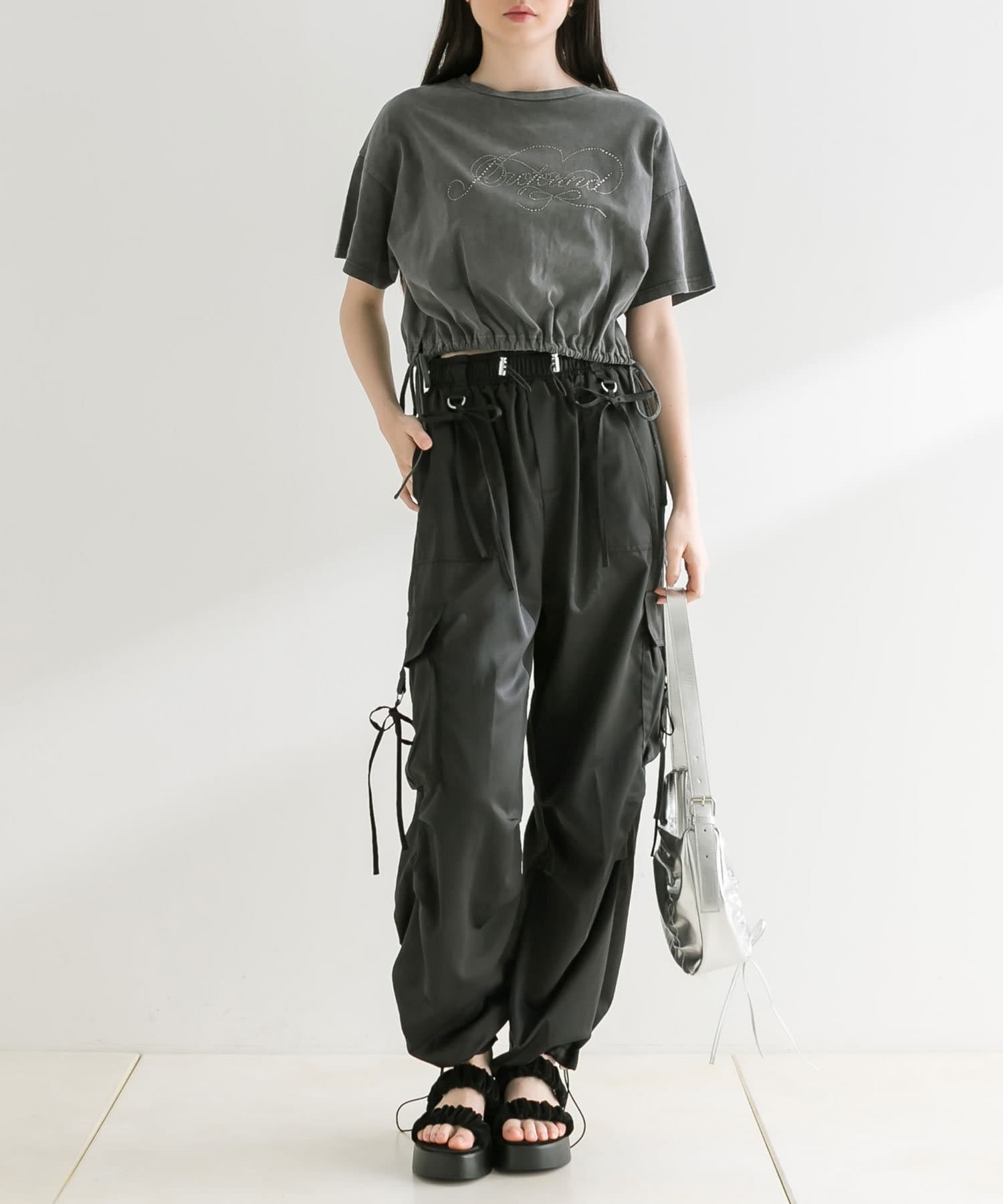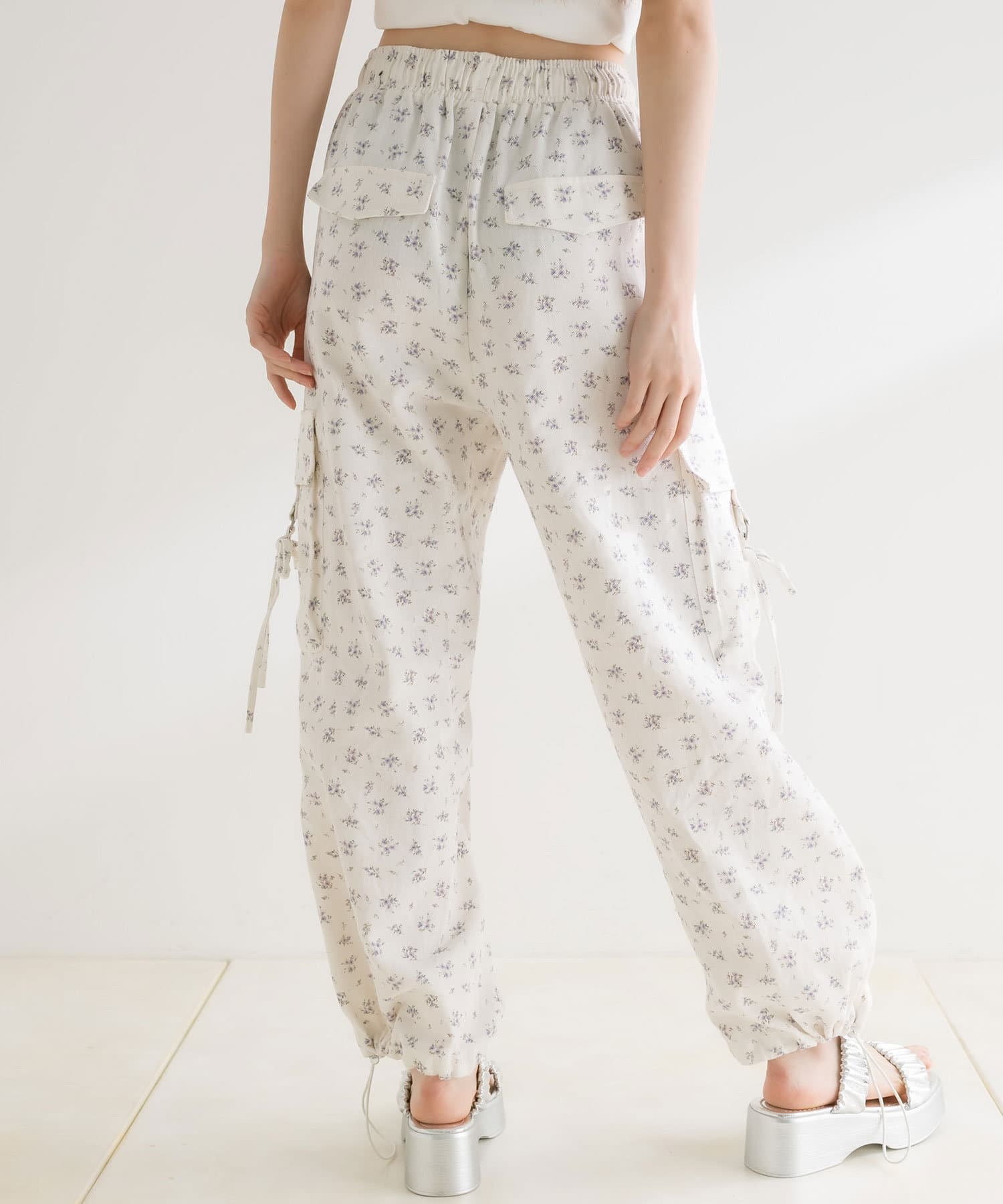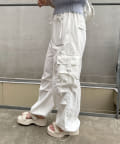 ・リボンチャームがポイントの女みデザインなカーゴパンツ。